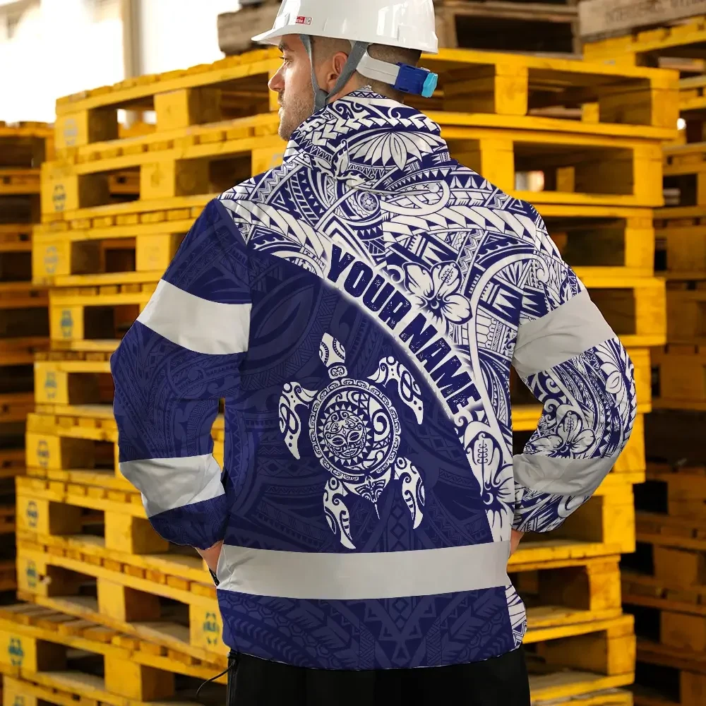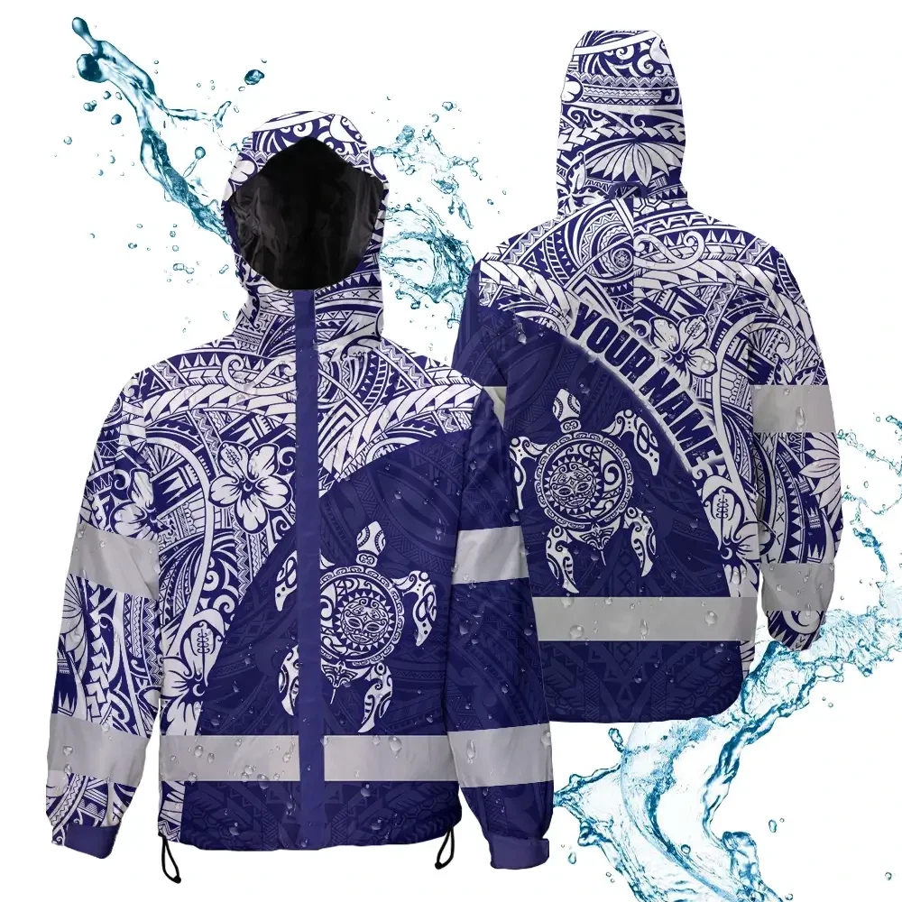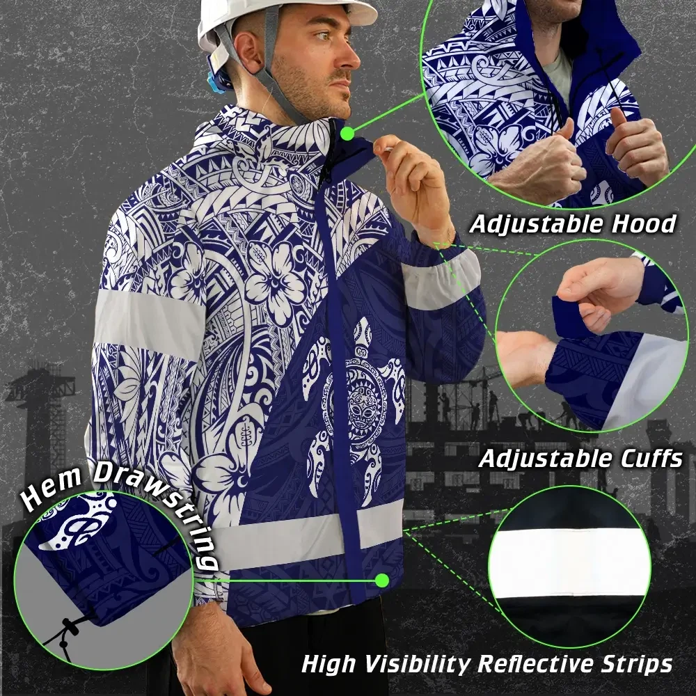 Hi Vis Jacket Waterproof Reflective Tapes Gradient Turtle Hawaiian Polynesian Tribal Custom Name