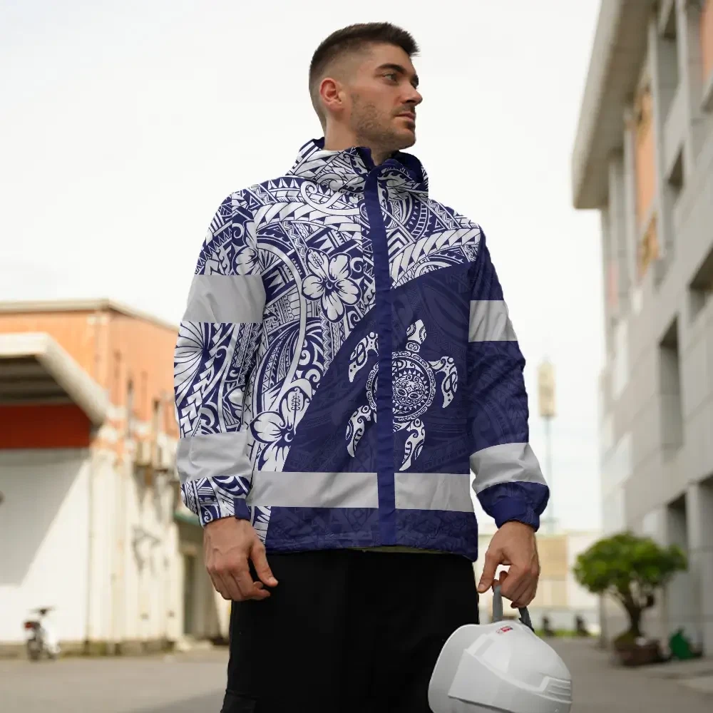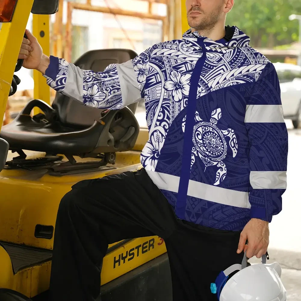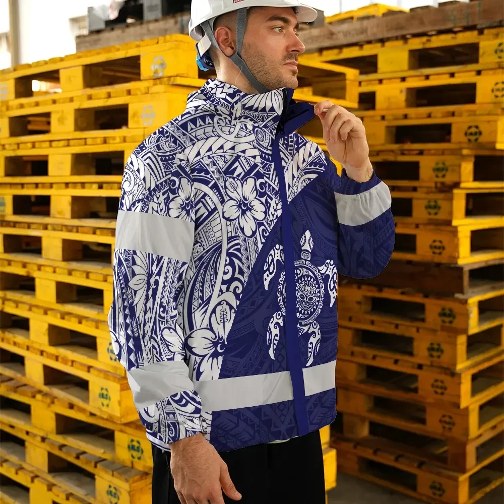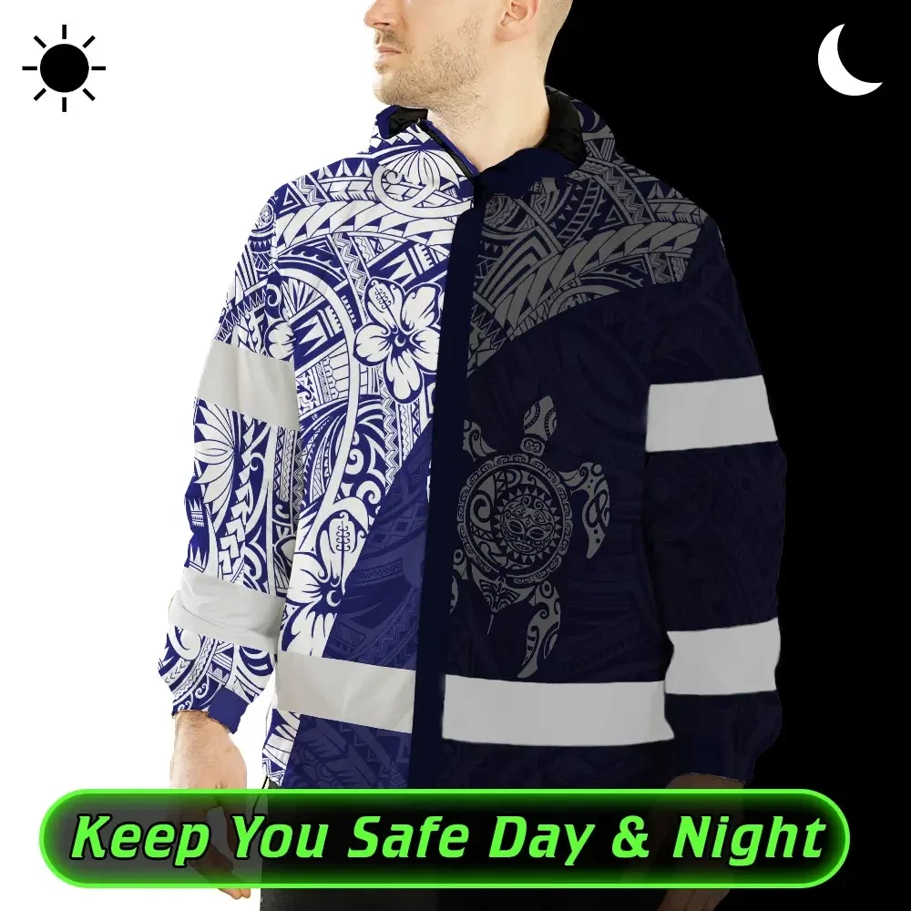 Hi Vis Jacket Waterproof Reflective Tapes Gradient Turtle Hawaiian Polynesian Tribal Custom Name