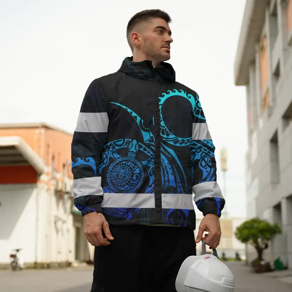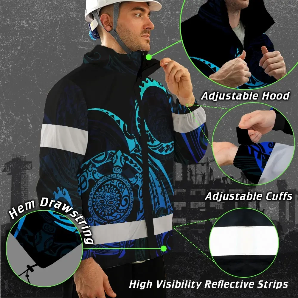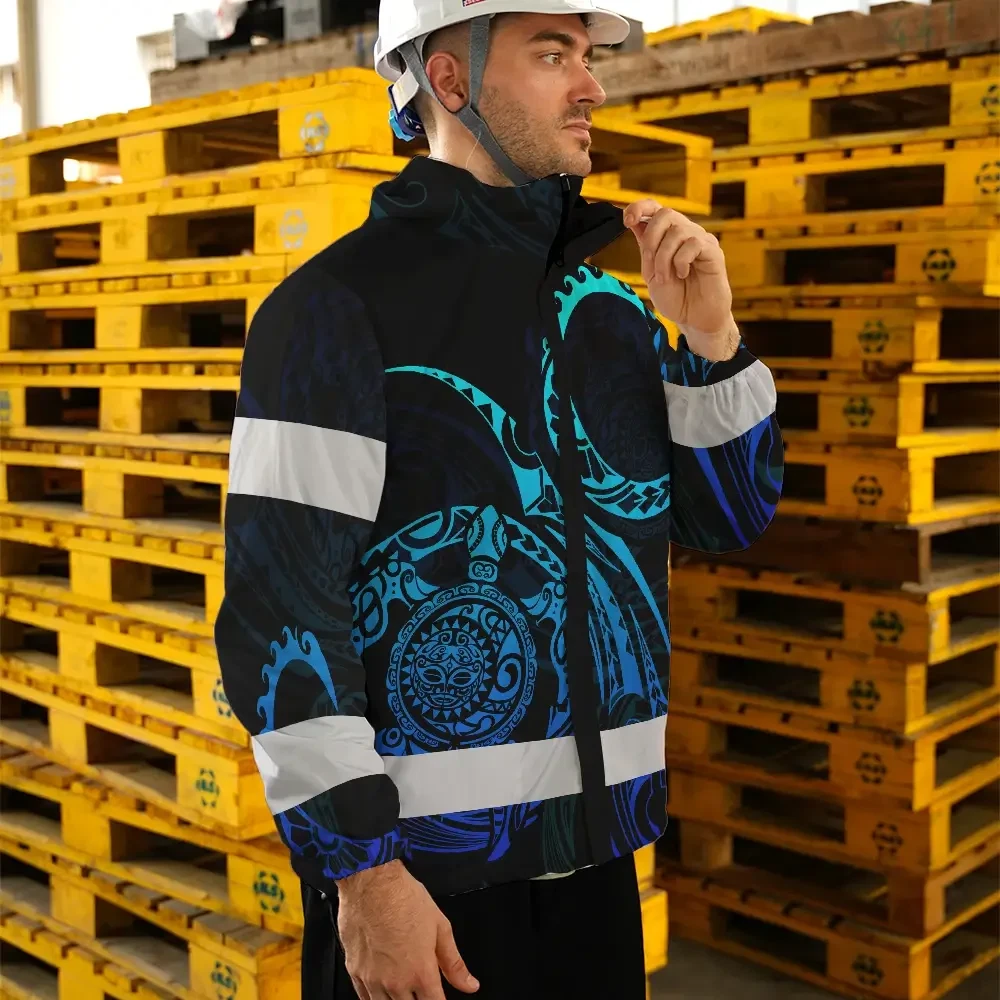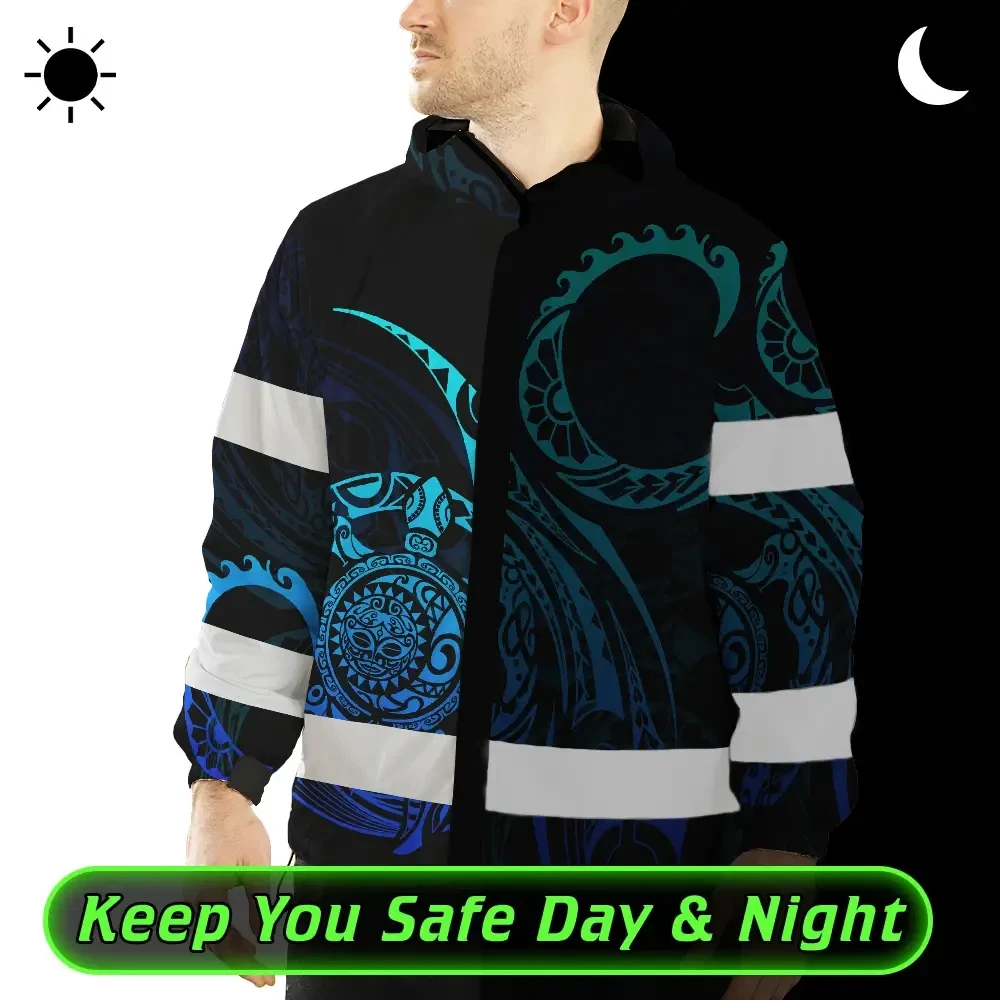 Hi Vis Jacket Waterproof Reflective Tapes Gradient Turtle Hawaiian Polynesian Tribal Custom Name