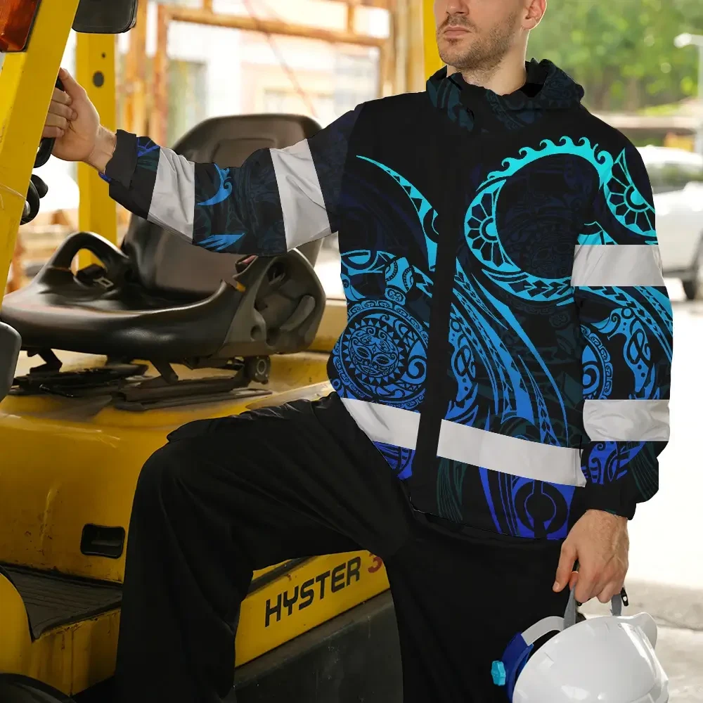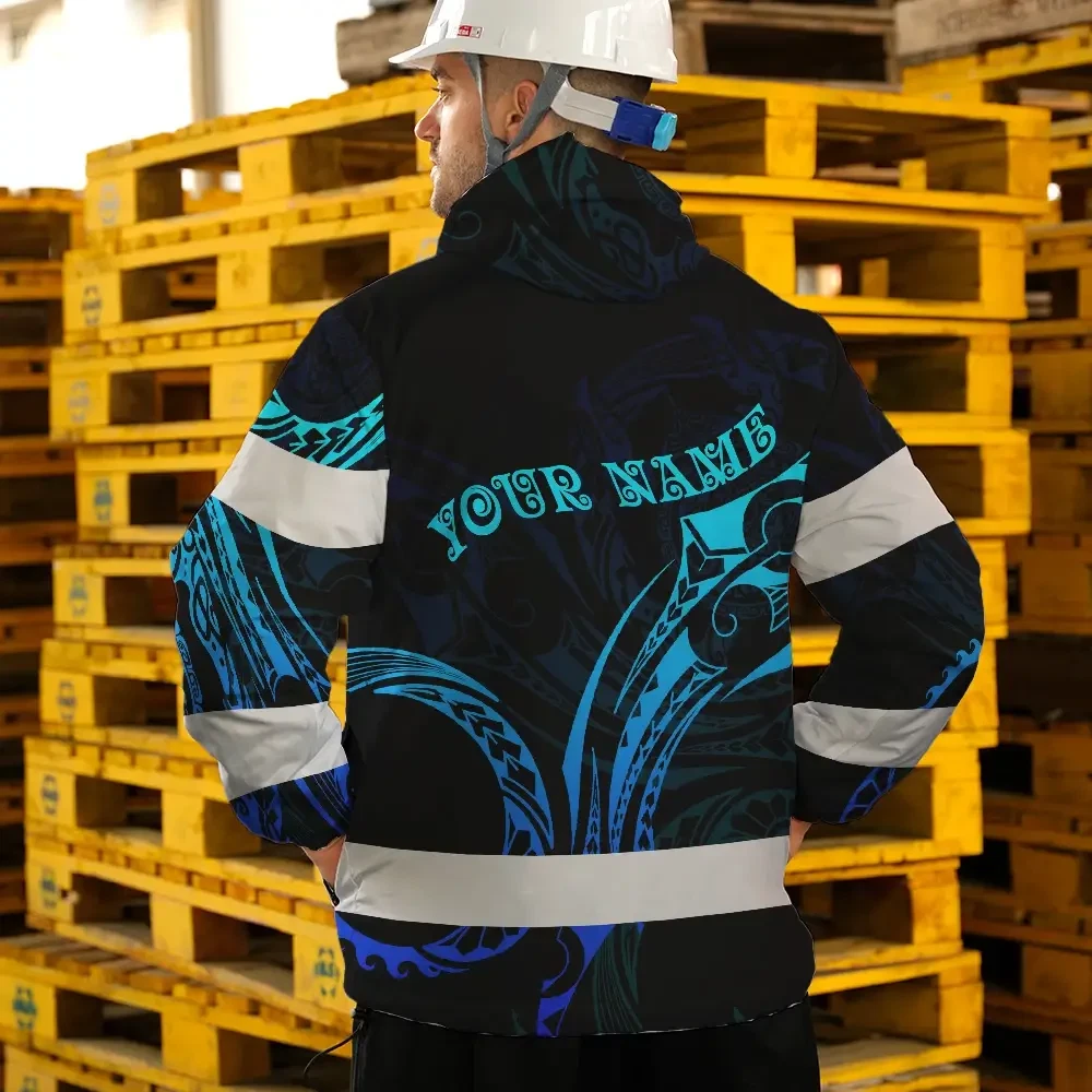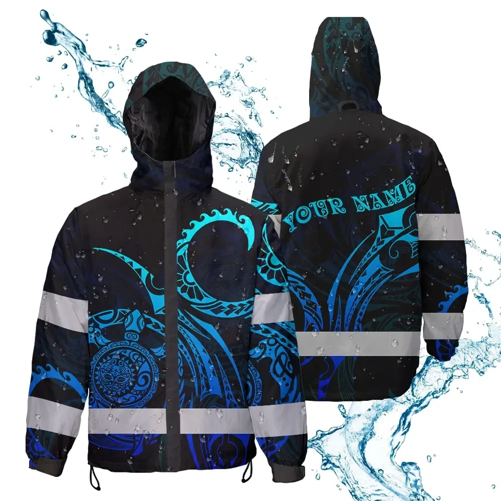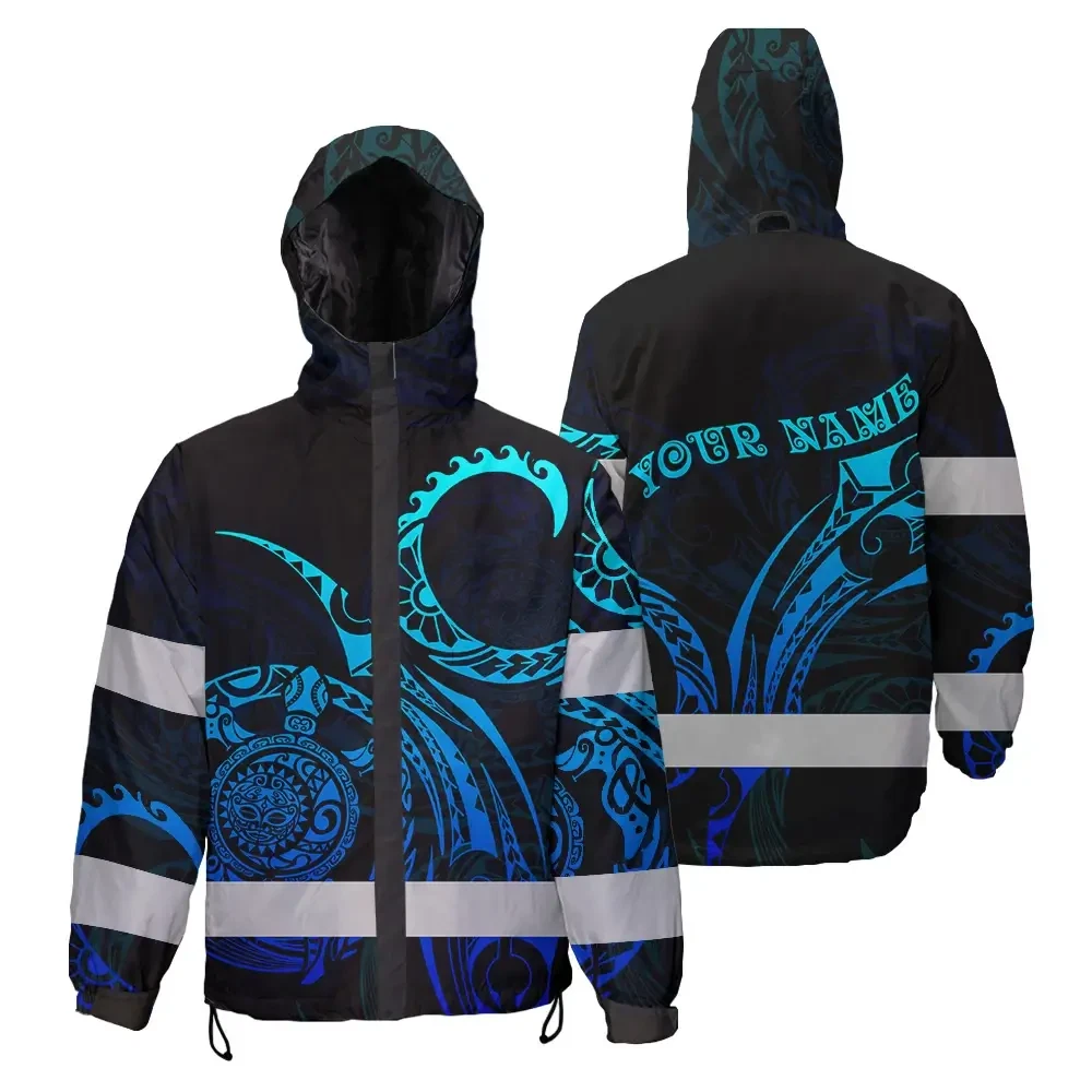 Hi Vis Jacket Waterproof Reflective Tapes Gradient Turtle Hawaiian Polynesian Tribal Custom Name