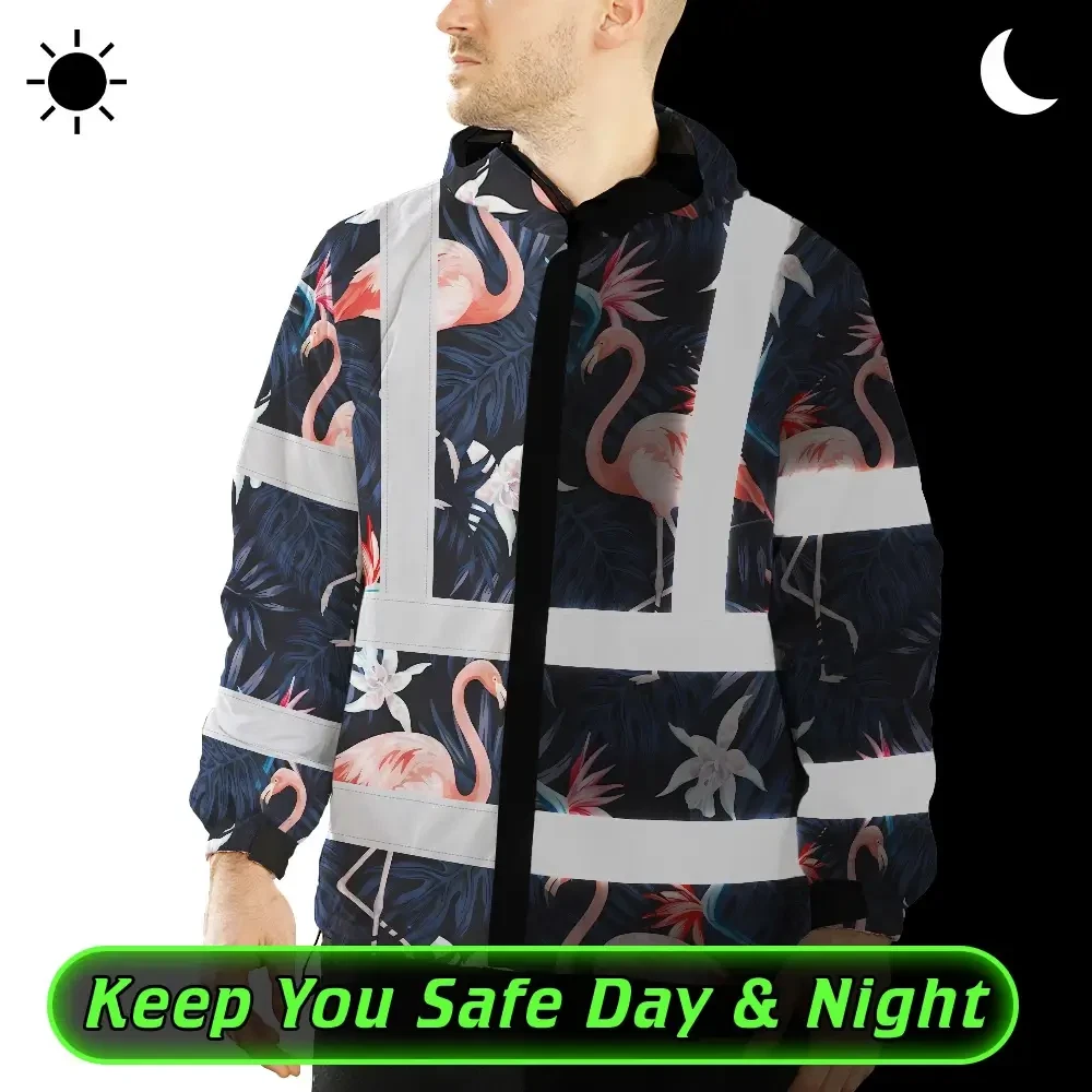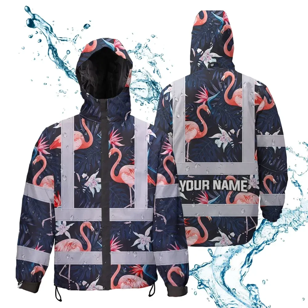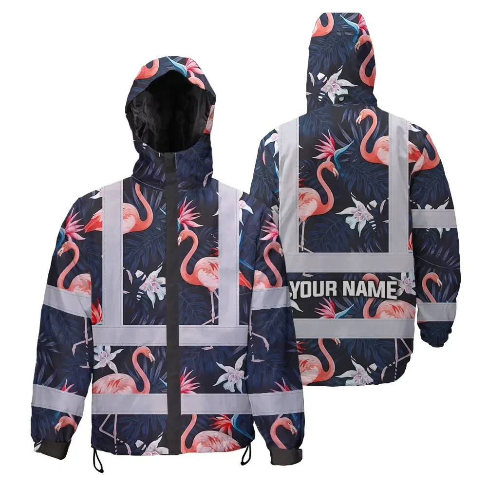 Hi Vis Jacket Waterproof Reflective Tapes Hawaii Flamingo 2 Custom Name Safety Workwear For Workers, Truckers, Operators