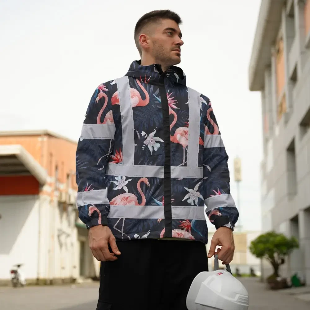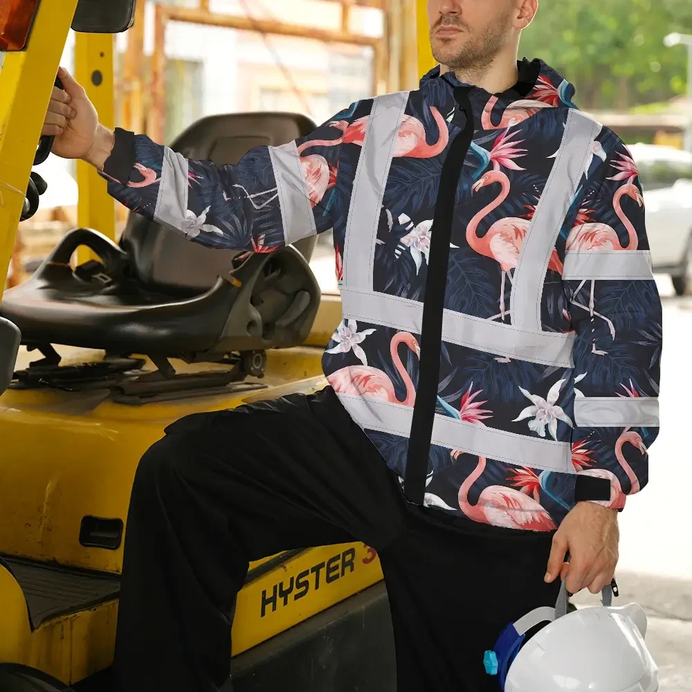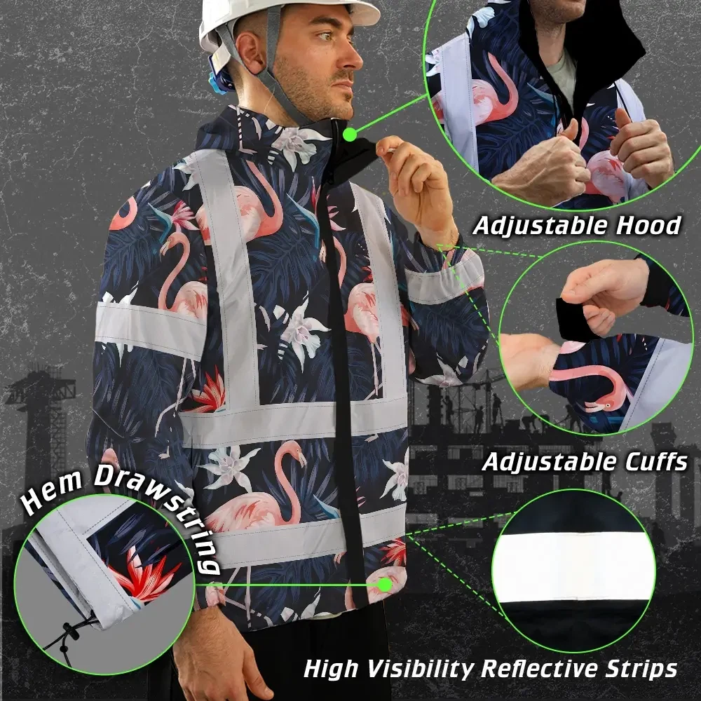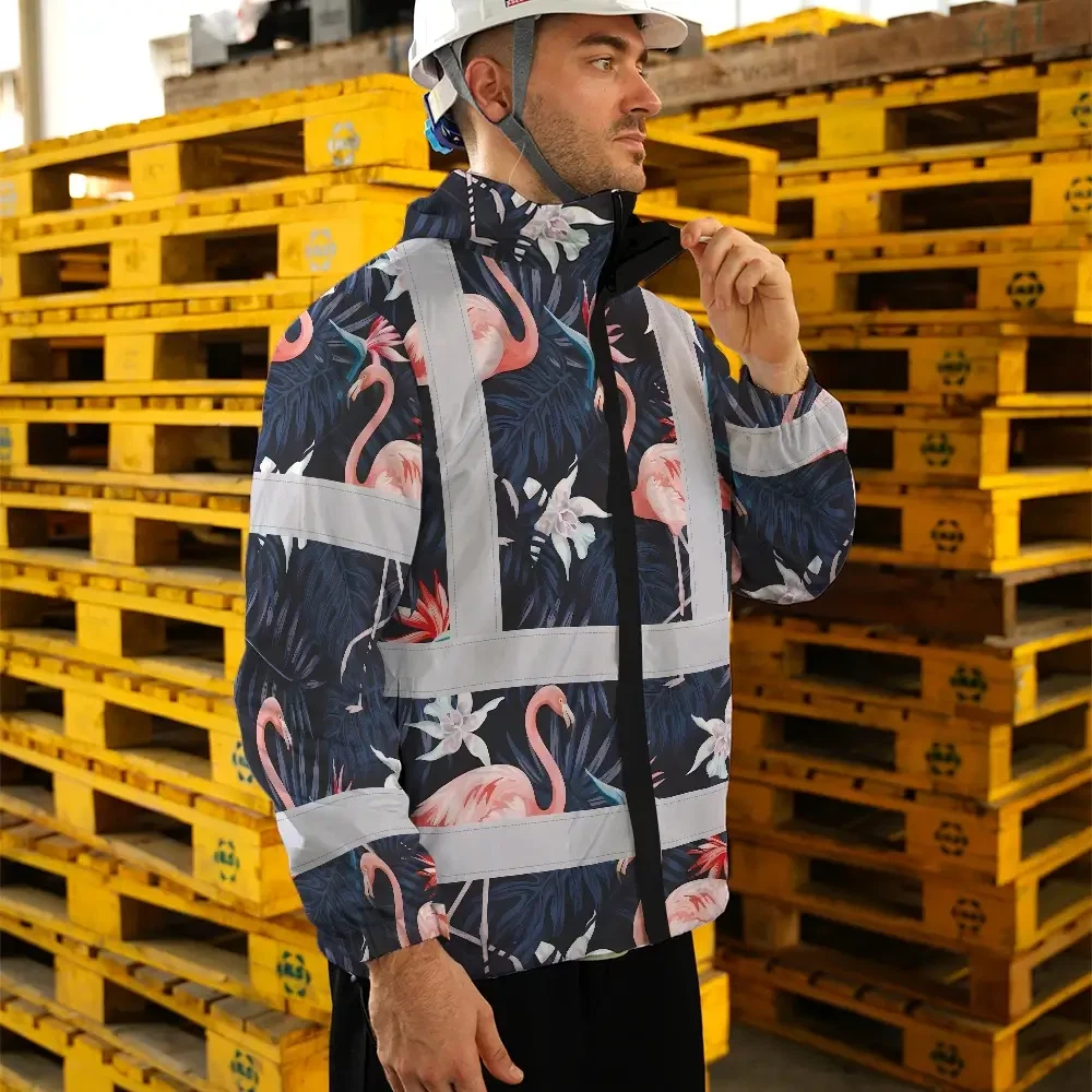 Hi Vis Jacket Waterproof Reflective Tapes Hawaii Flamingo 2 Custom Name Safety Workwear For Workers, Truckers, Operators