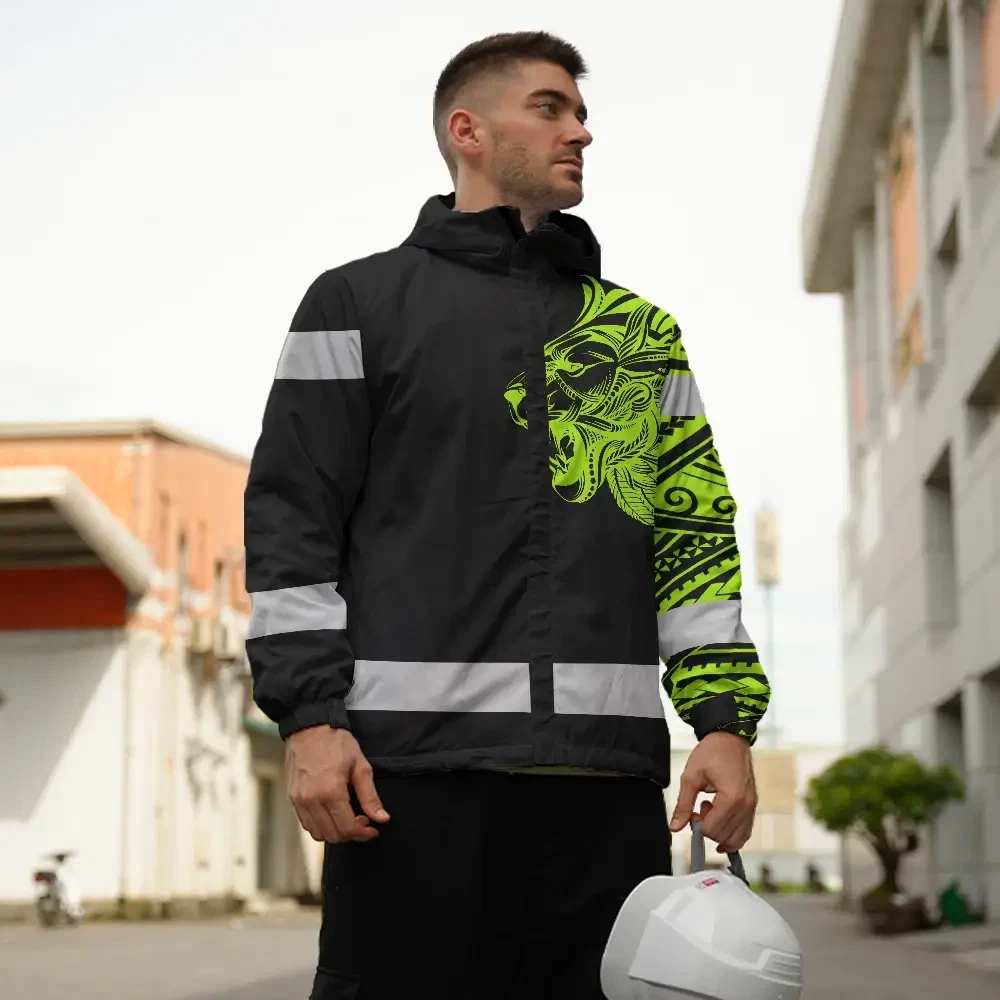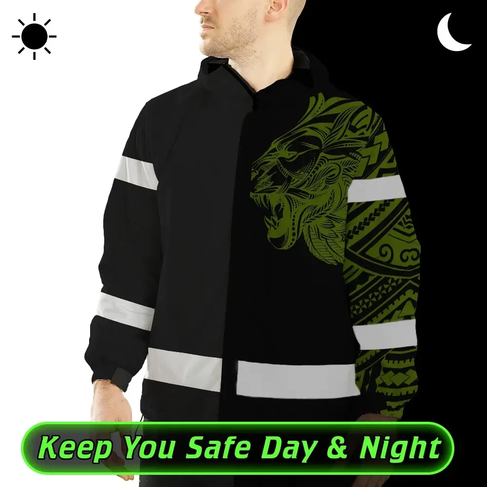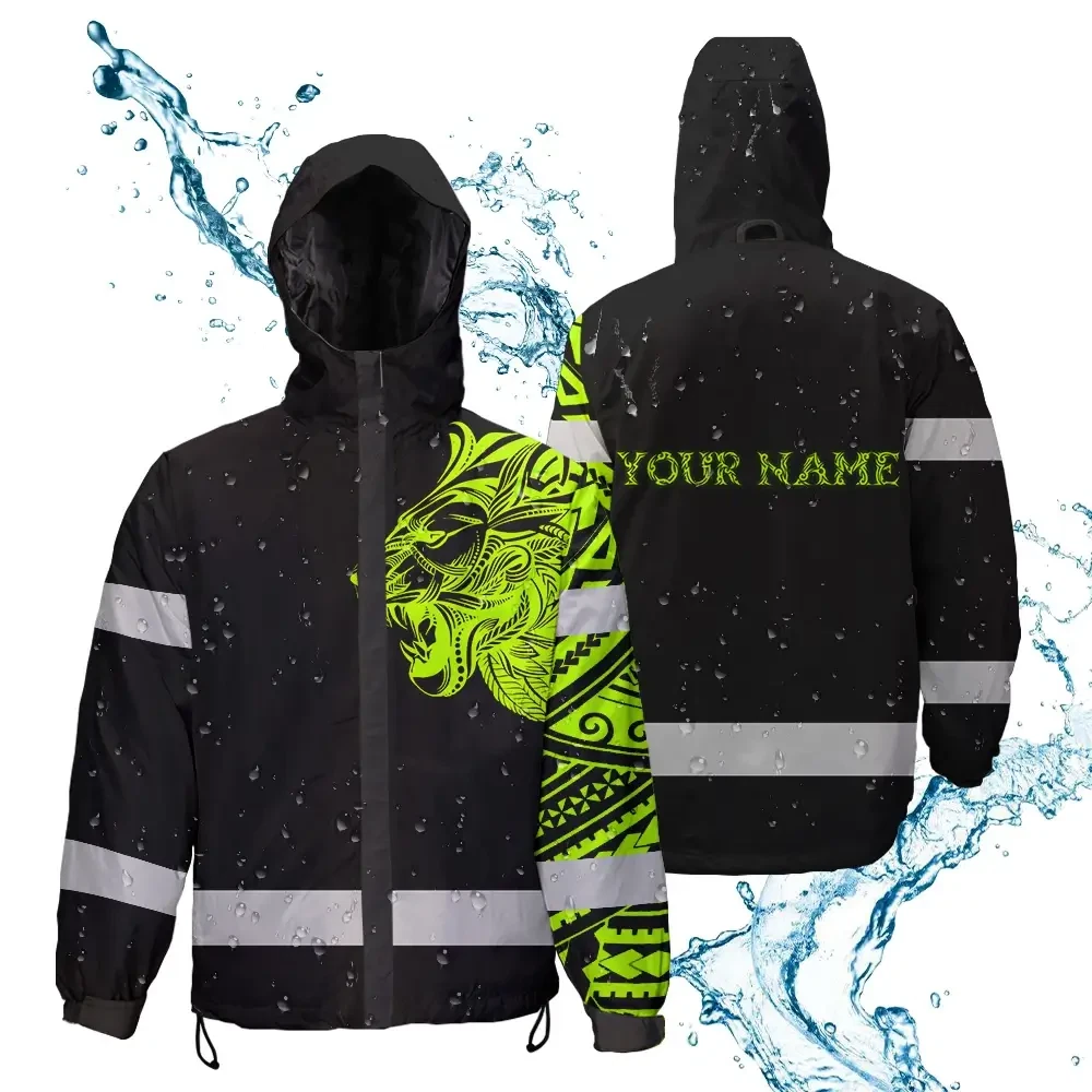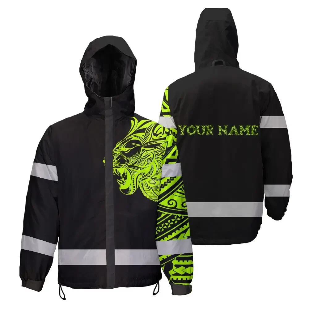 Hi Vis Jacket Waterproof Reflective Tapes Lion Hawaiian Polynesian Tribal Custom Name
