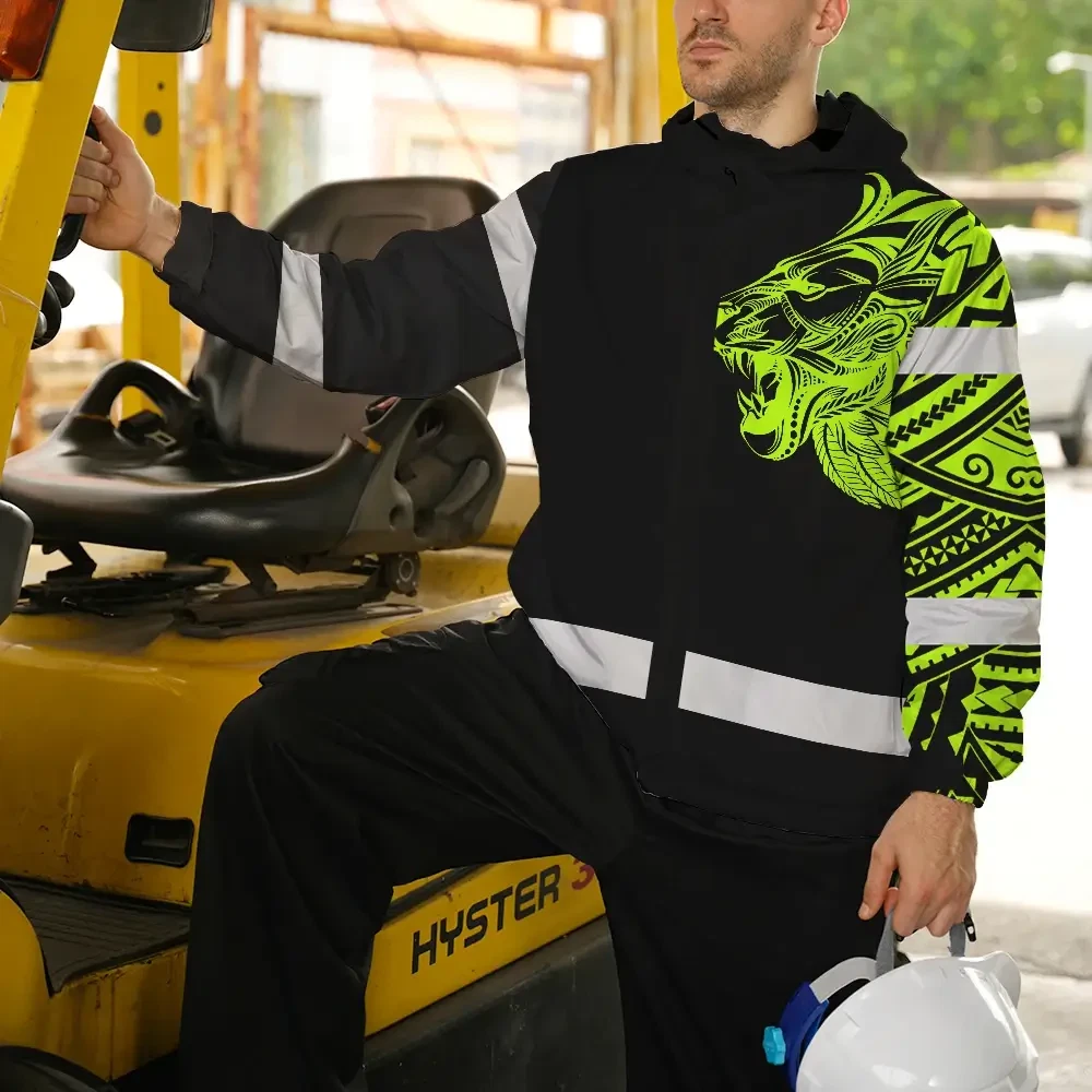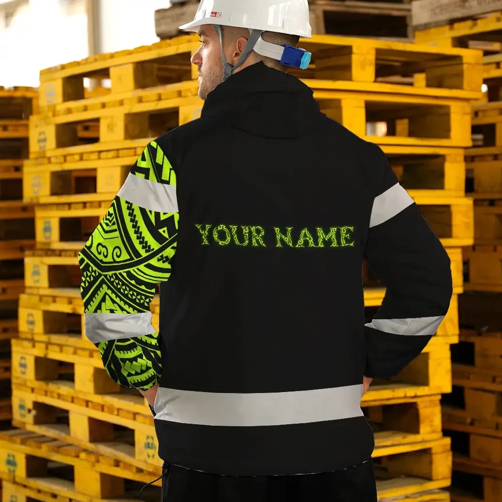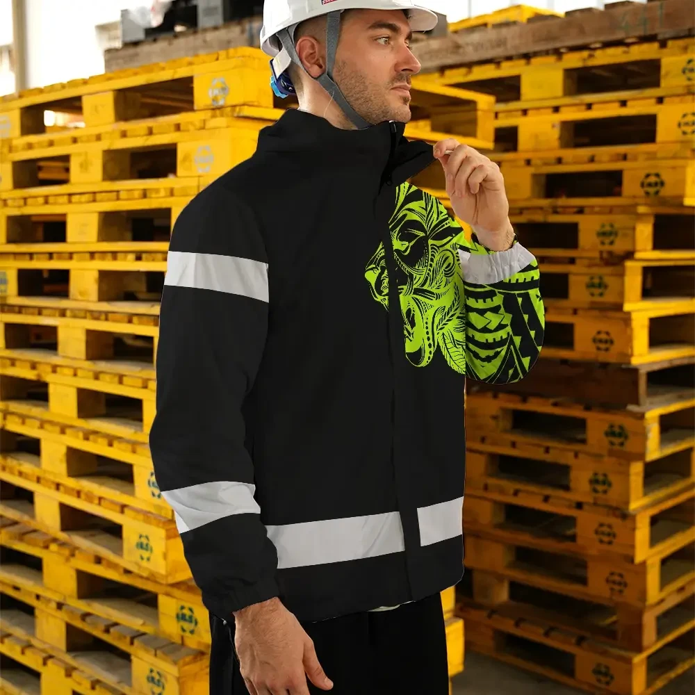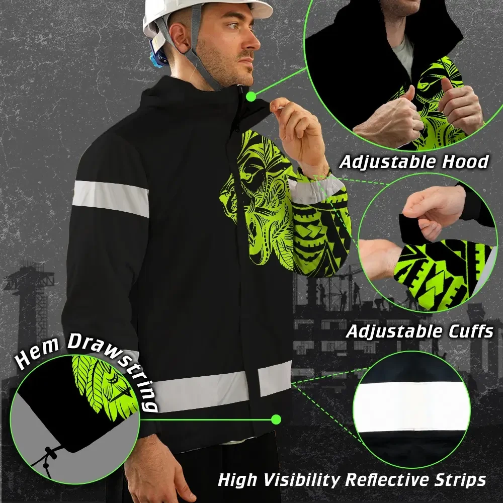 Hi Vis Jacket Waterproof Reflective Tapes Lion Hawaiian Polynesian Tribal Custom Name