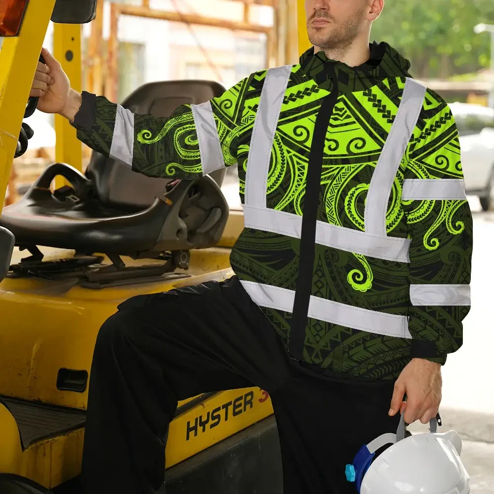 Hi Vis Jacket Waterproof Reflective Tapes Octopus Hawaiian Polynesian Tribal Custom Name Safety Workwear For Workers, Truckers, Operators
