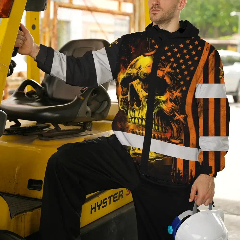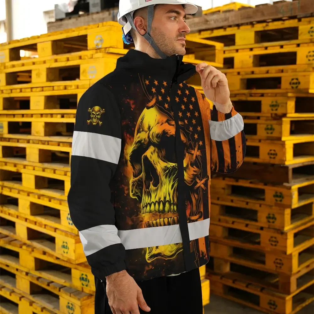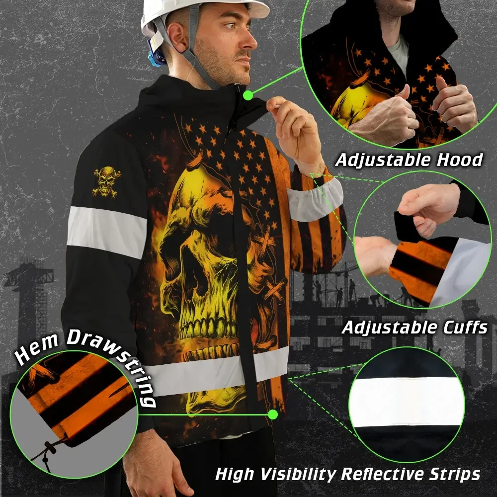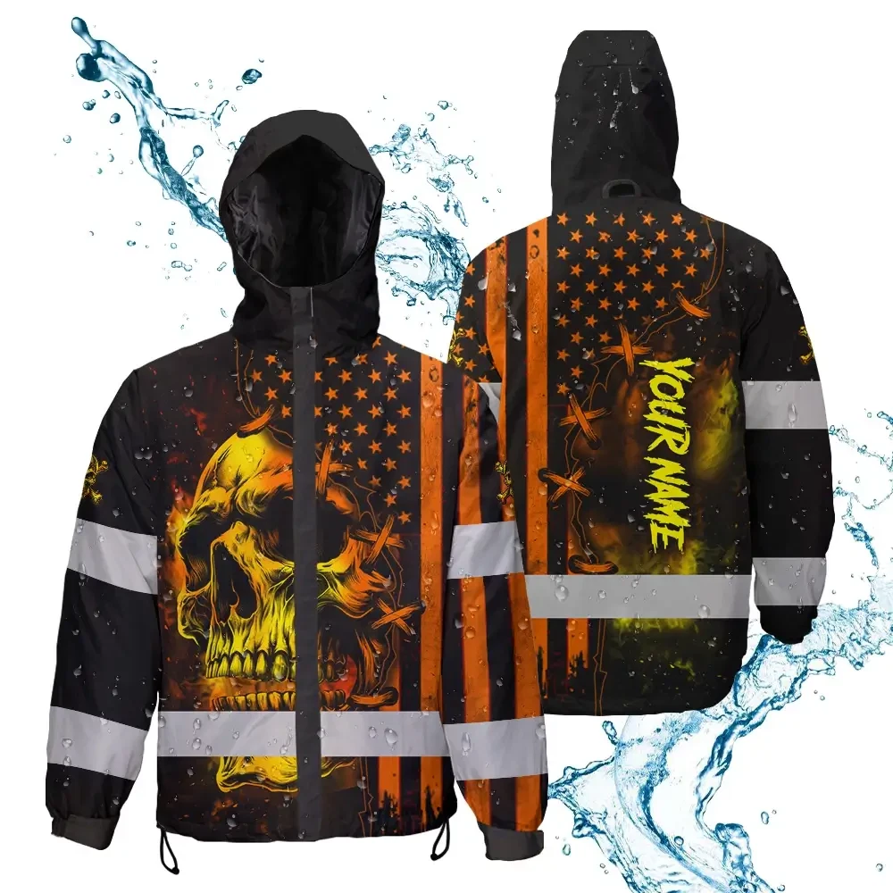 Hi Vis Jacket Waterproof Reflective Tapes Orange Neon Skull Scratch 5 Custom Name