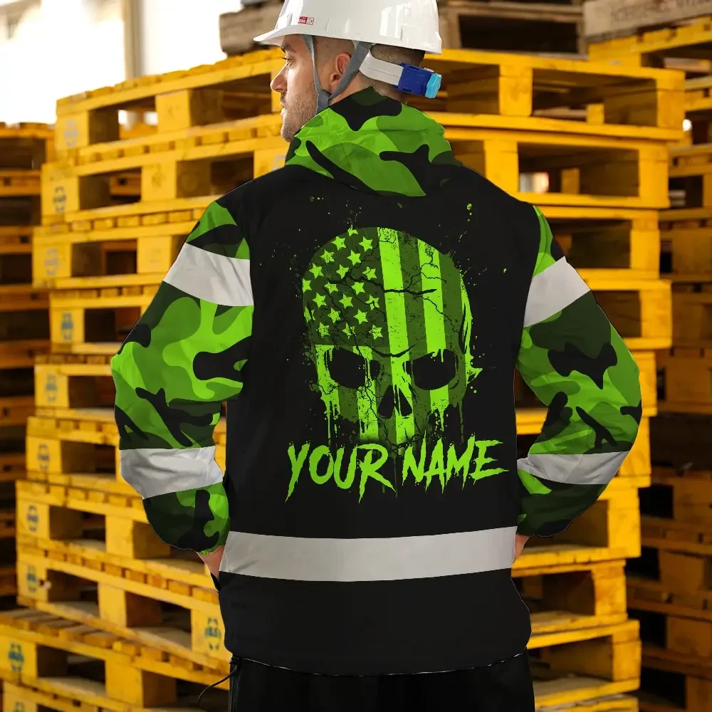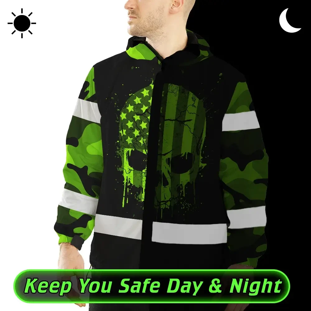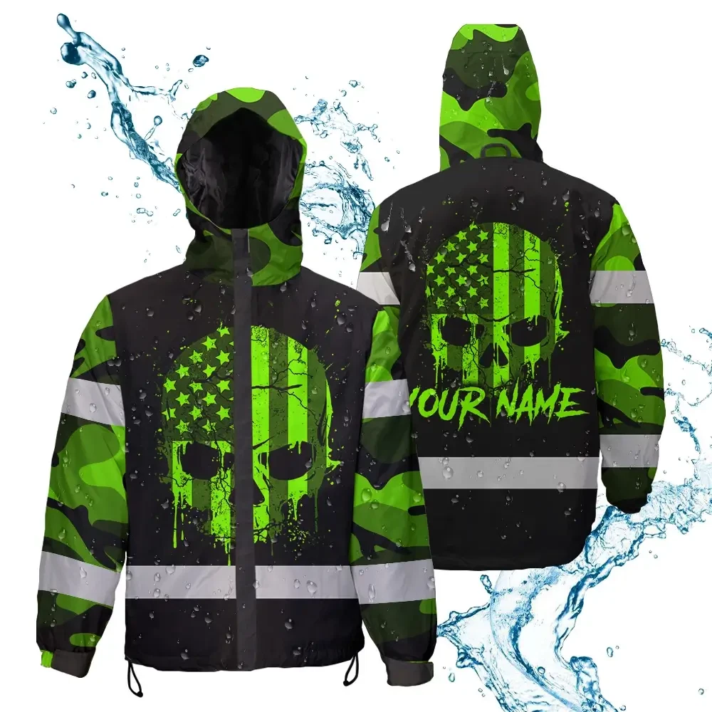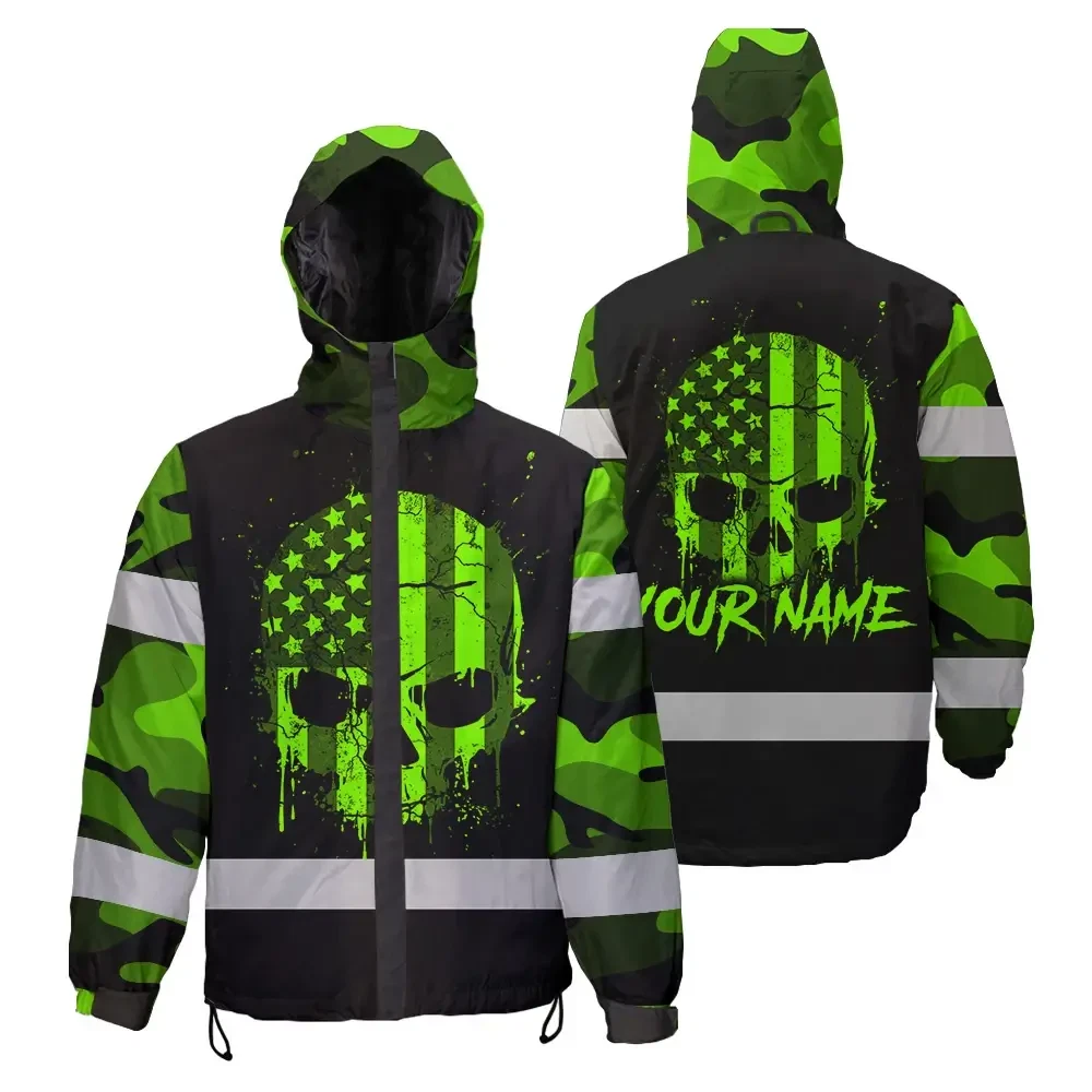 Hi Vis Jacket Waterproof Reflective Tapes Skull Camo USA Flag Custom Name Safety Workwear