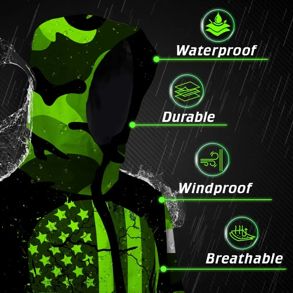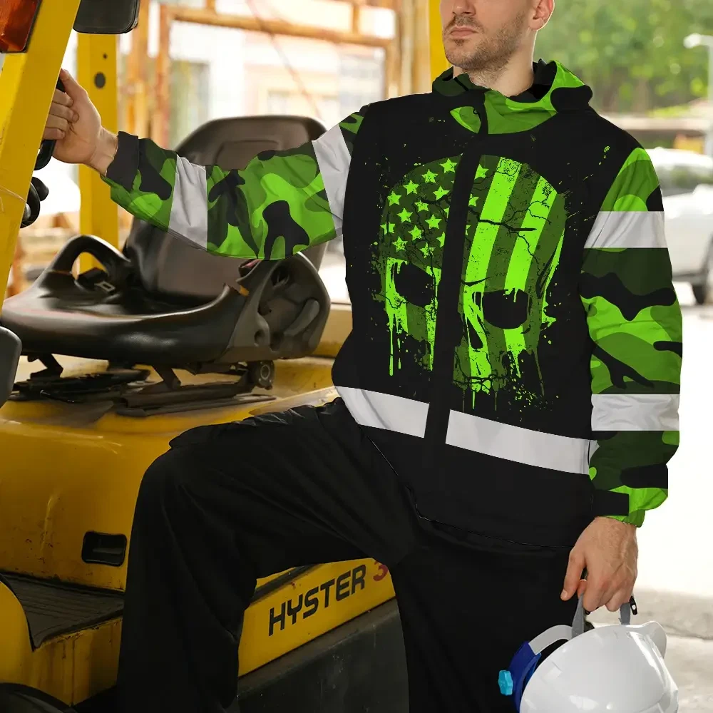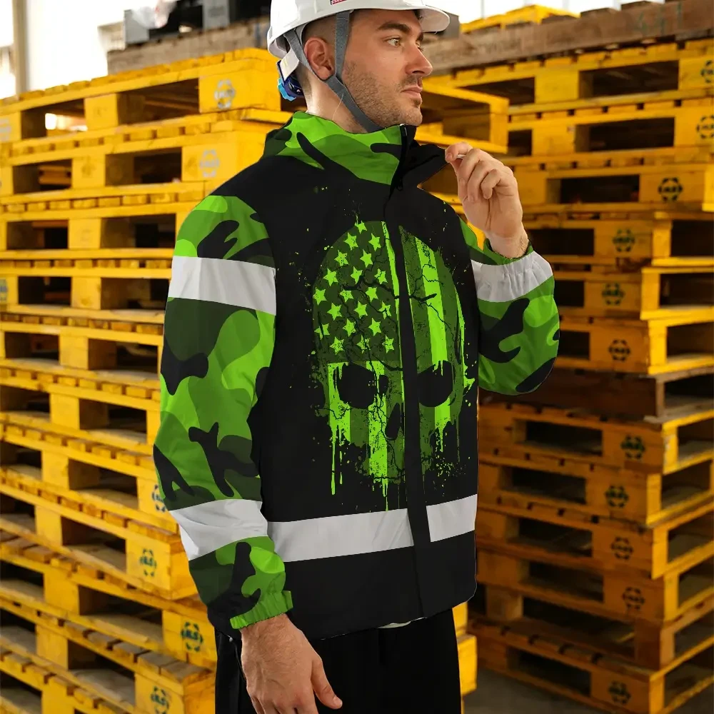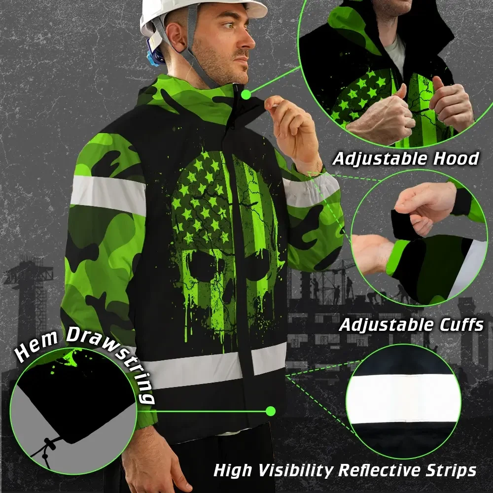 Hi Vis Jacket Waterproof Reflective Tapes Skull Camo USA Flag Custom Name Safety Workwear