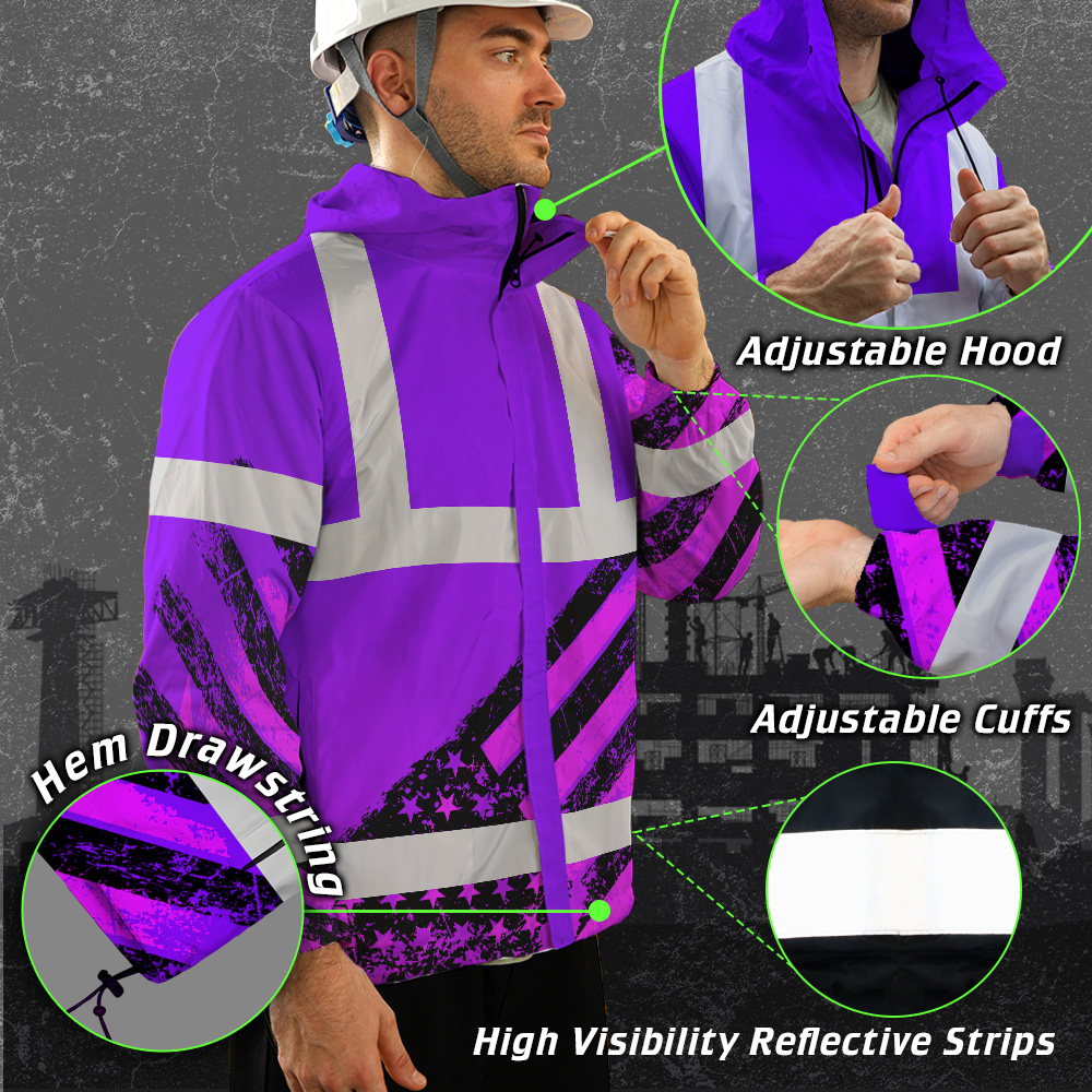 407ADIURJ032-Hi Vis Jacket Waterproof Reflective Violet US Flag Paint