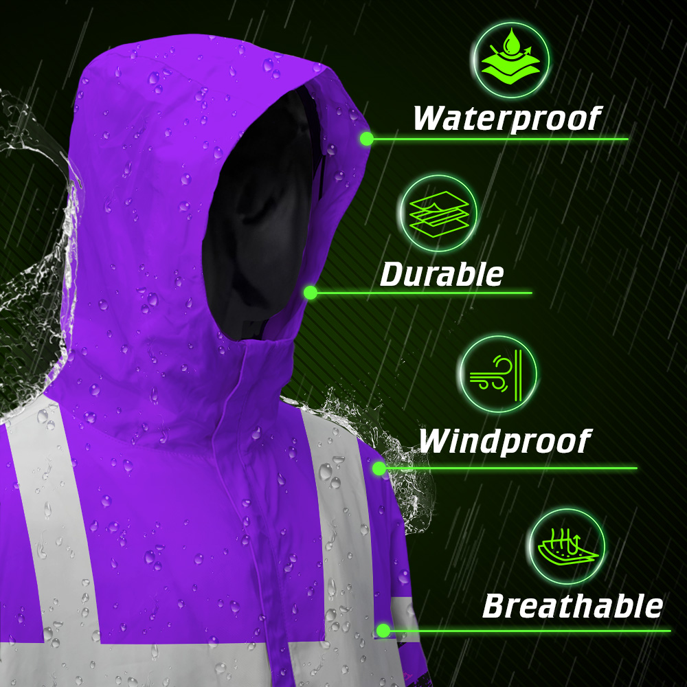 - Keeps you dry and visible in challenging environments