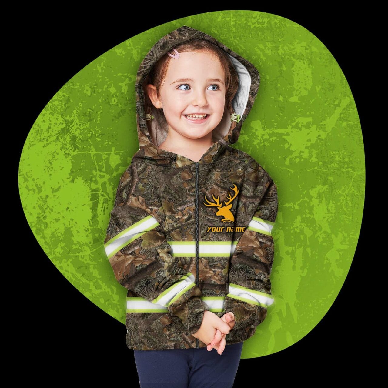 Looking for a new Hi Vis Kid? Check out this cool reflective camouflage hunting hoodie! It’s perfect for safety workwear, and you can even personalize it with your child’s name. They’ll love wearing this comfy zip-up hoodie on all their outdoor adventures!