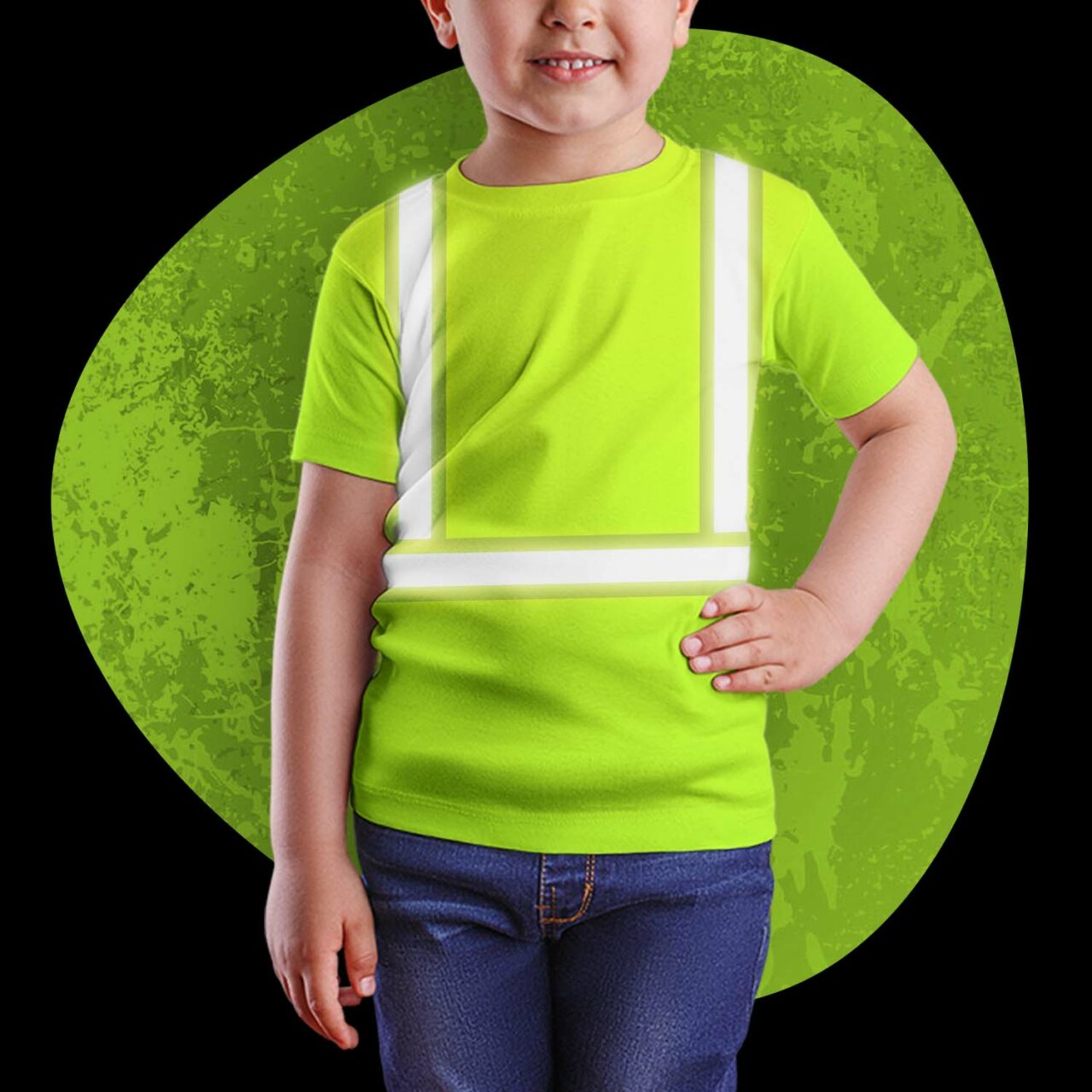 Looking for a fun and stylish way to keep your kiddo safe while they’re playing outside? Check out our hi vis kids Tshirt ! This reflective game player custom name safety workwear is perfect for keeping your little one visible during those evening strolls or weekend outings. Plus, the comfortable fit and fun design will make your child feel like a real champ!