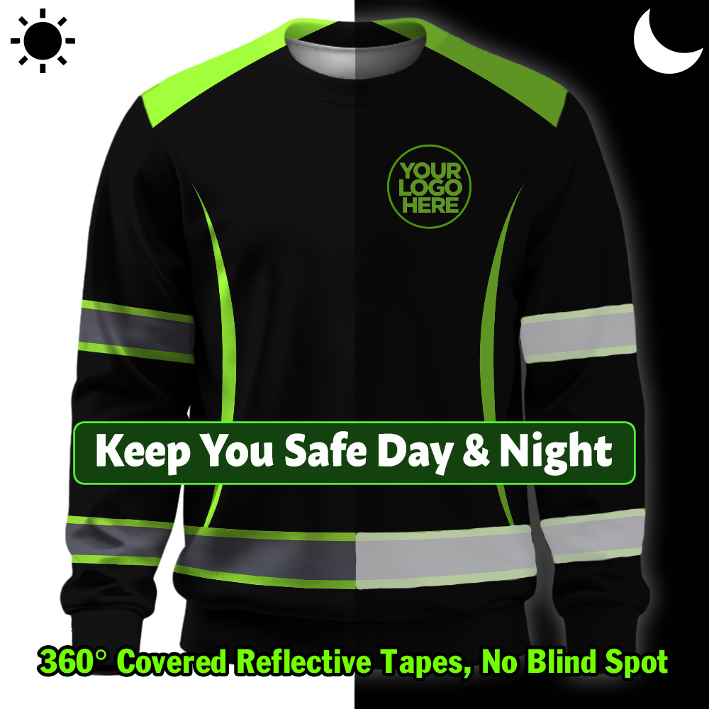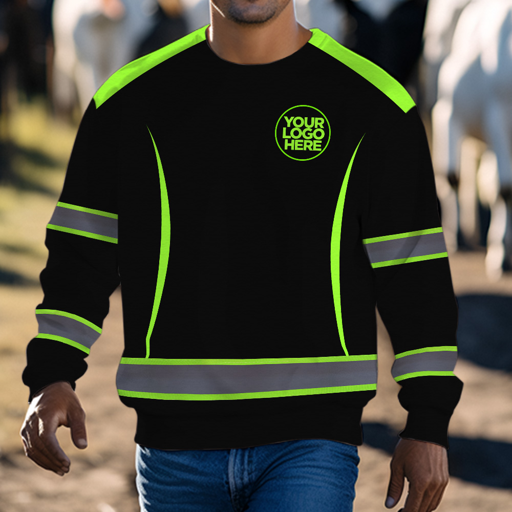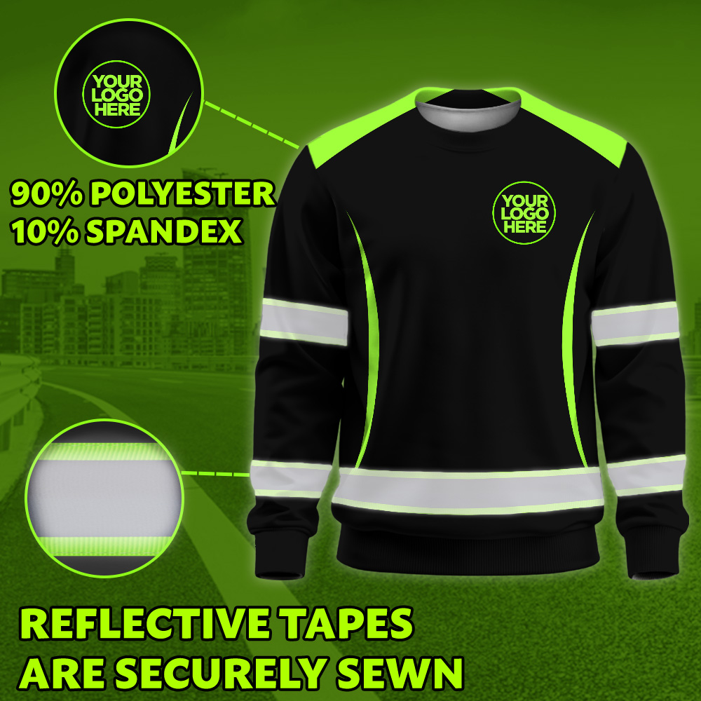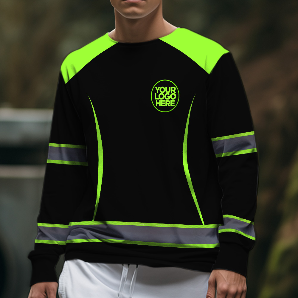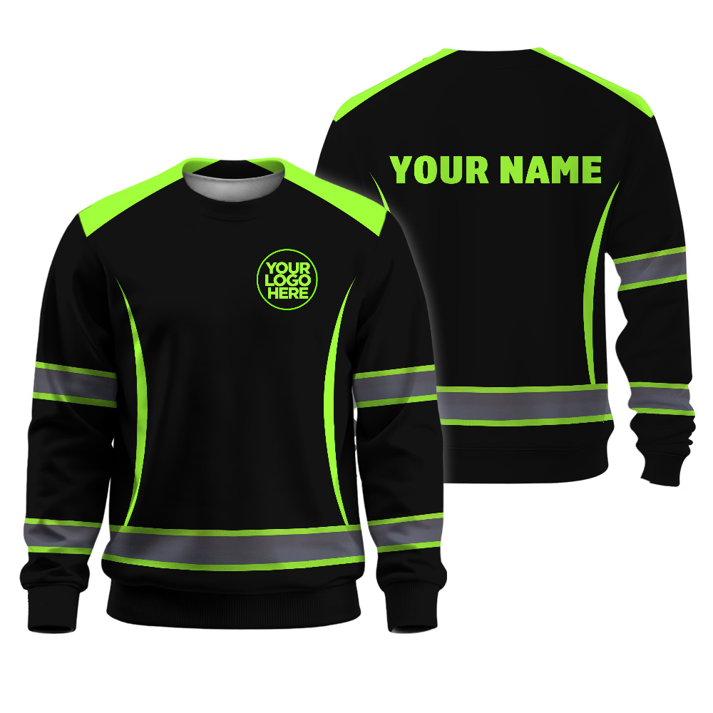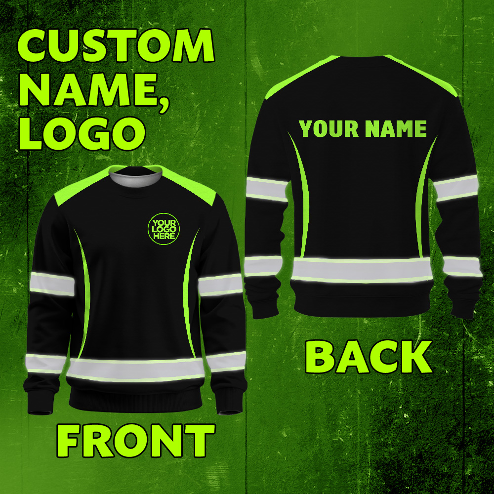 Hi Vis Long Sleeve Shirt Featuring Custom Name, Logo For Construction, Teams