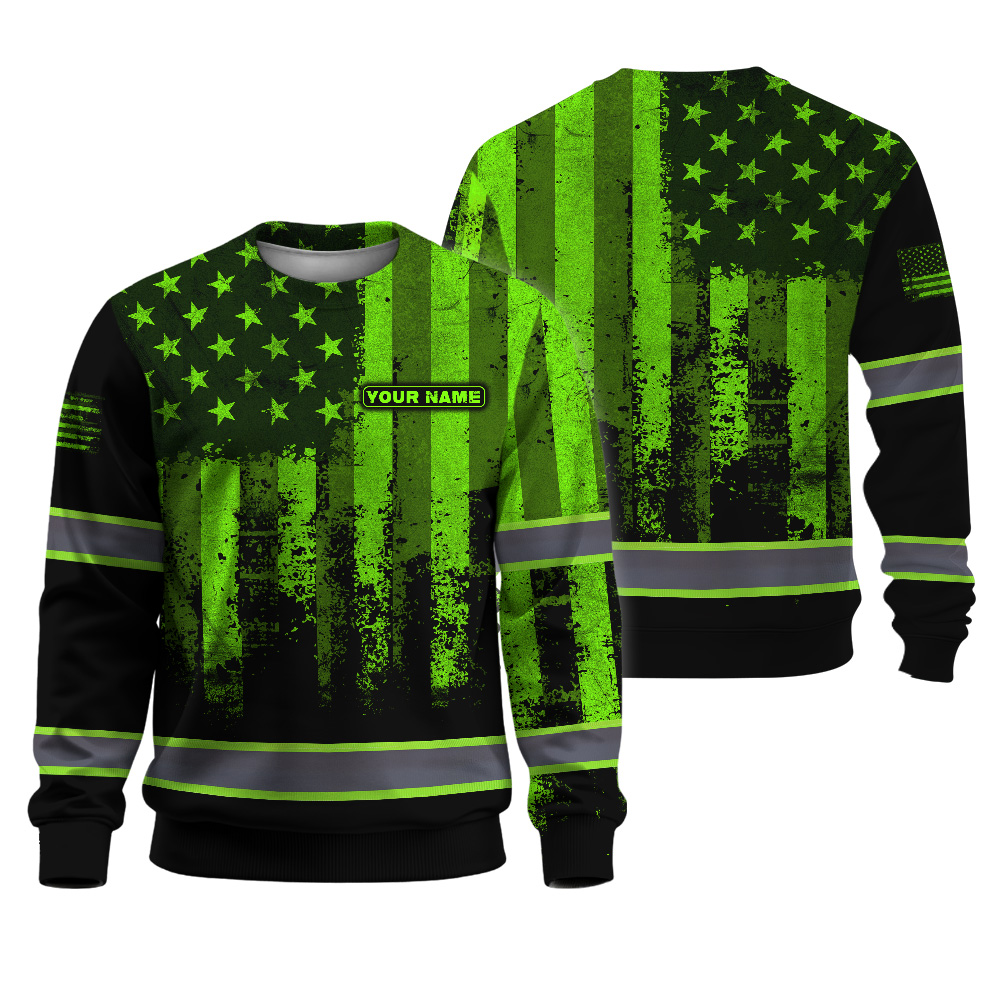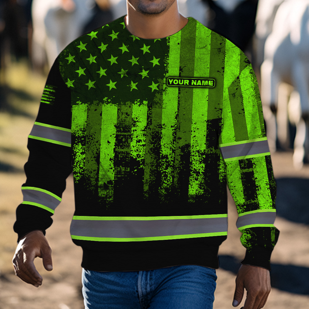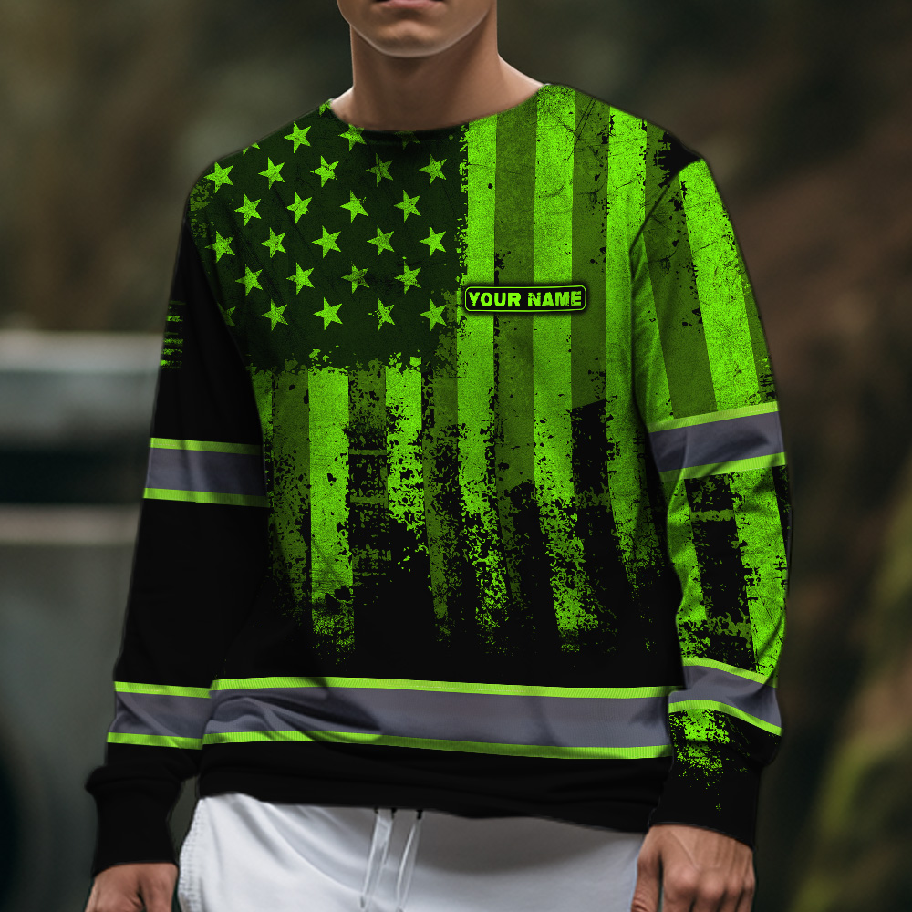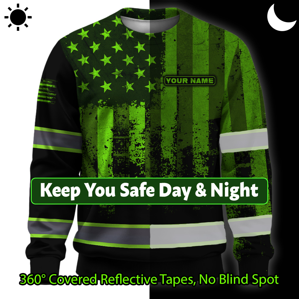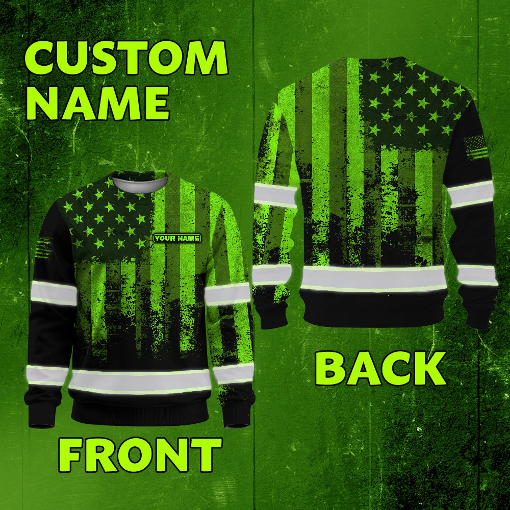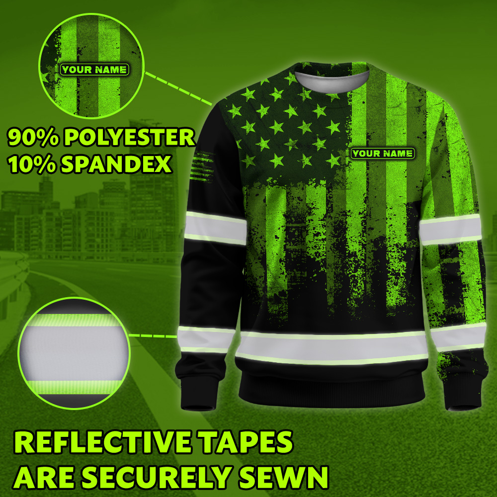 Hi Vis Long Sleeve Shirt Reflective Flag USA Custom Name Safety Workwear