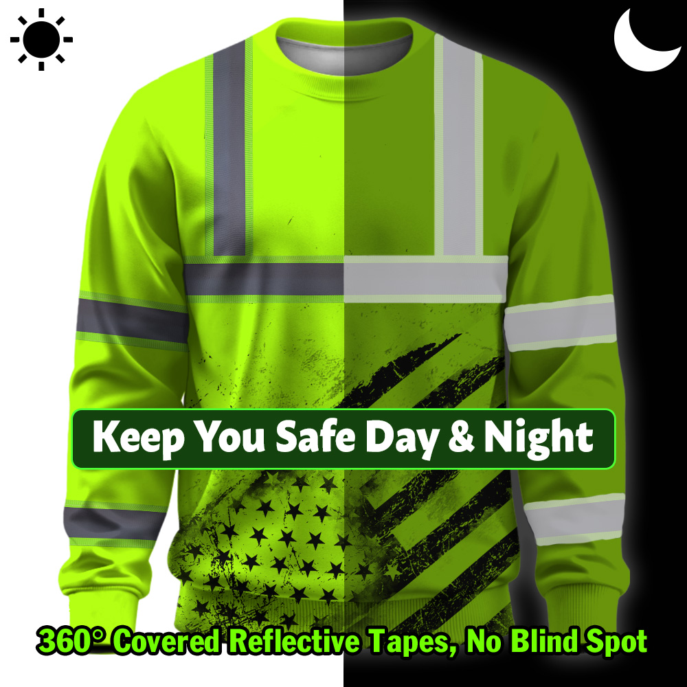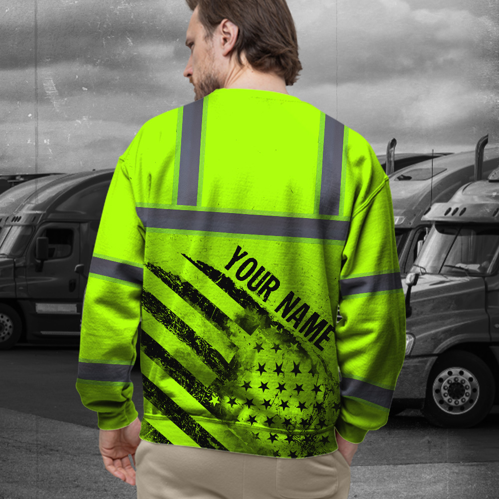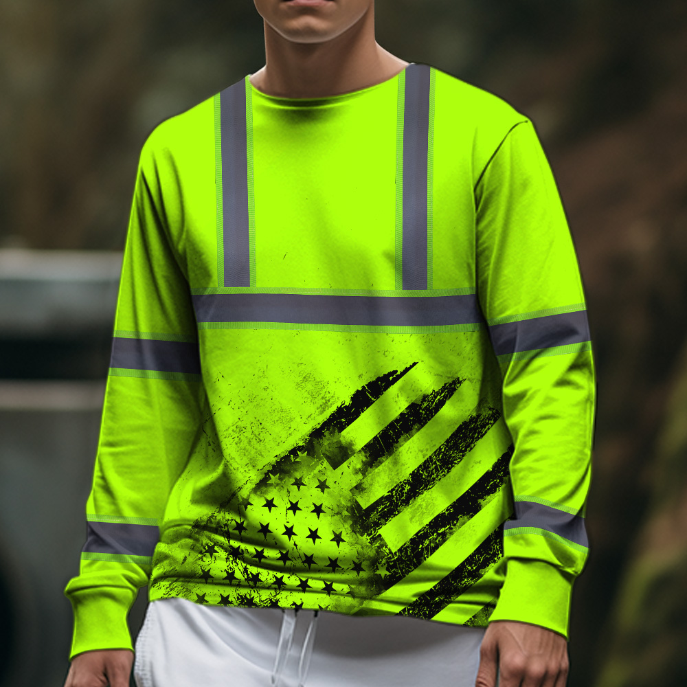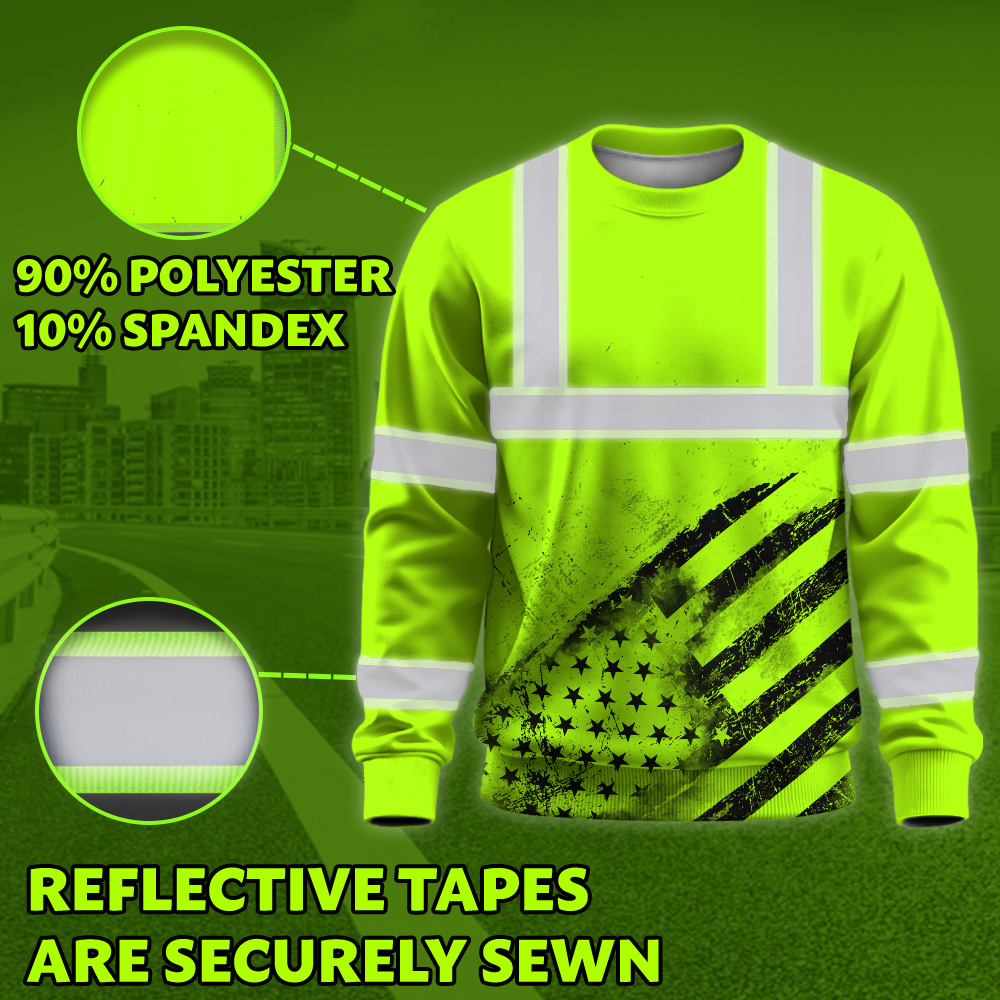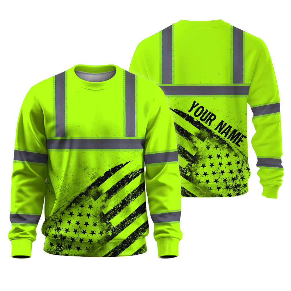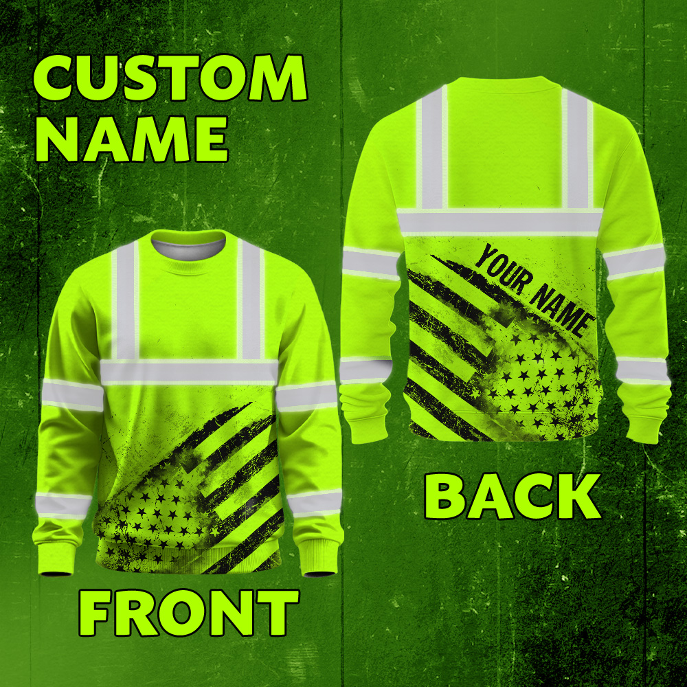 Hi Vis Long Sleeve Shirt Reflective Green Black US Flag Custom Name Safety