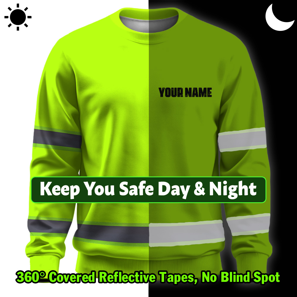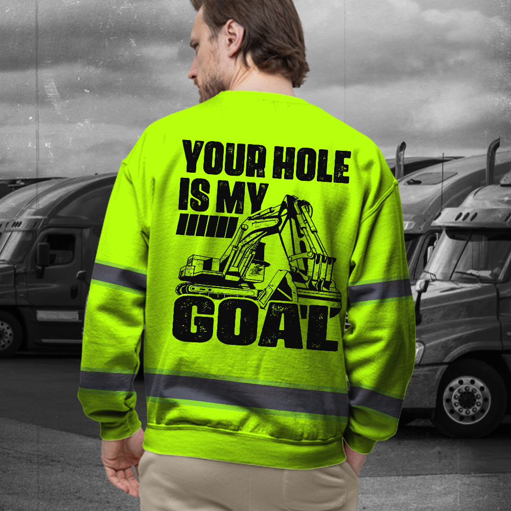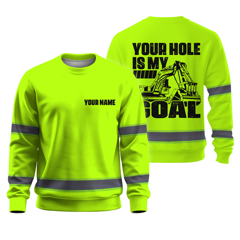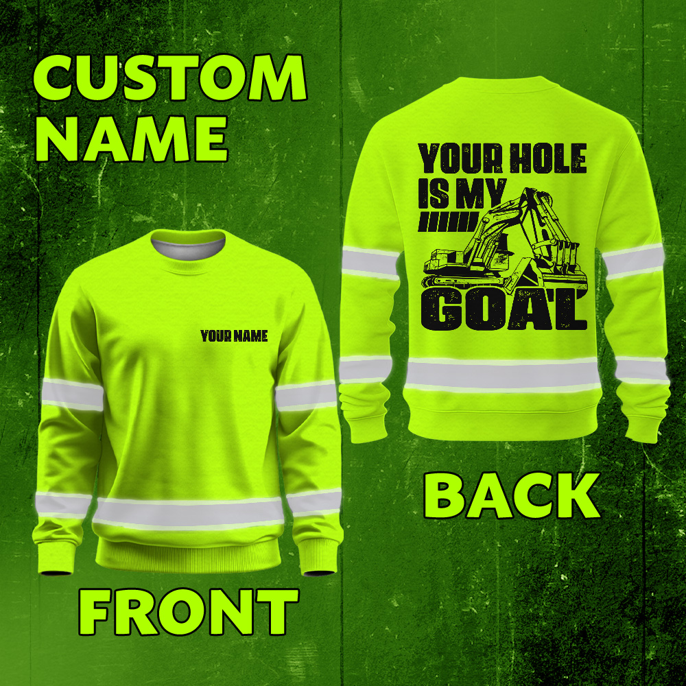 Hi Vis Long Sleeve Shirt Reflective Green Your Hole Is My Goal Custom Name Safety Workwear