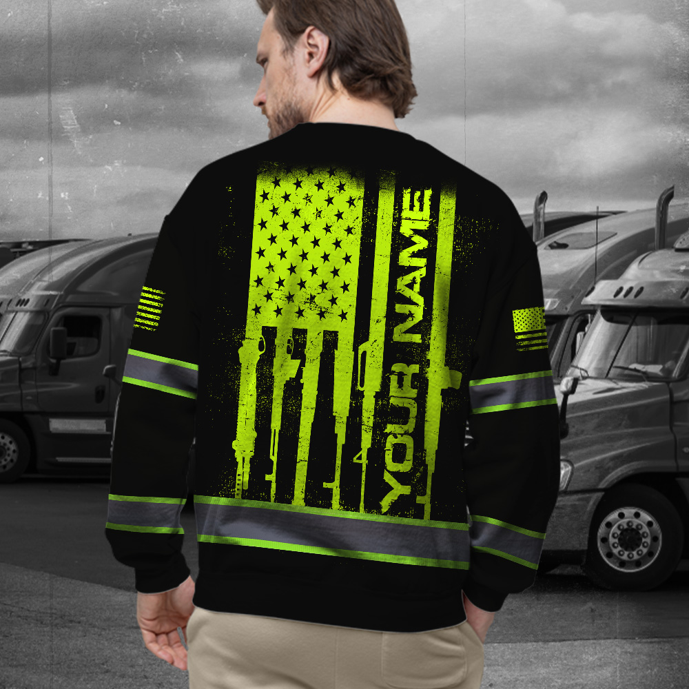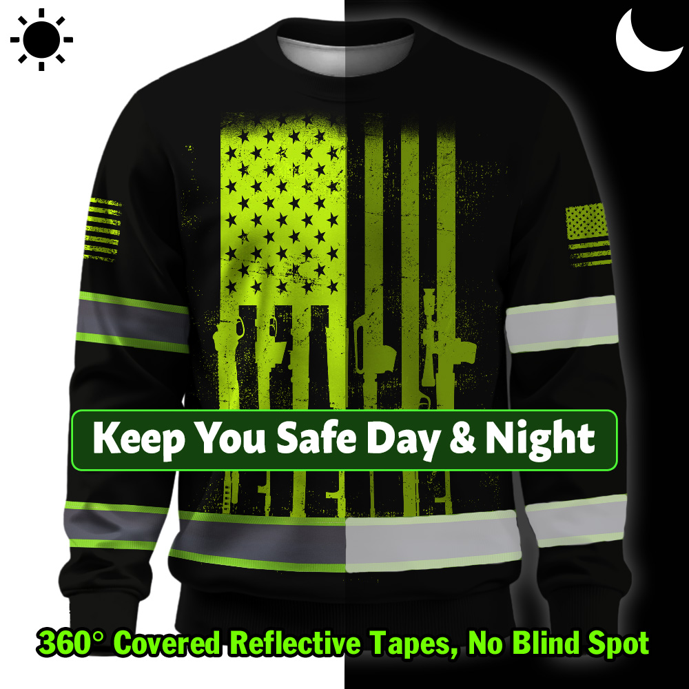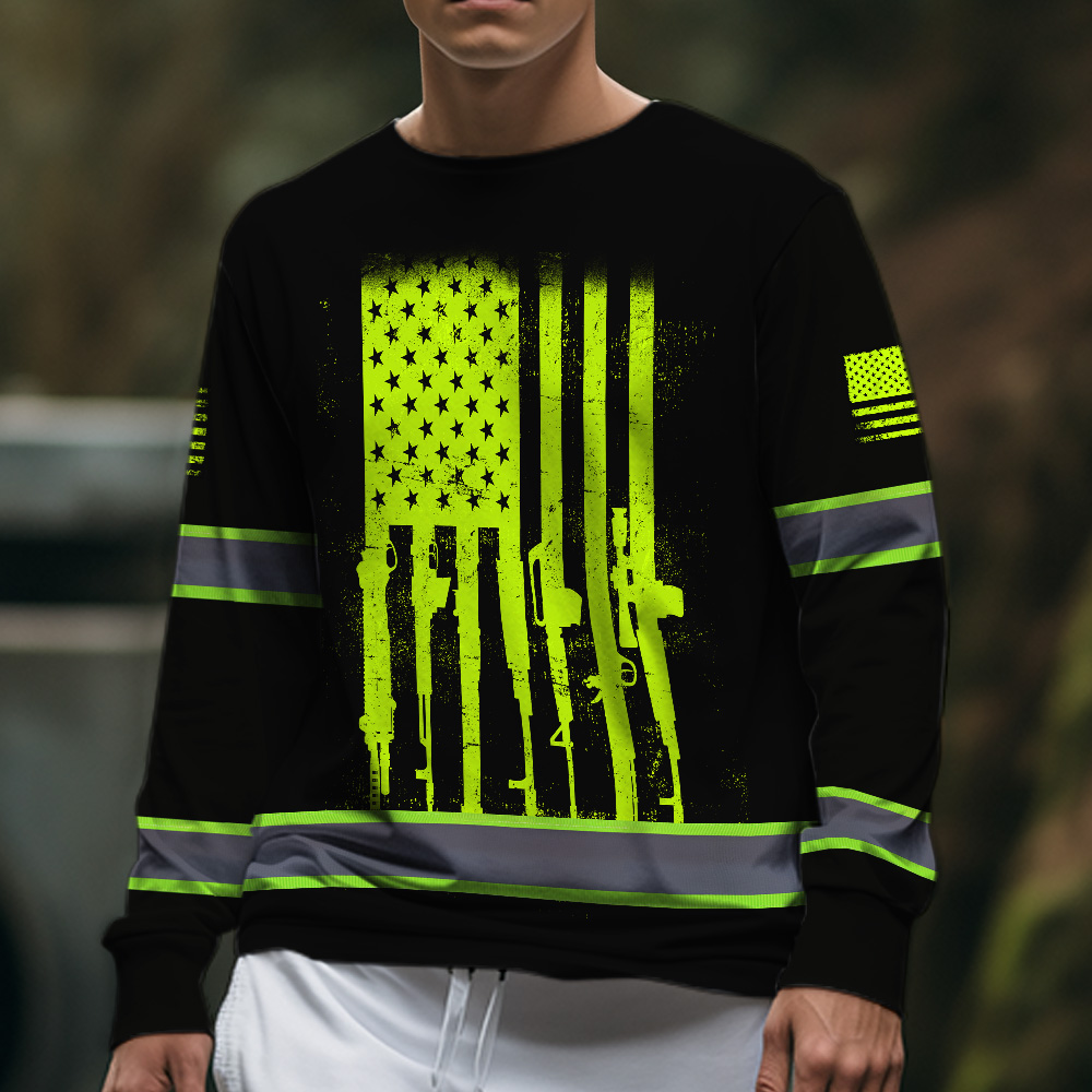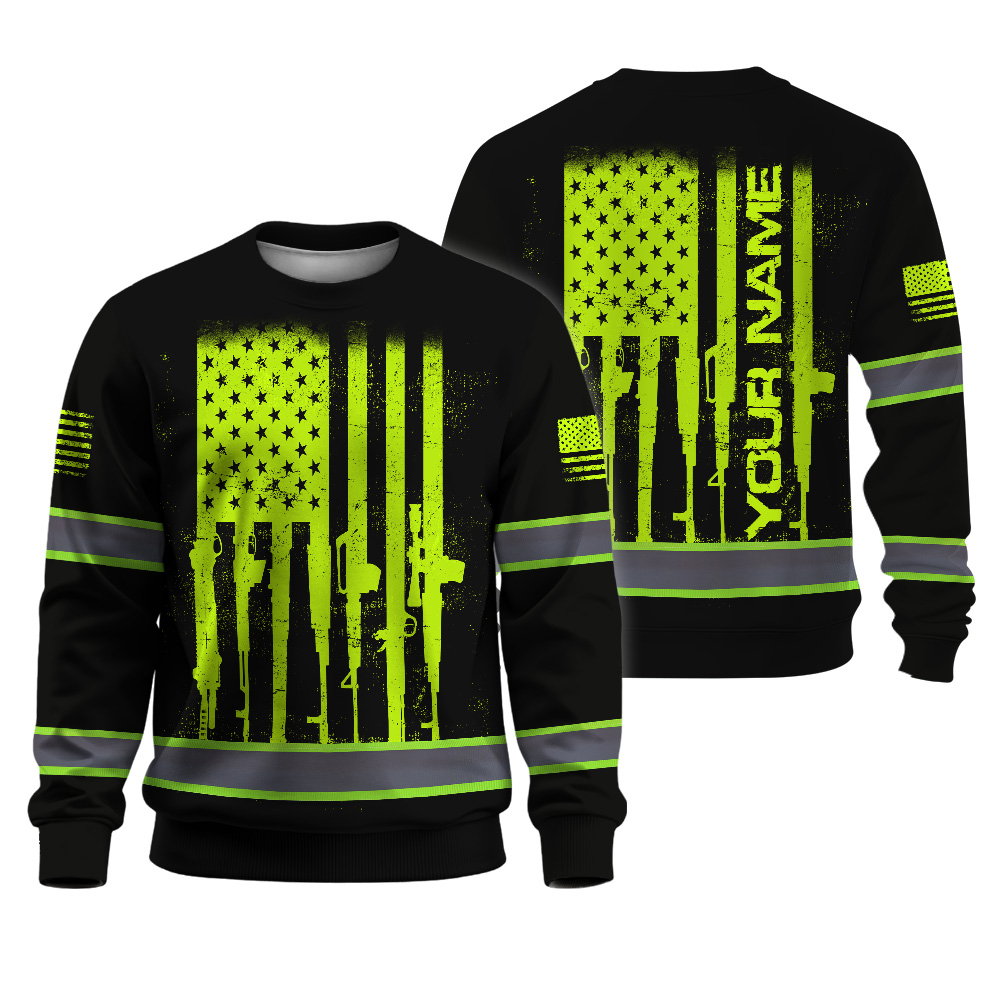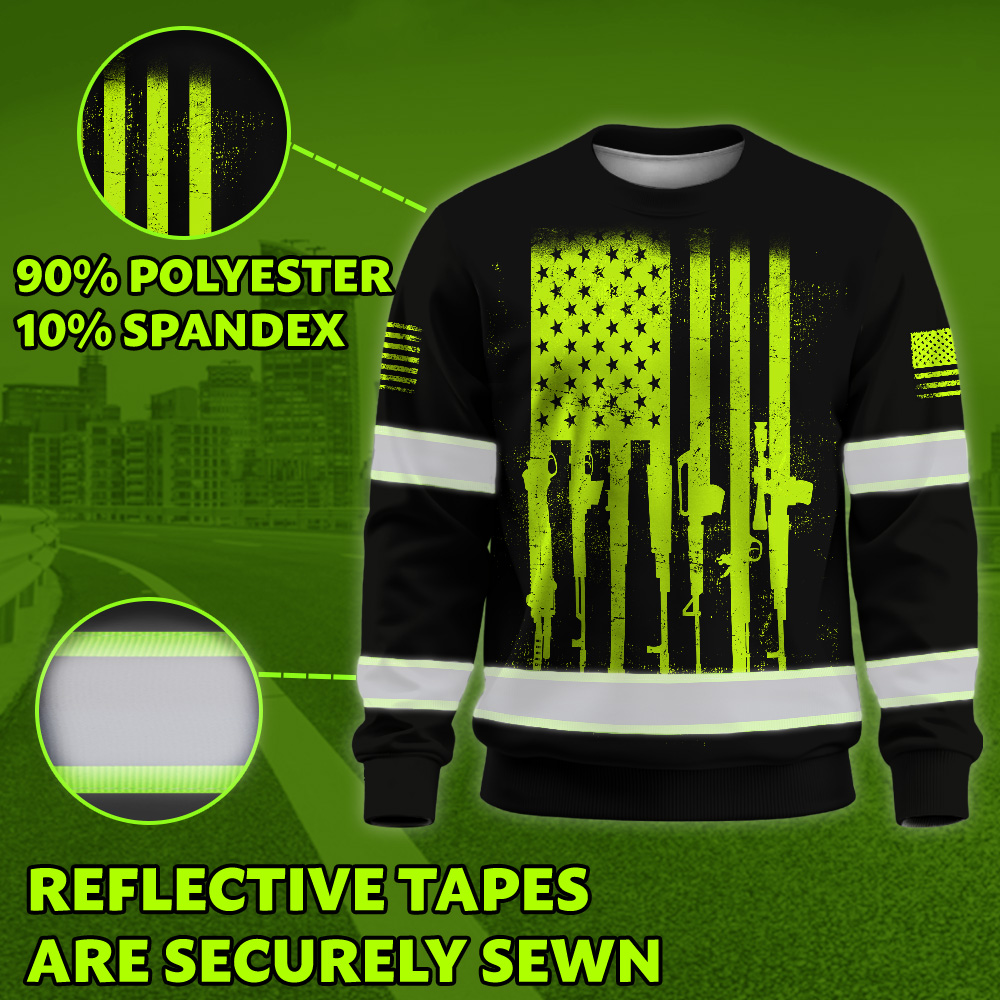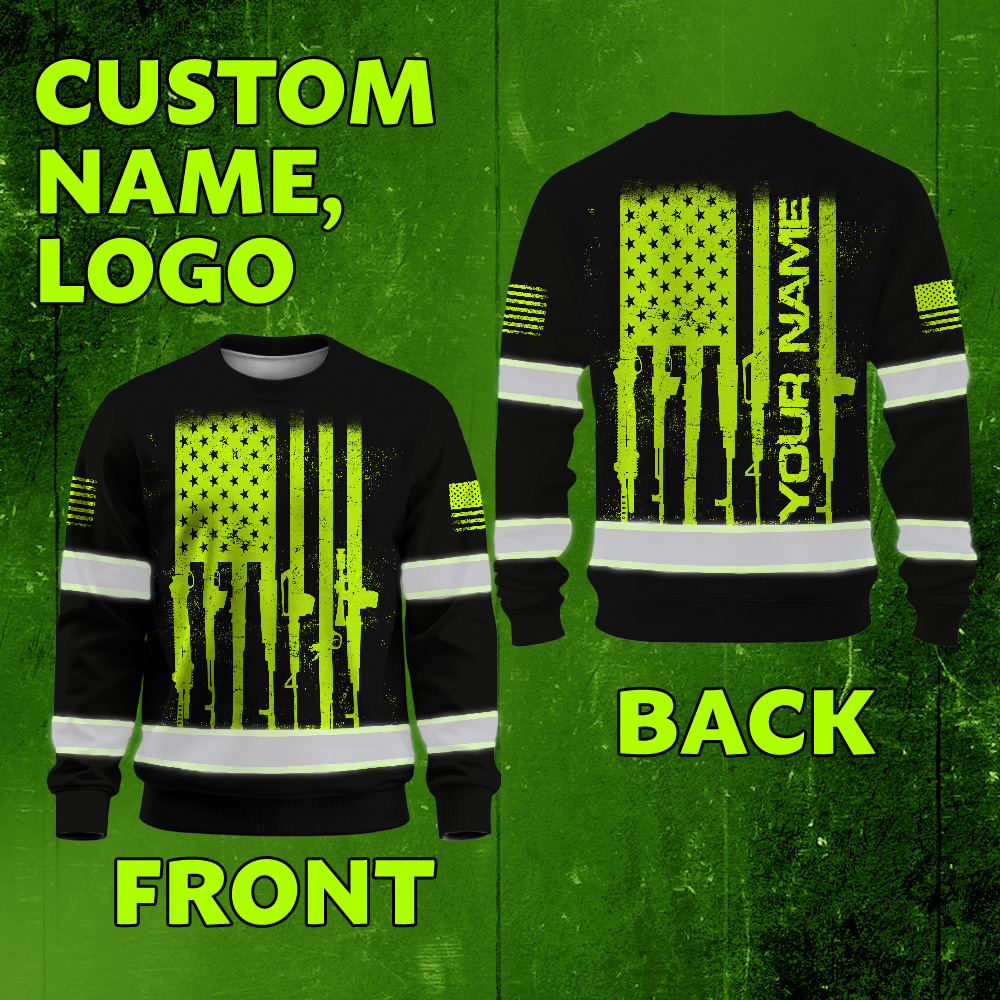 Hi Vis Long Sleeve Shirt Reflective Rifle Flag Custom Name Safety Workwear
