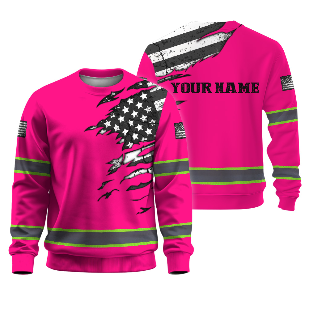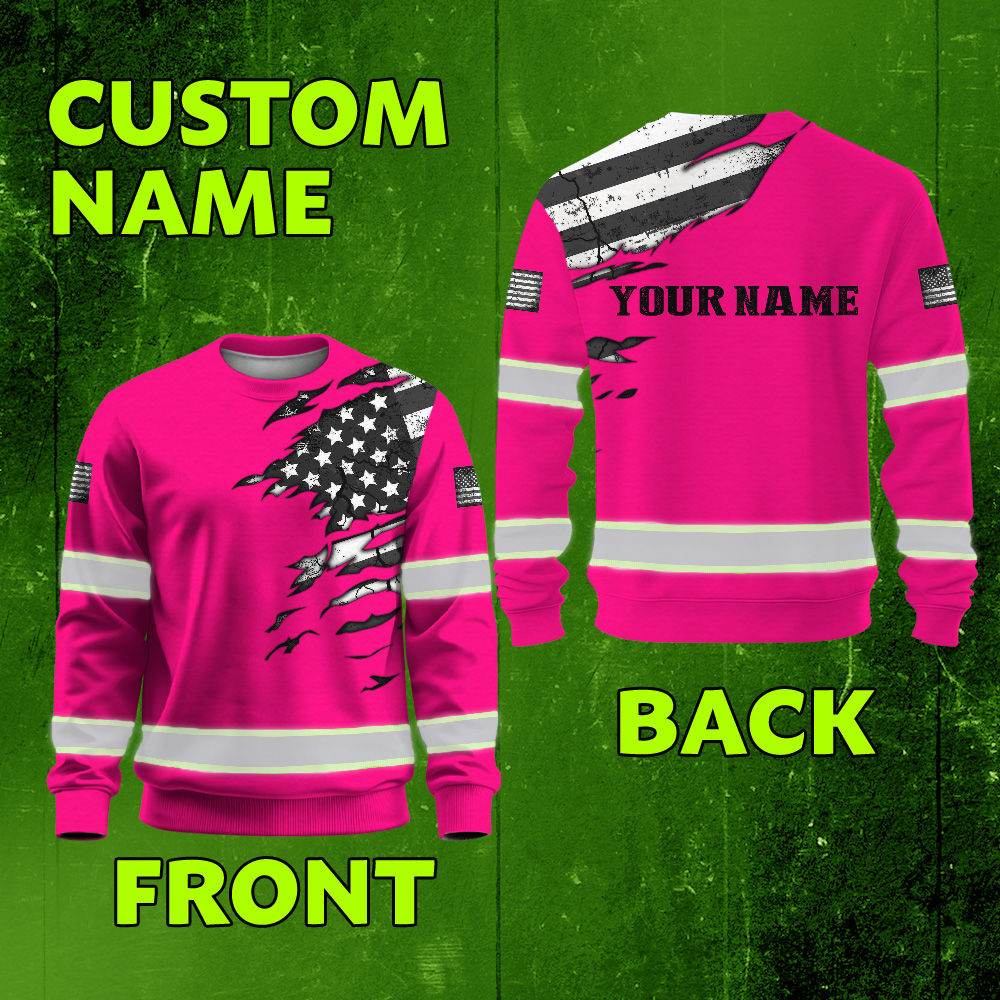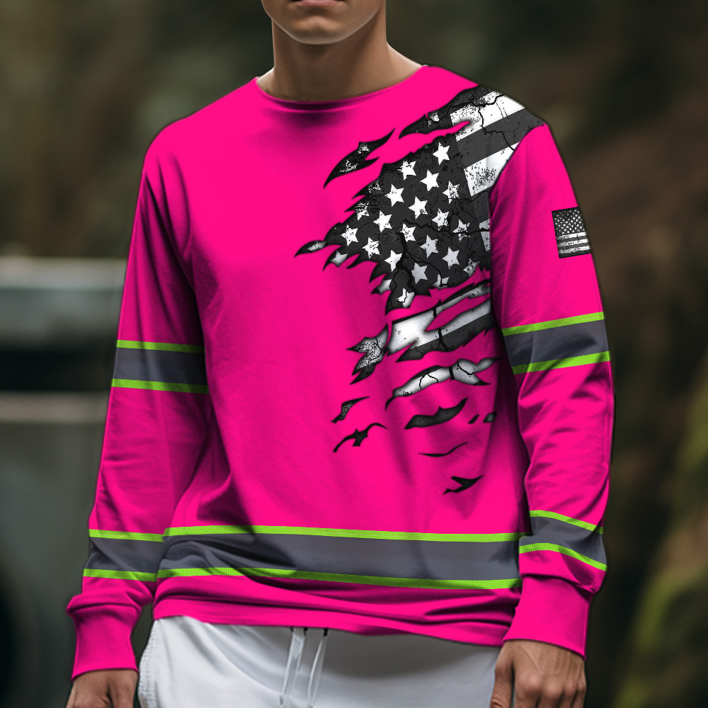 Hi Vis Long Sleeve Shirt Reflective Scratch Pink Neon US Flag Custom Name