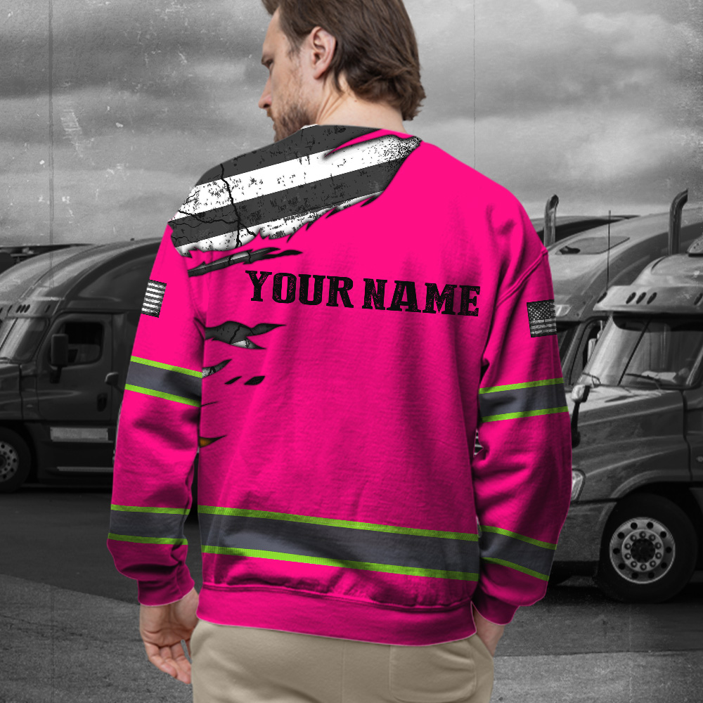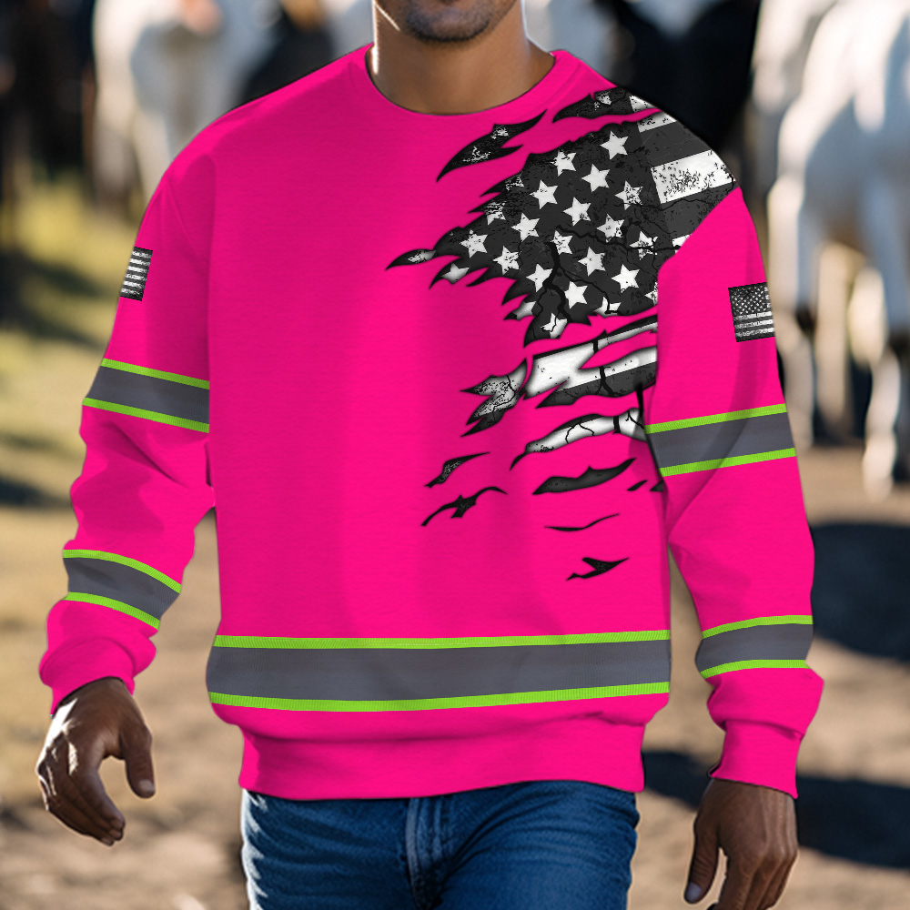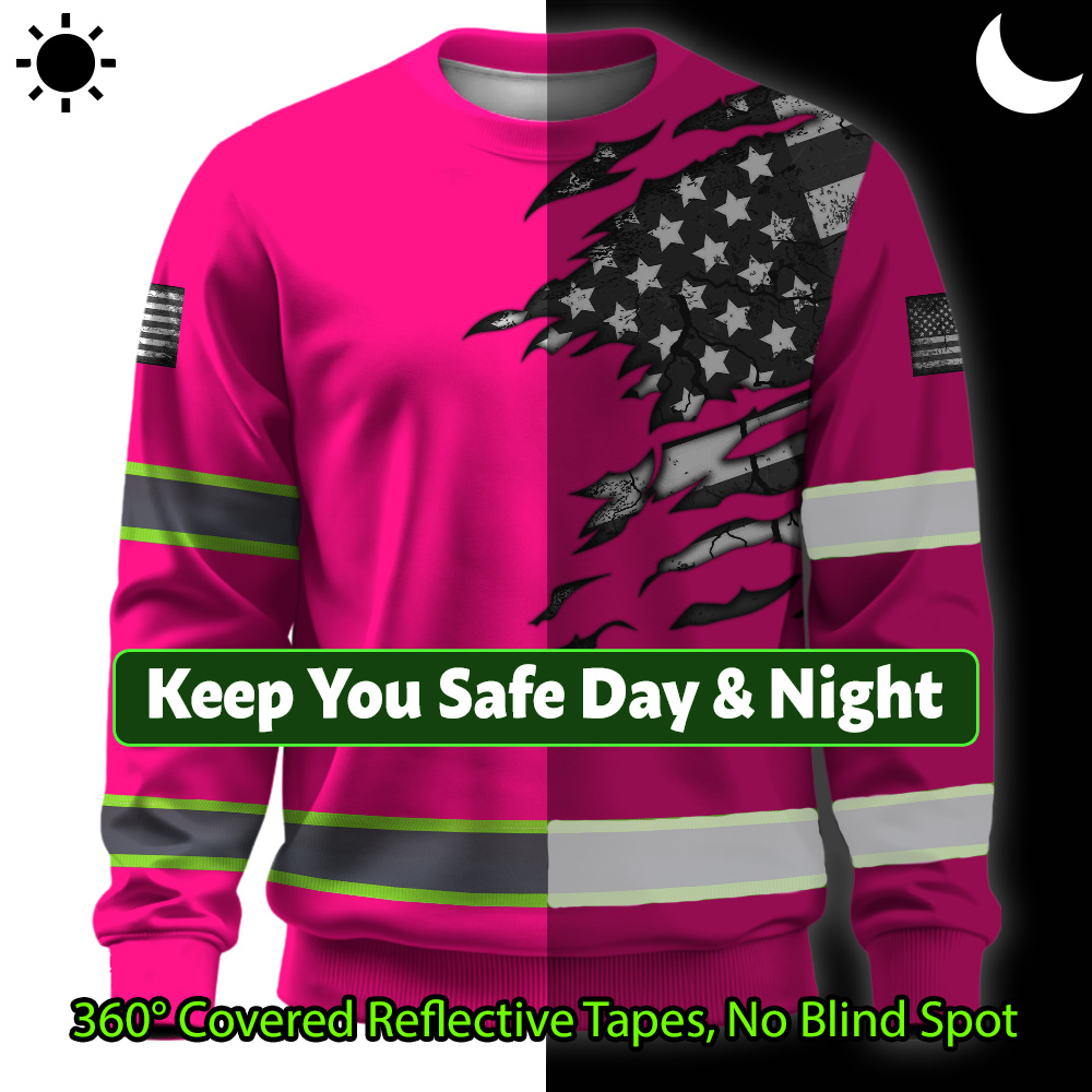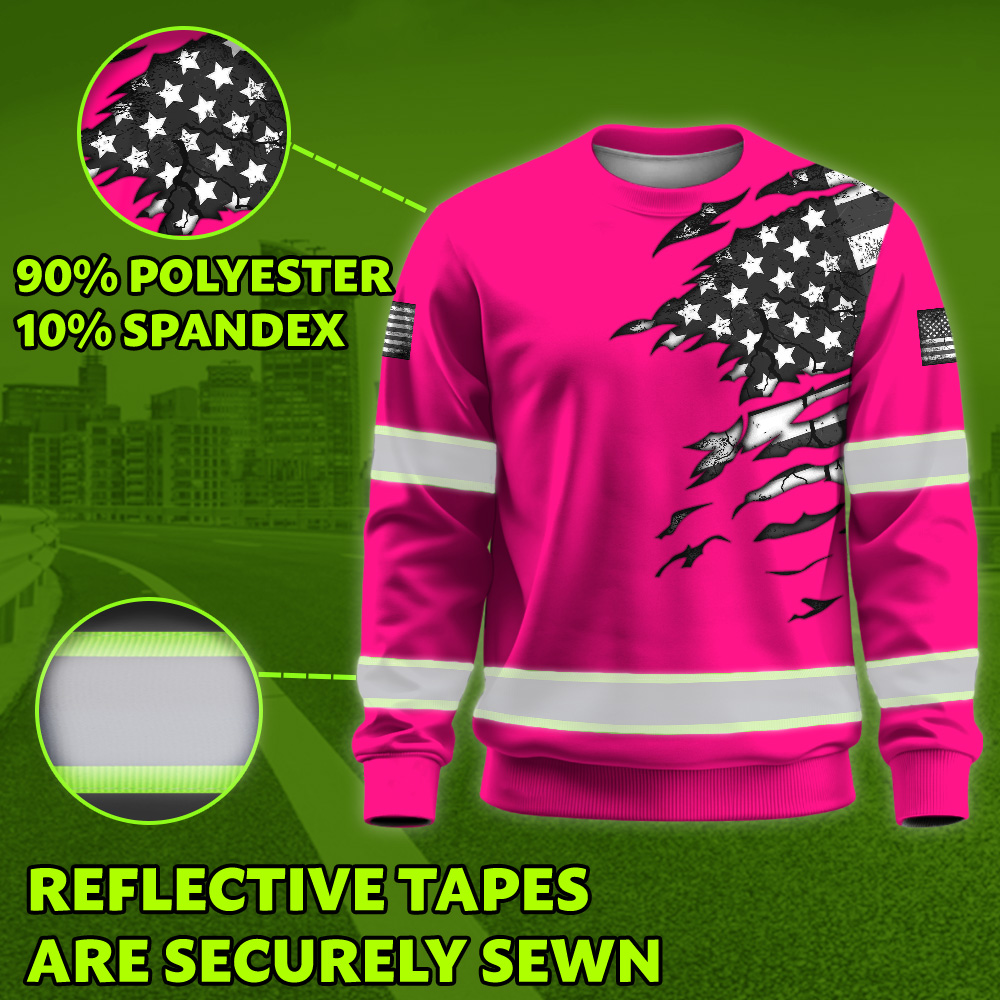 Hi Vis Long Sleeve Shirt Reflective Scratch Pink Neon US Flag Custom Name