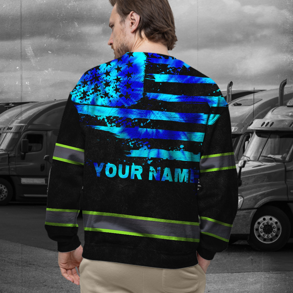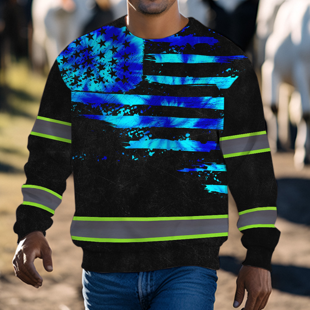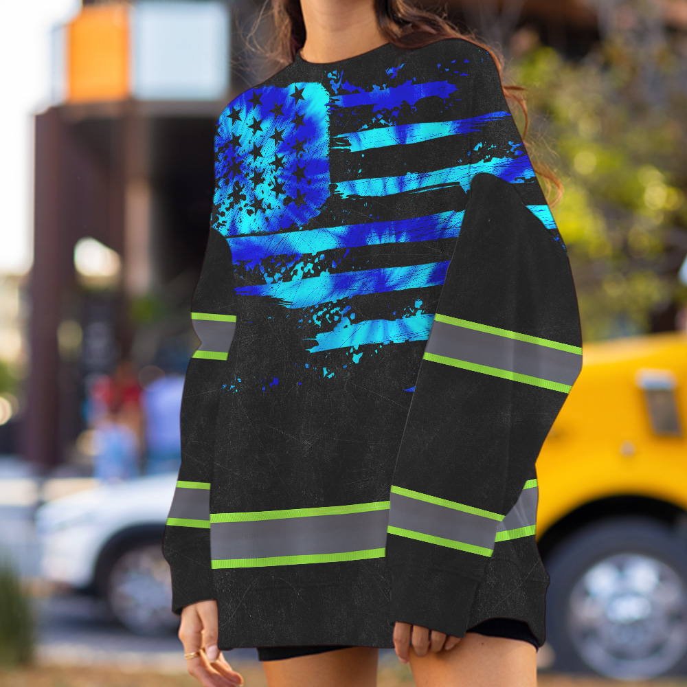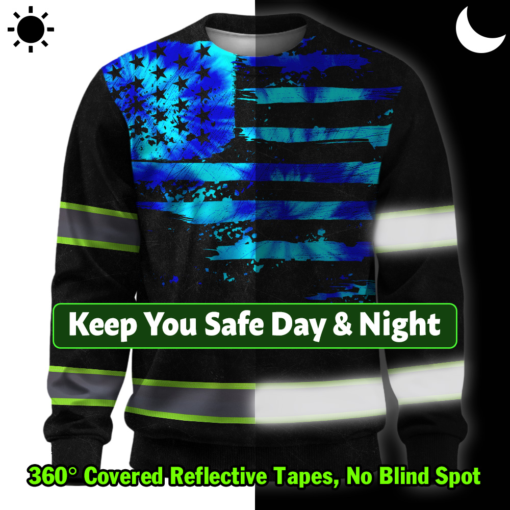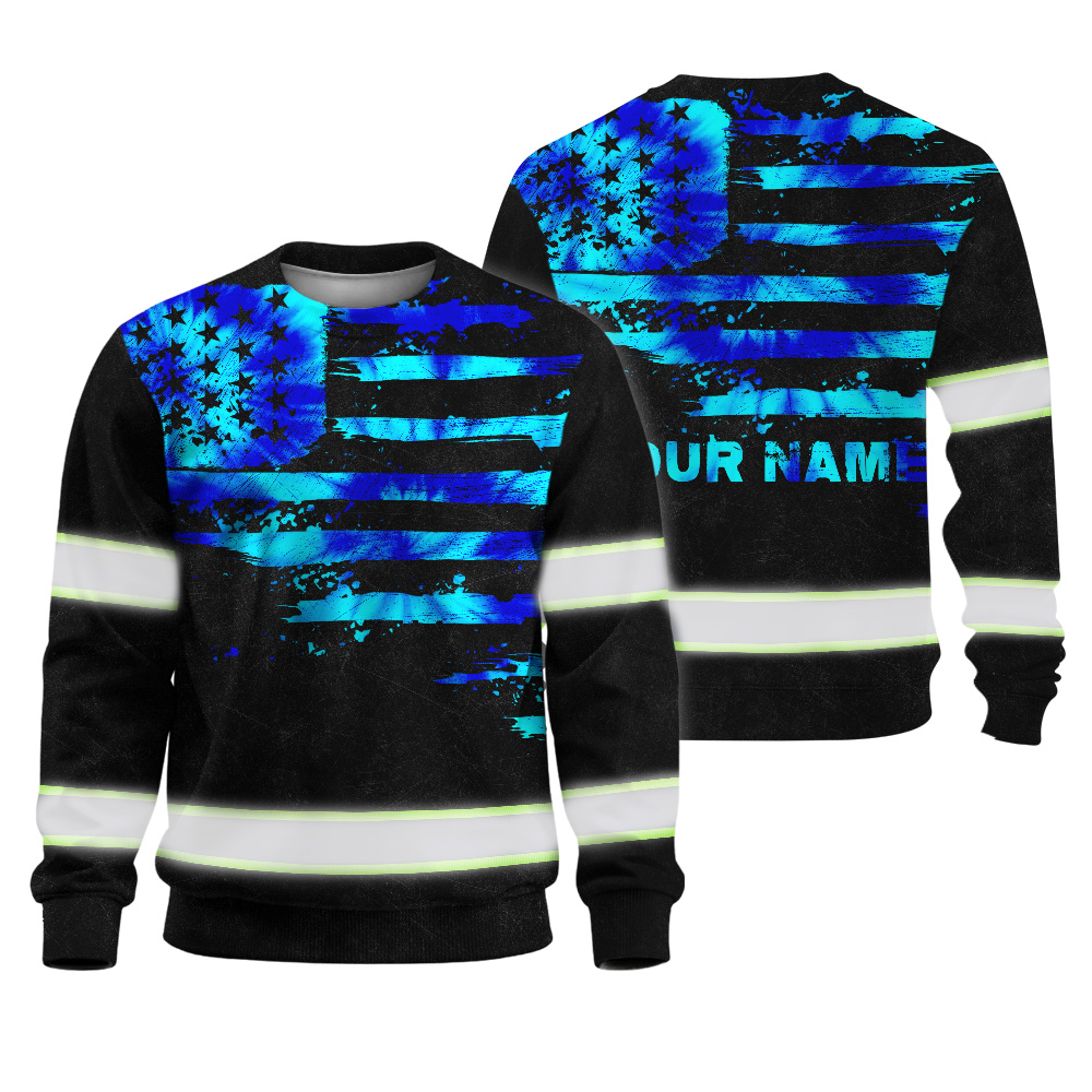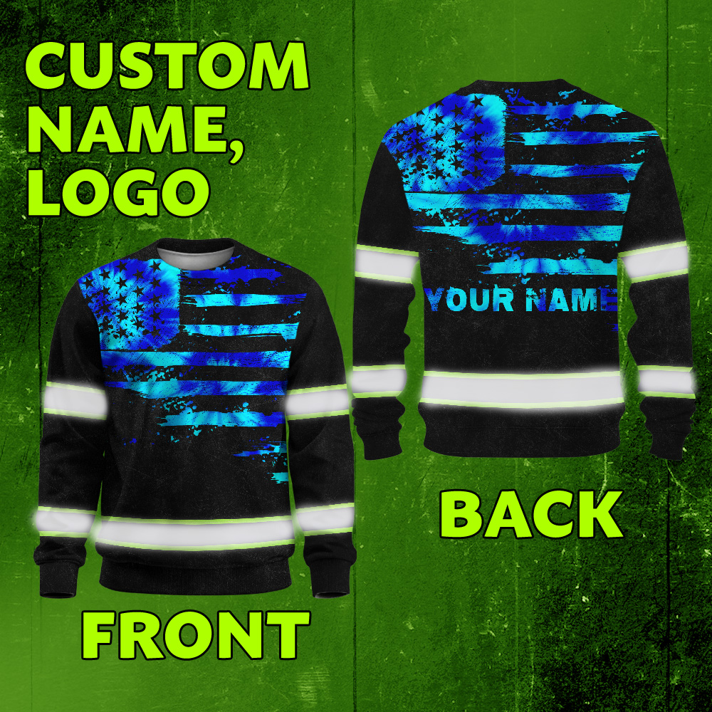 Hi Vis Long Sleeve Shirt Reflective Tapes Blue Tie Dye US Flag Custom Name
