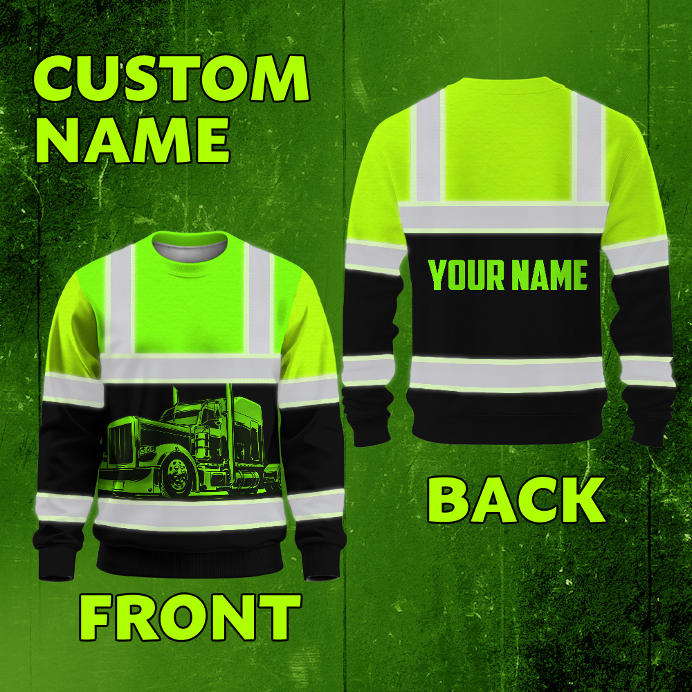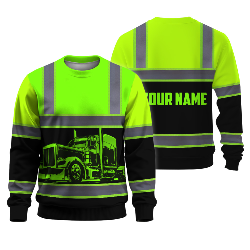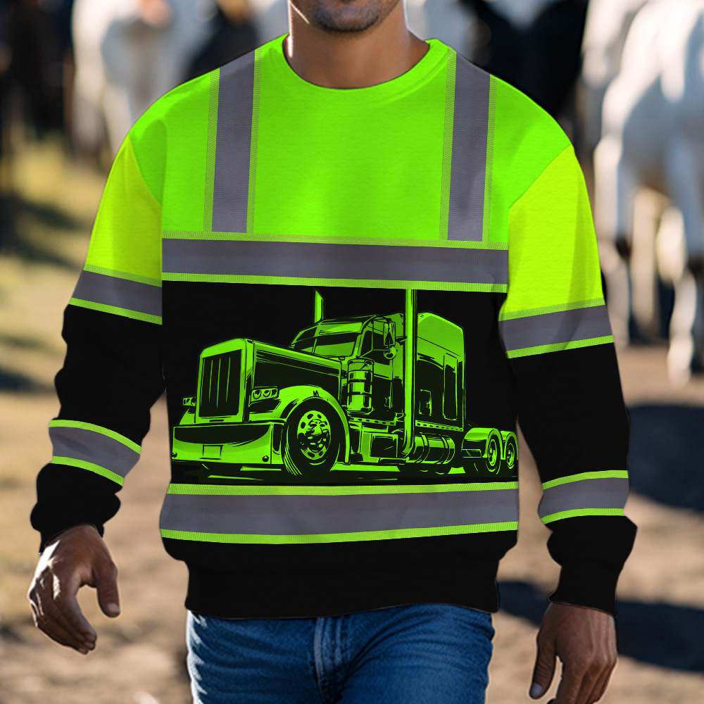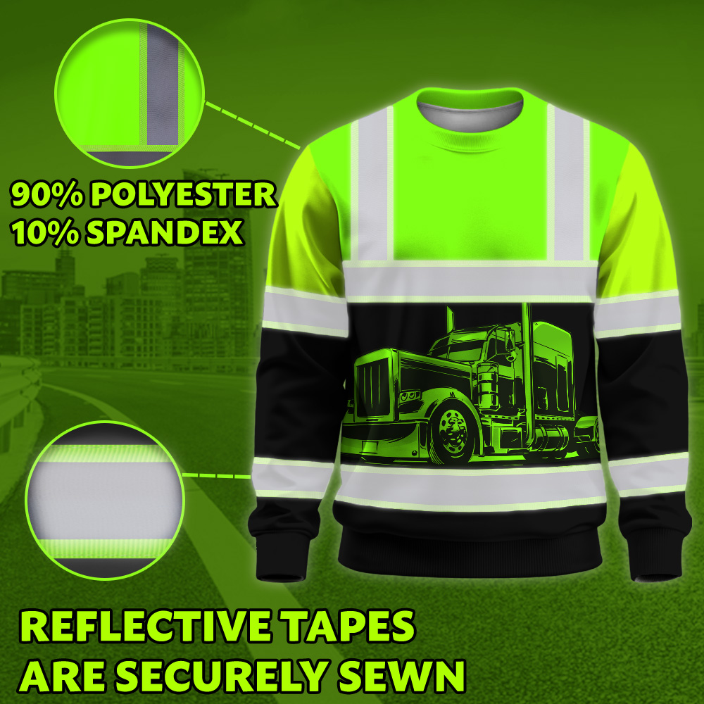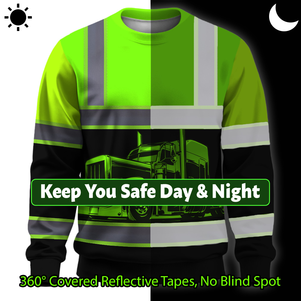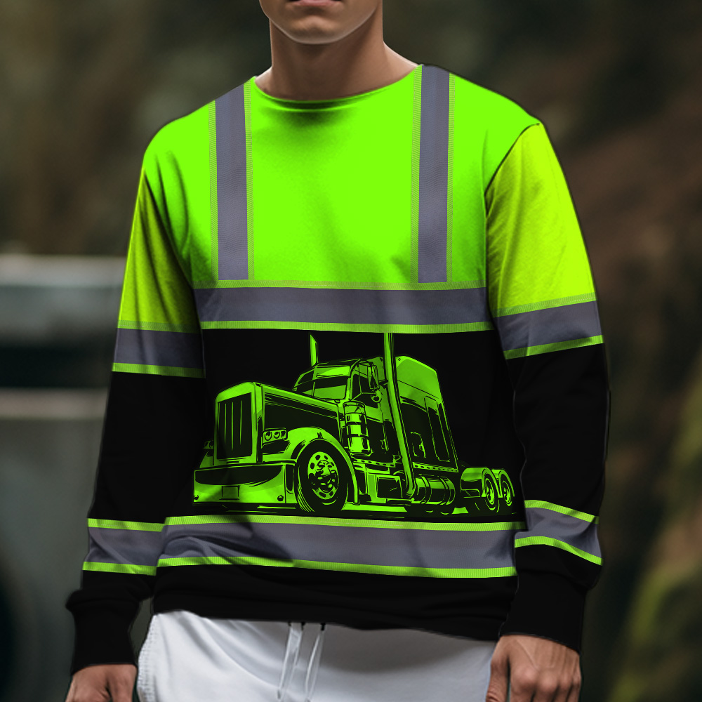 Hi Vis Long Sleeve Shirt Reflective Tapes Green Semi Truck Driver