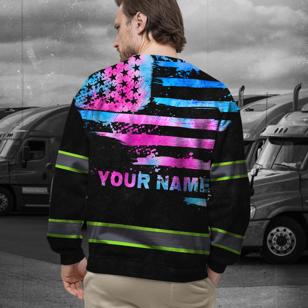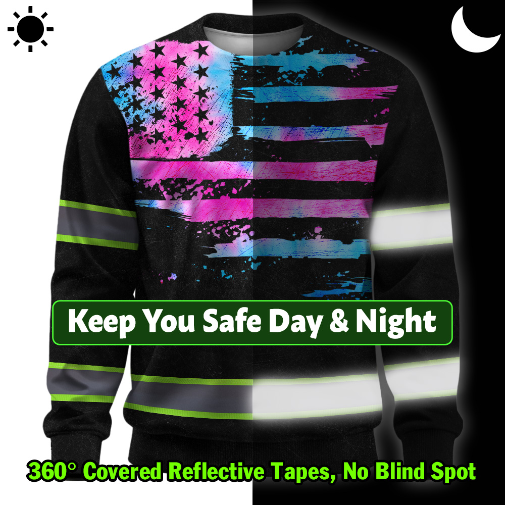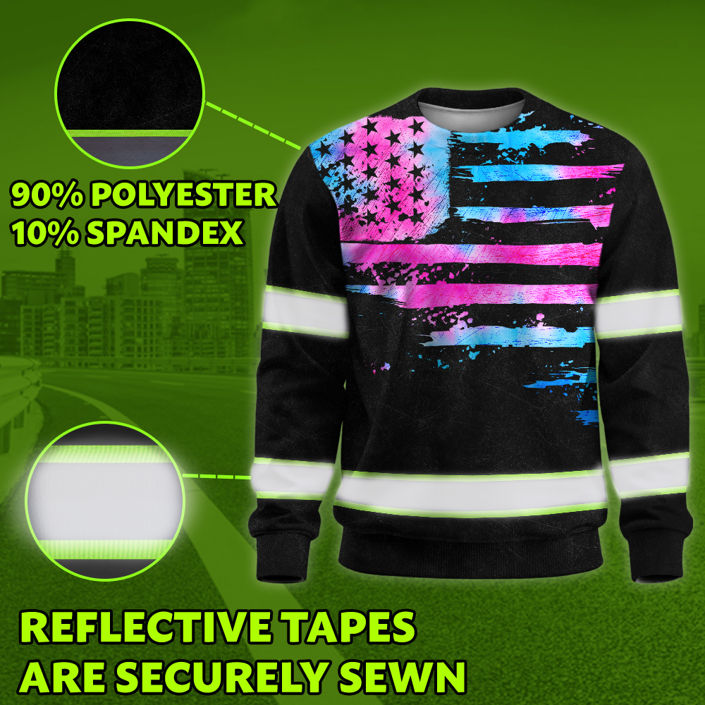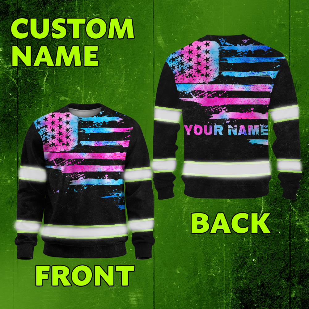 Hi Vis Long Sleeve Shirt Reflective Tapes Pink Blue Tie Dye US Flag Custom Name