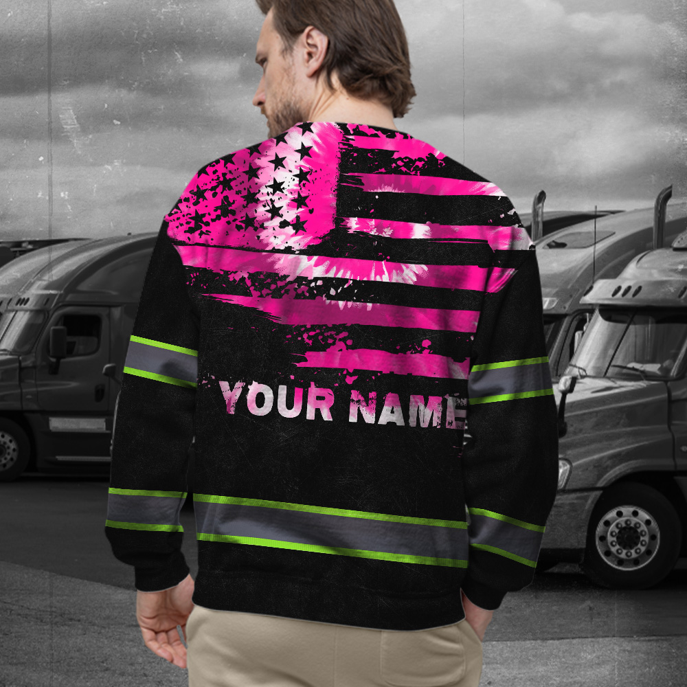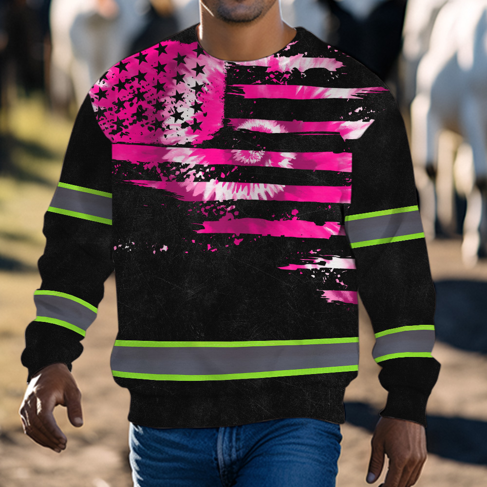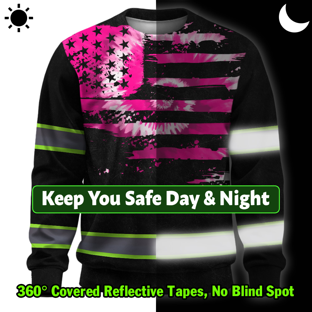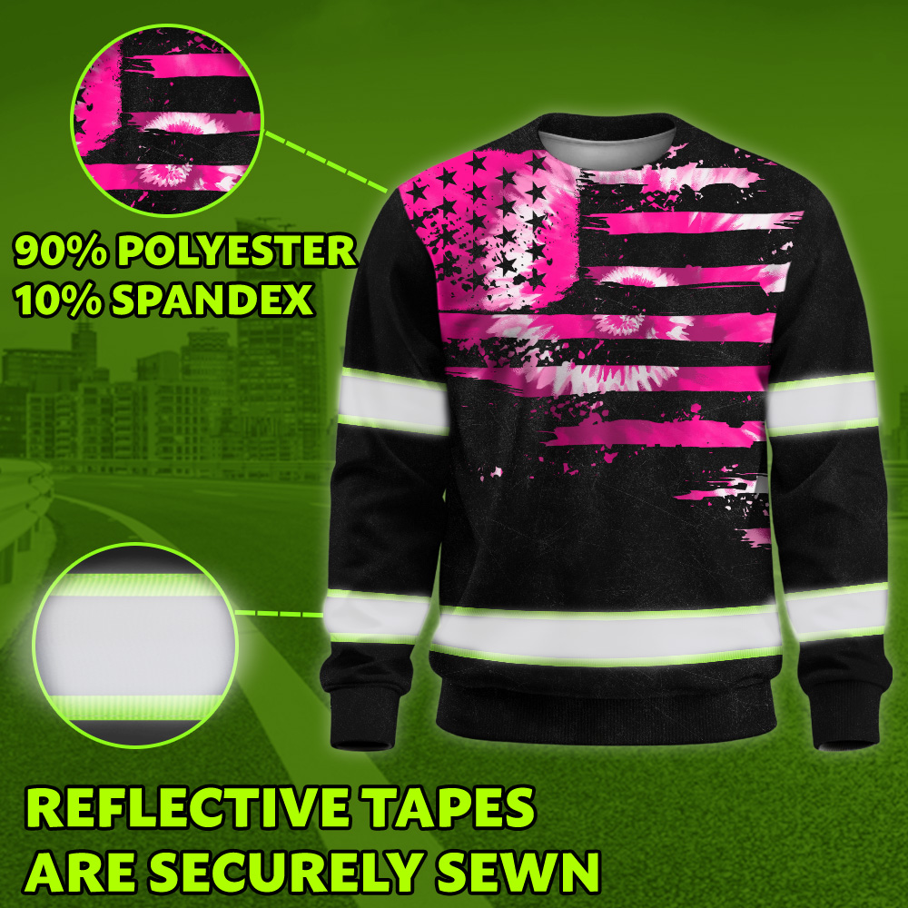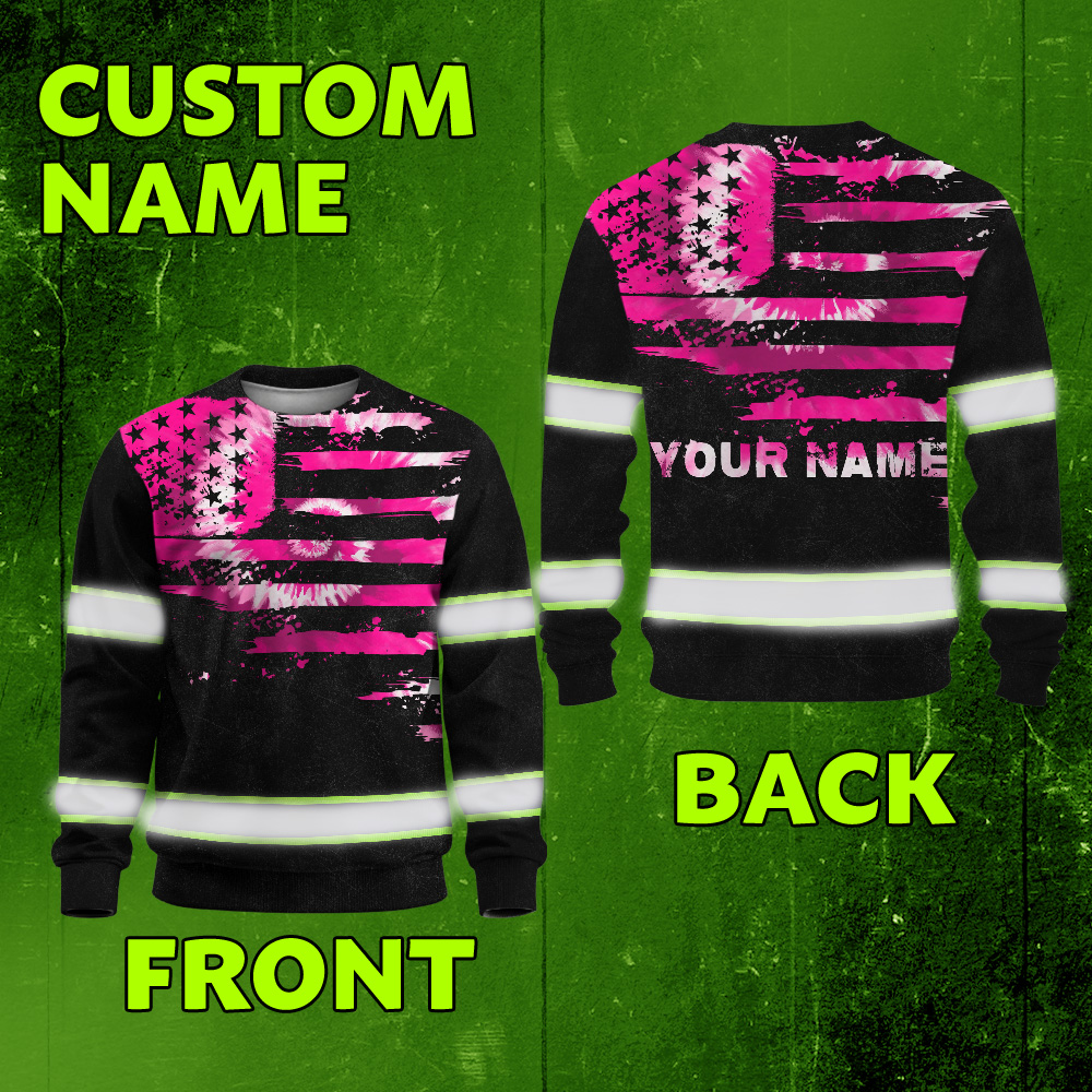 Hi Vis Long Sleeve Shirt Reflective Tapes Pink Tie Dye US Flag Custom Name