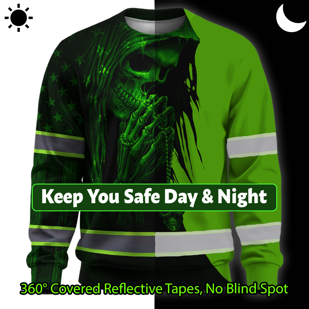 Hi Vis Long Sleeve Shirt Reflective Tapes Skull