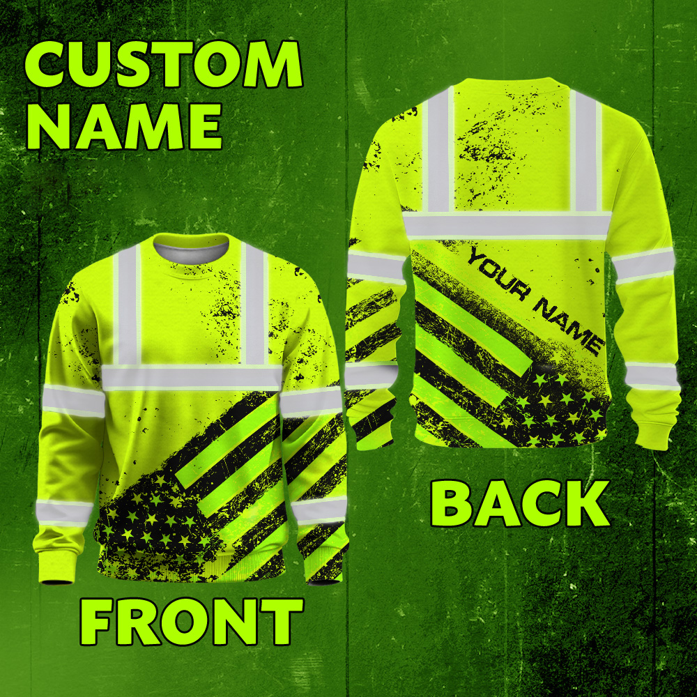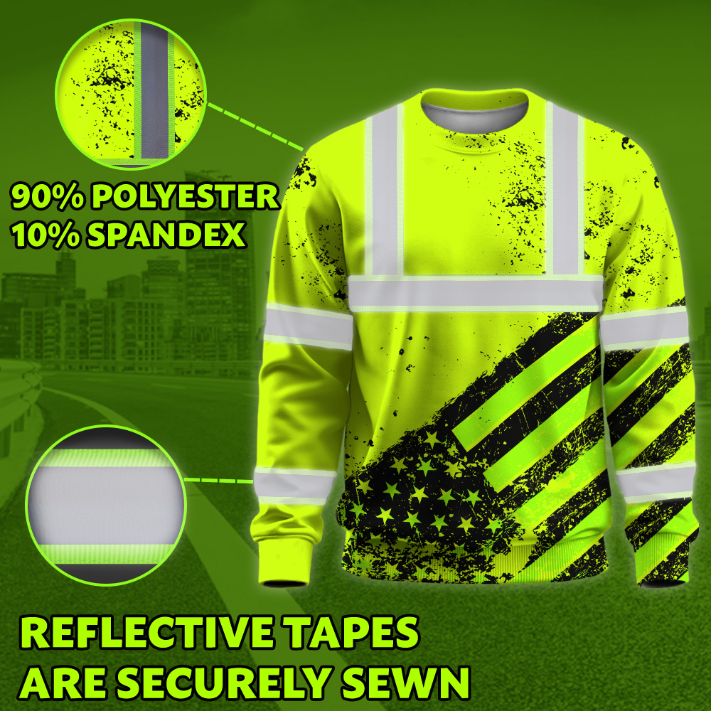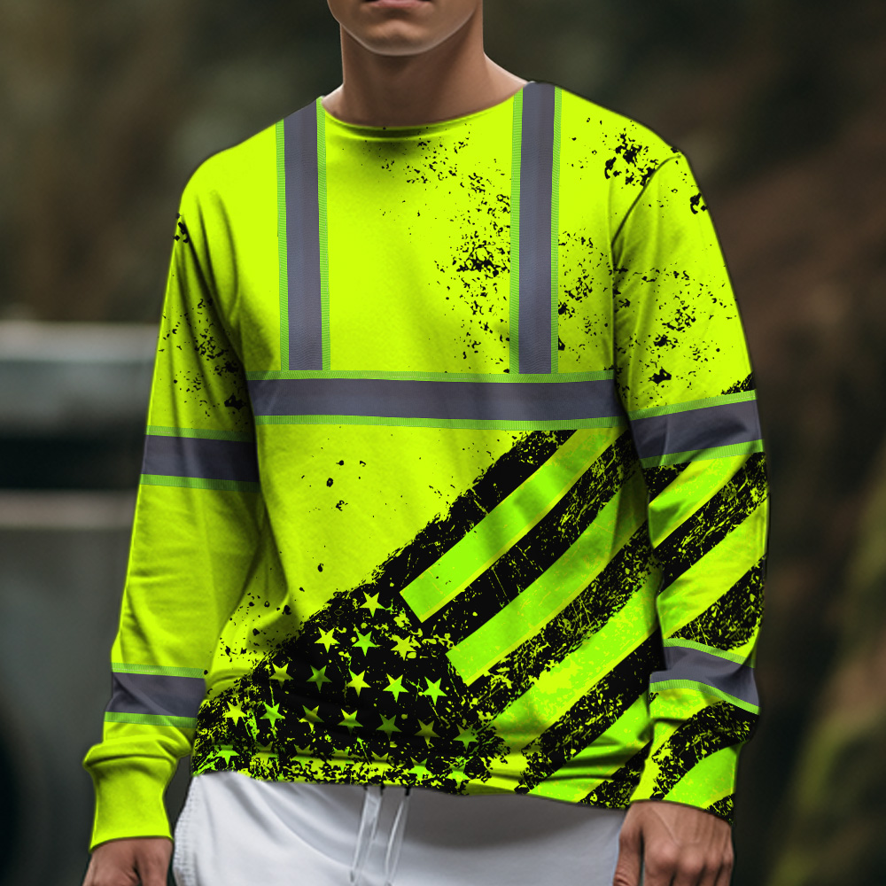 Hi Vis Long Sleeve Shirt Reflective Tapes Yellow Neon USA Flag Safety Workwear