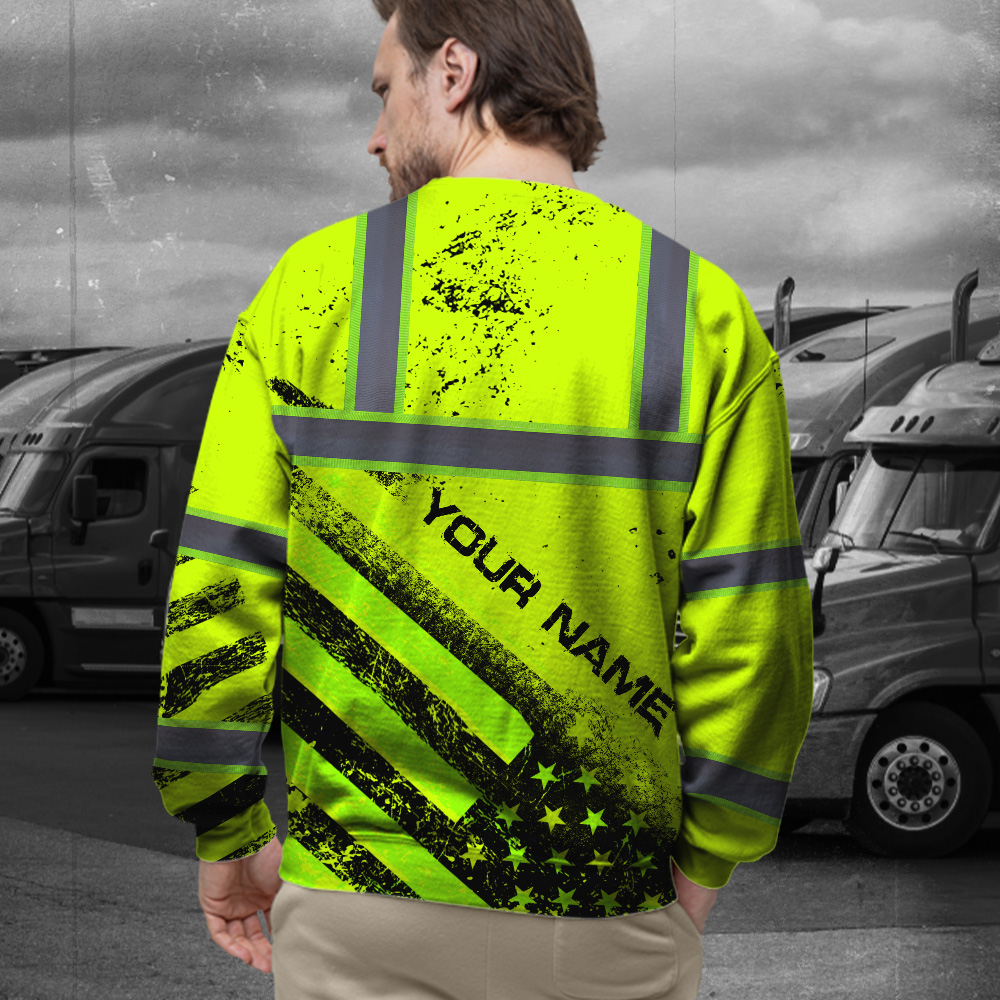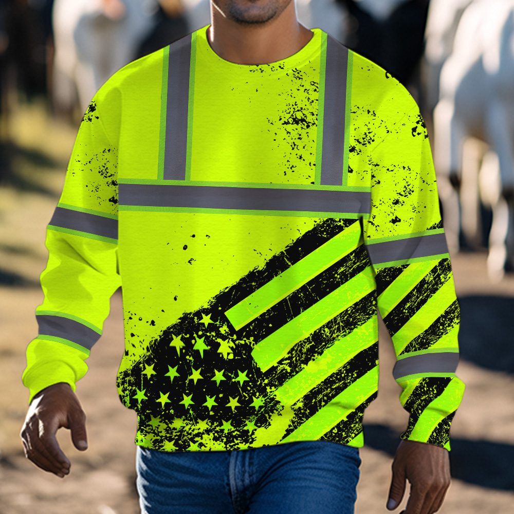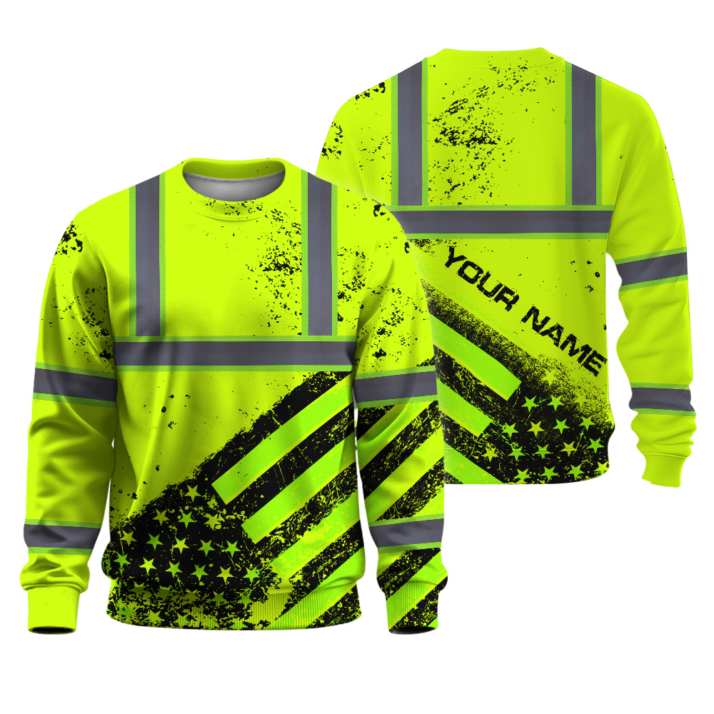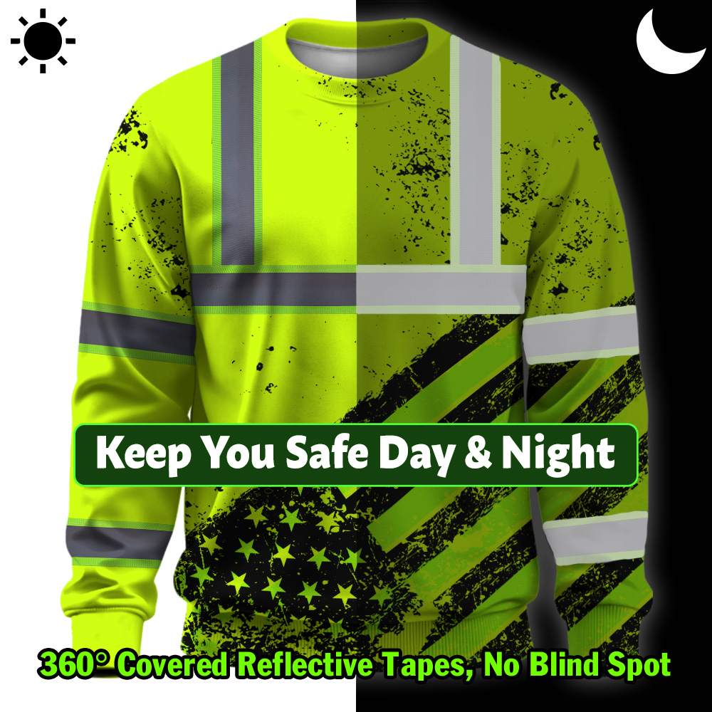 Hi Vis Long Sleeve Shirt Reflective Tapes Yellow Neon USA Flag Safety Workwear