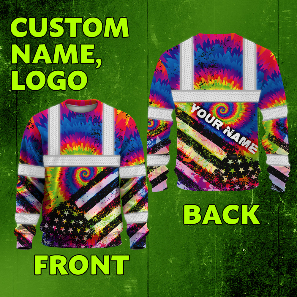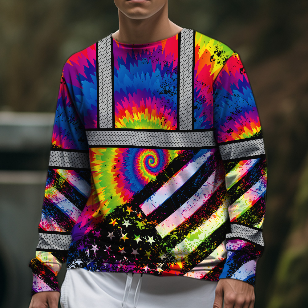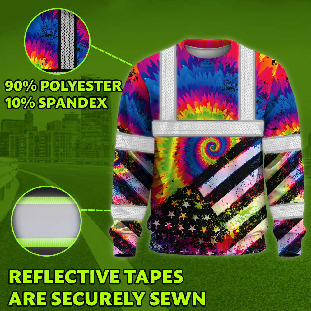 Hi Vis Long Sleeve Shirt Reflective Tie Dye 2 US Flag Paint