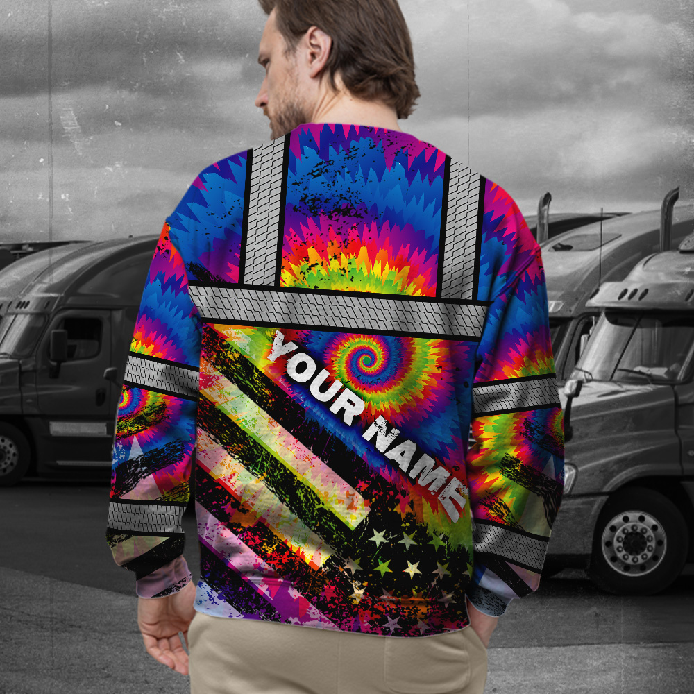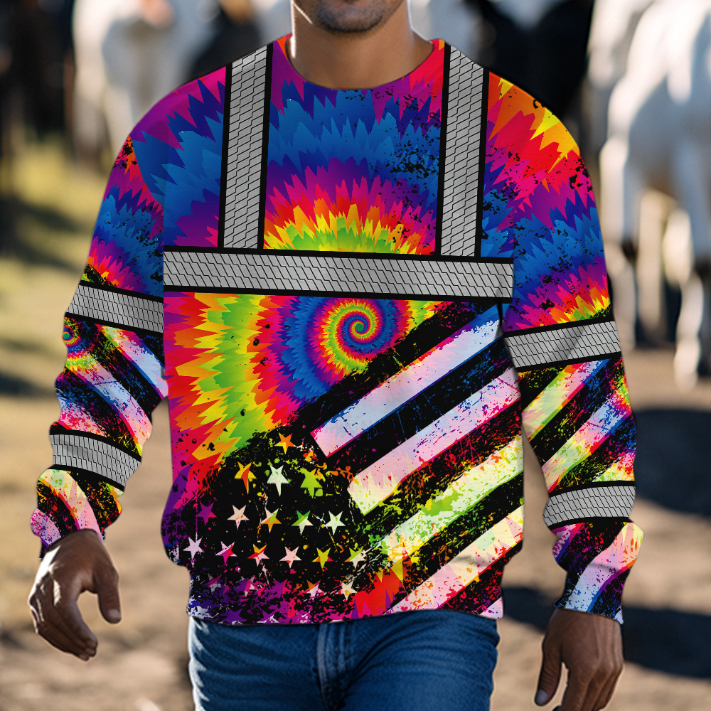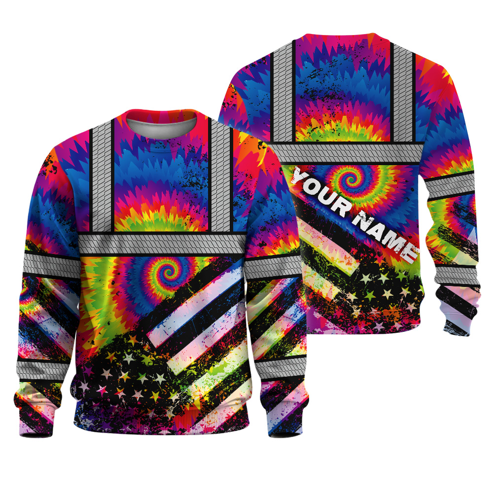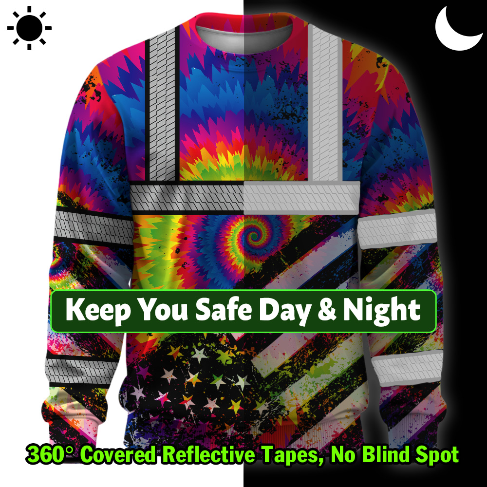 Hi Vis Long Sleeve Shirt Reflective Tie Dye 2 US Flag Paint