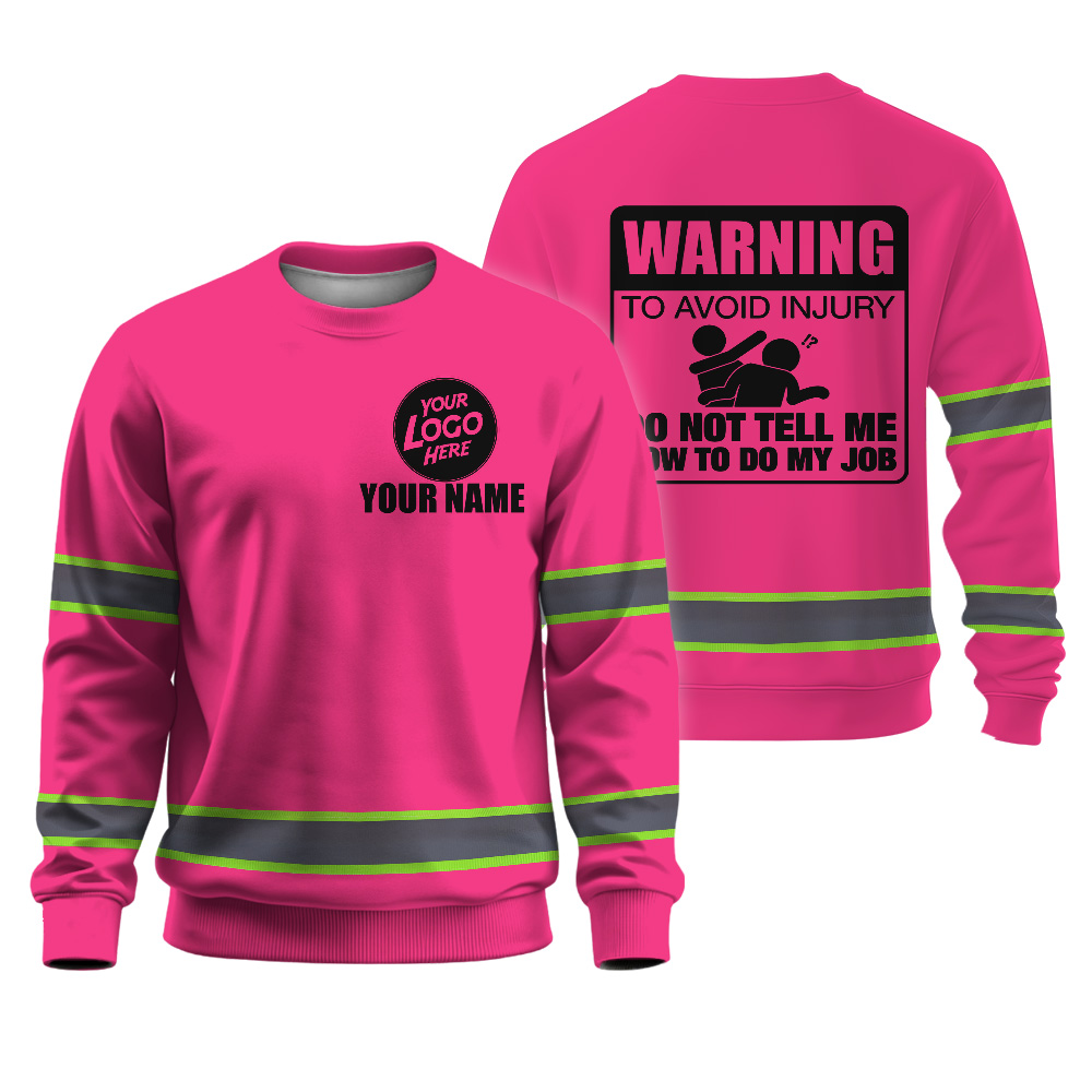 Hi Vis Long Sleeve Shirt Tell Me Pink Construction Worker Custom Name and Logo Safety Workwear