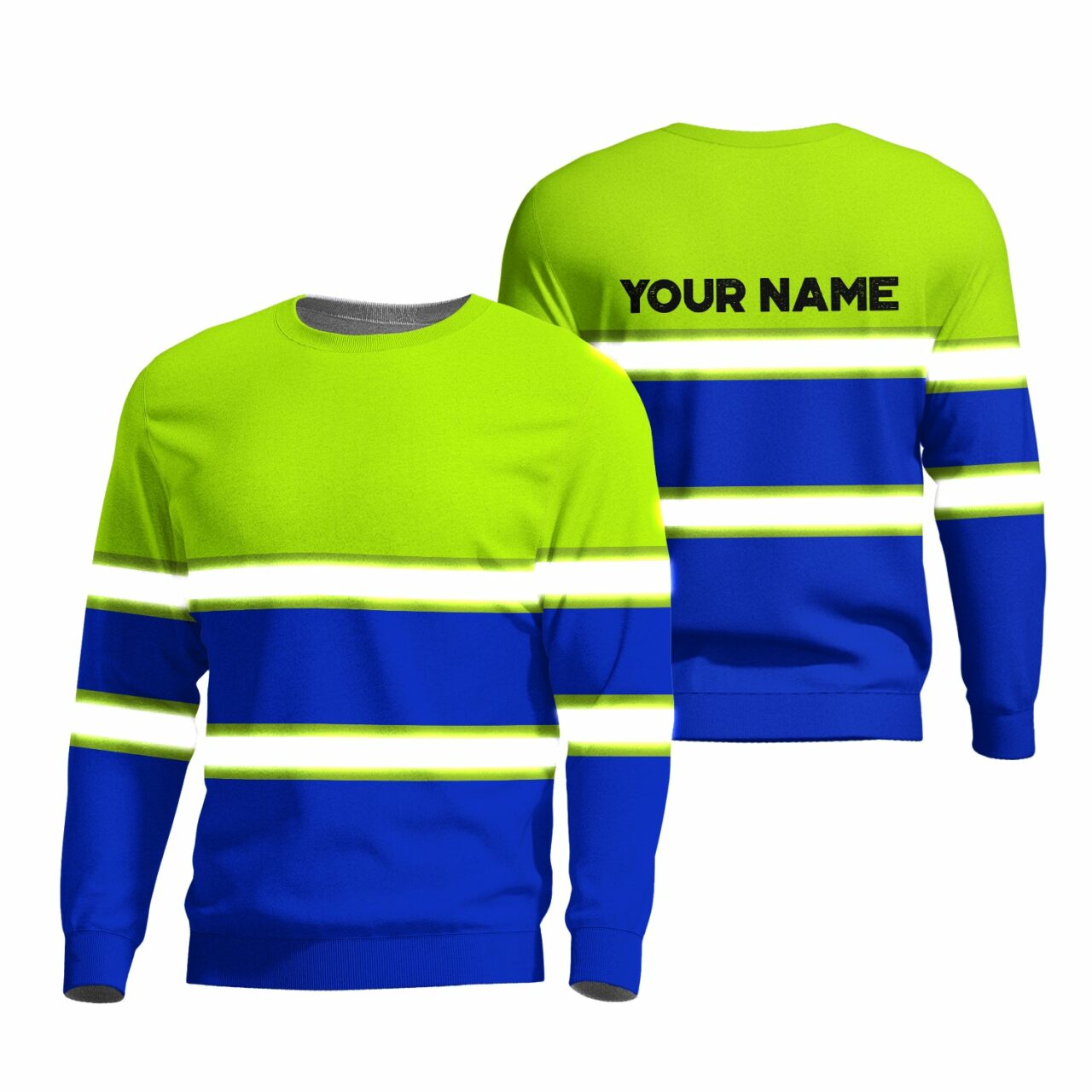 Hi Vis Long Sleeve Shirts Reflective Stripes Lime and Blue Custom Name Safety Workwear Description