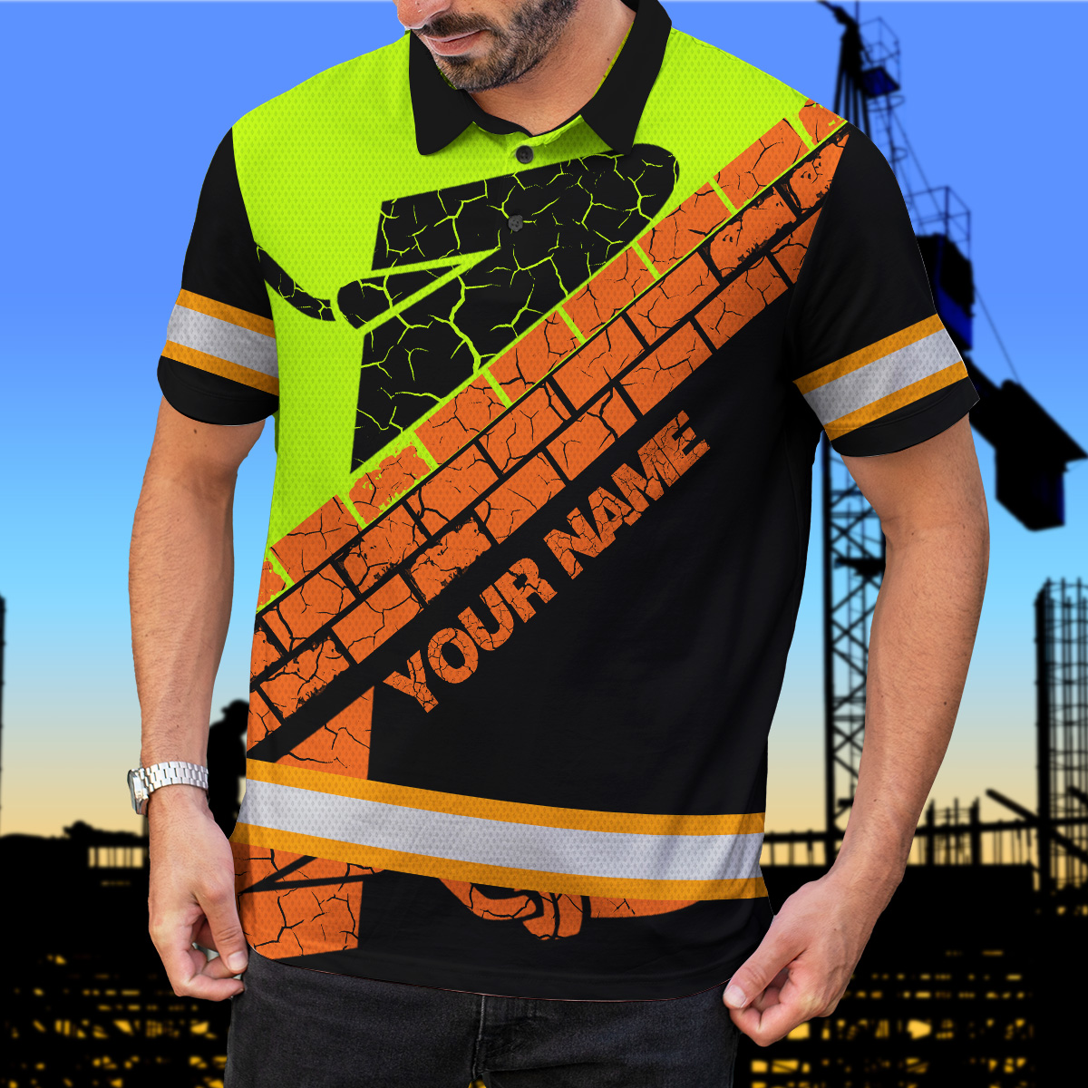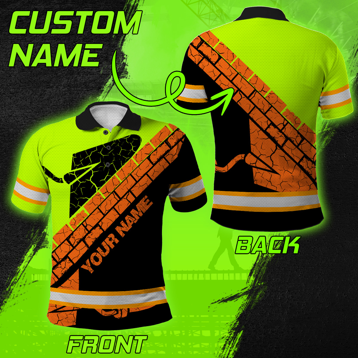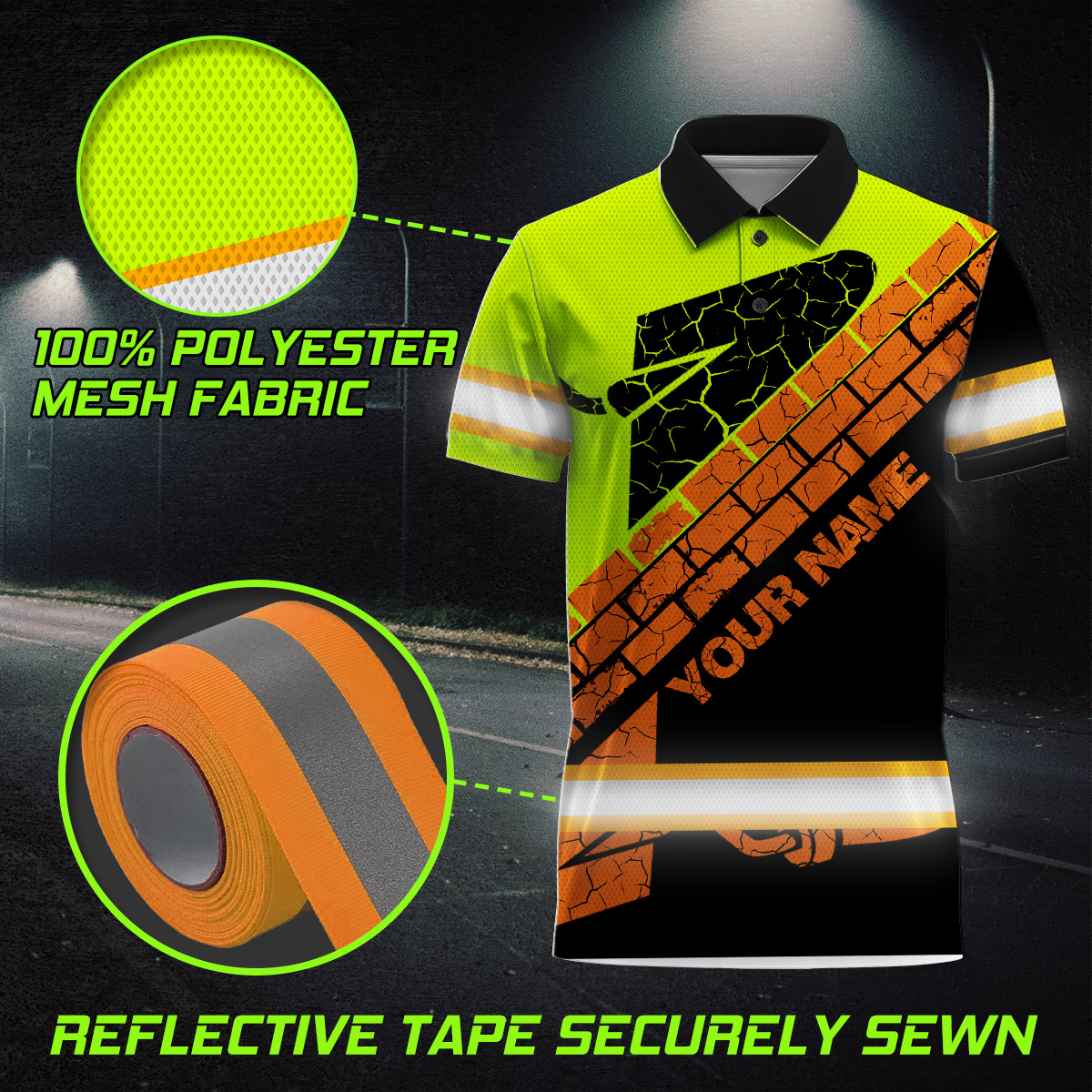 Hi Vis Polo Reflective Tapes Green Bricklayer Custom Name Safety Workwear For Bricklayer, Workers, Runners, Cyclists