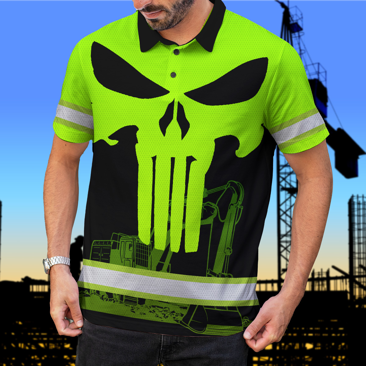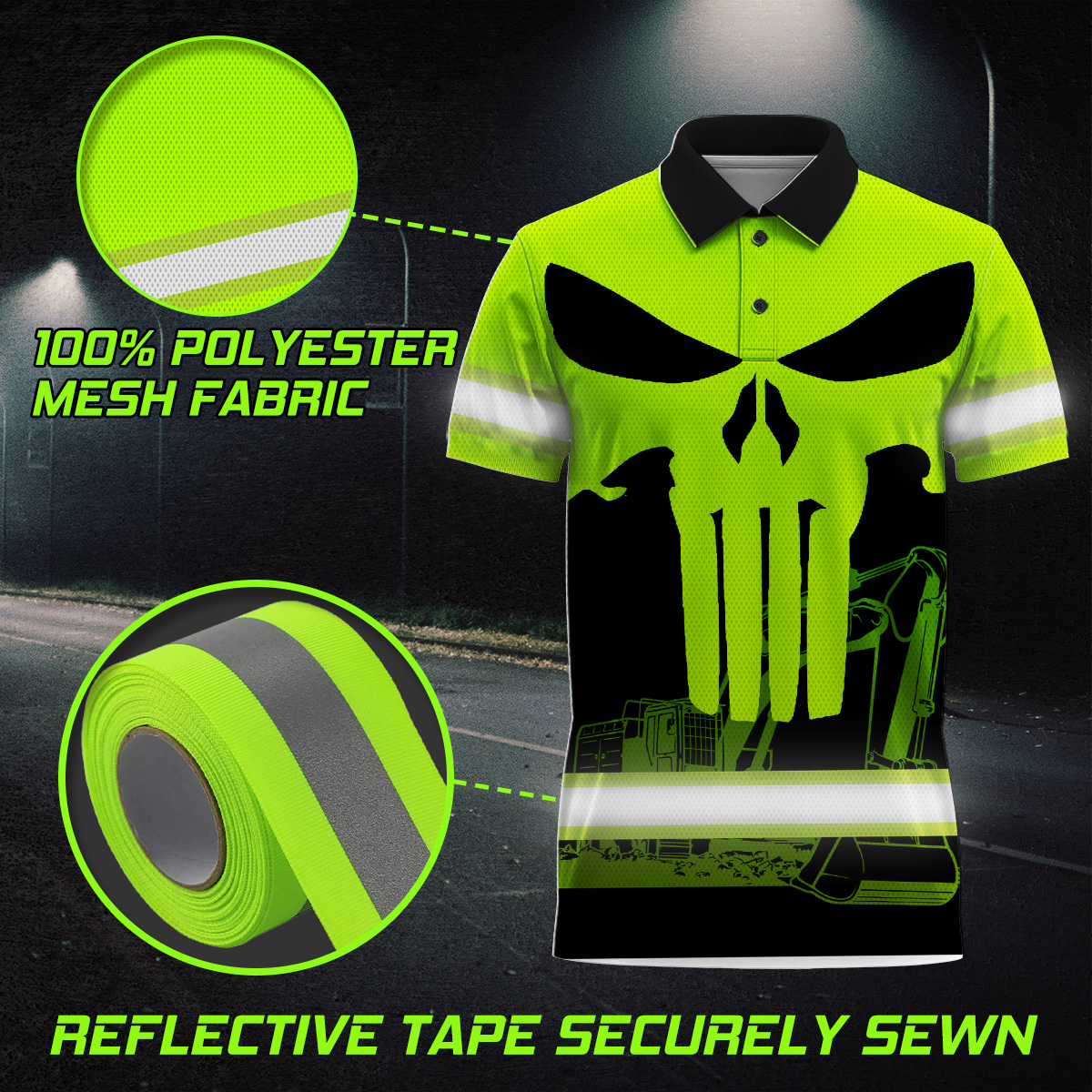Hi Vis Polo Reflective Tapes Green Excavator Operator Custom Name Safety Workwear For Operators, Workers, Runners, Cyclists
