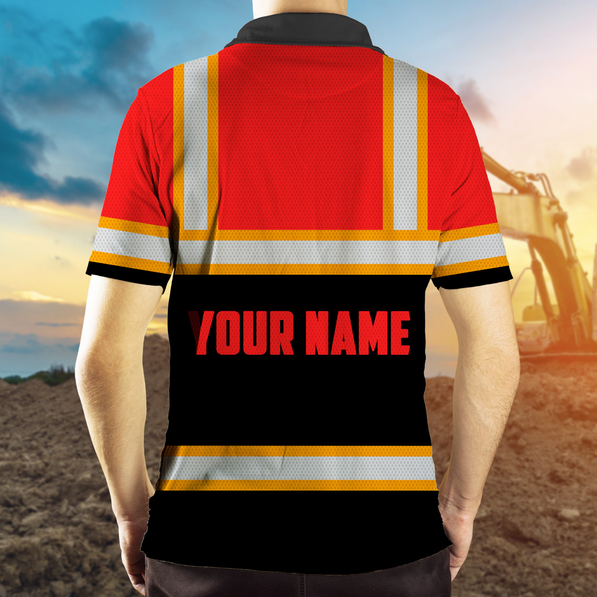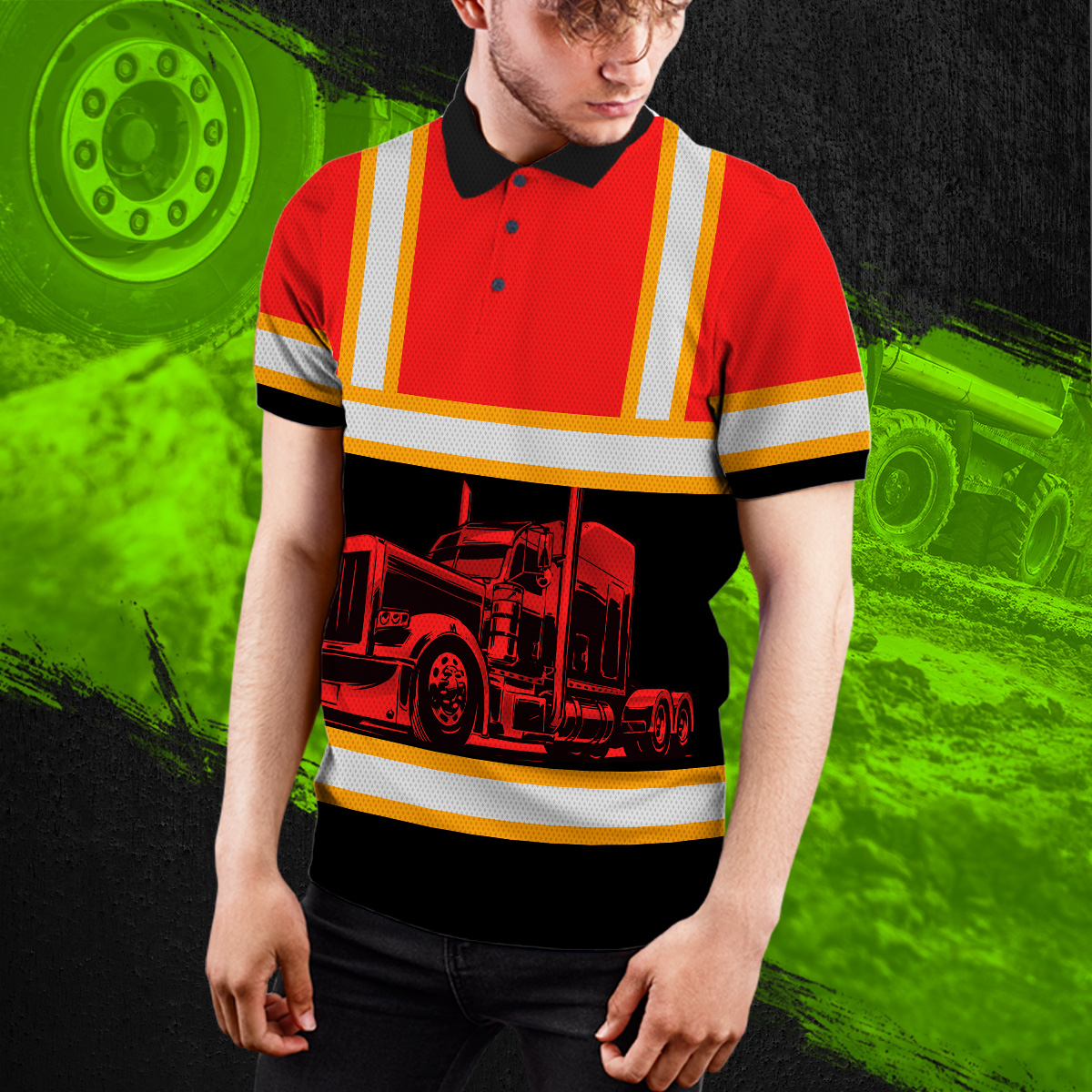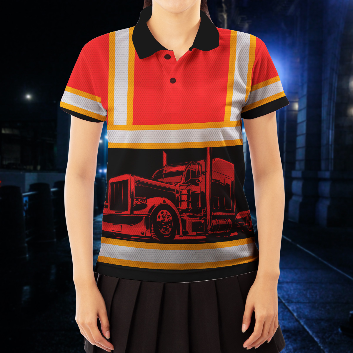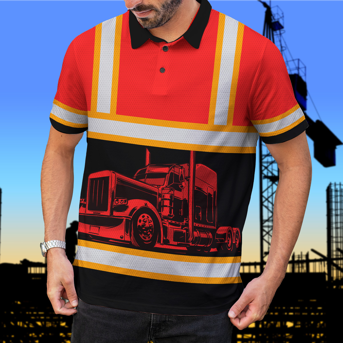 Hi Vis Polo Reflective Tapes Orange Semi Truck Driver Custom Name Safety Workwear For Truckers, Workers, Runners, Cyclists