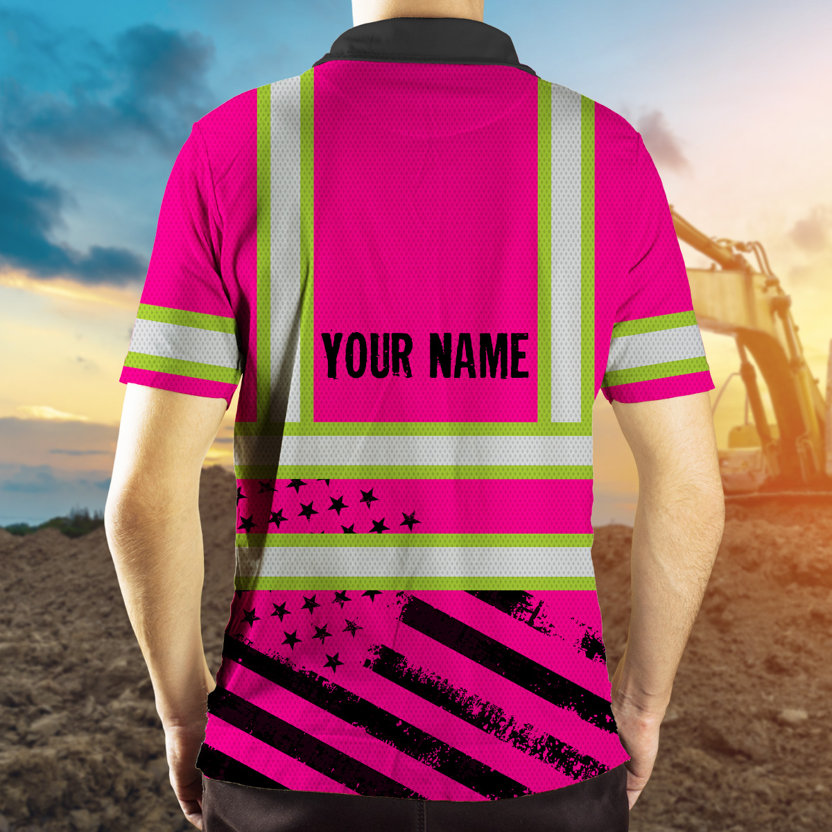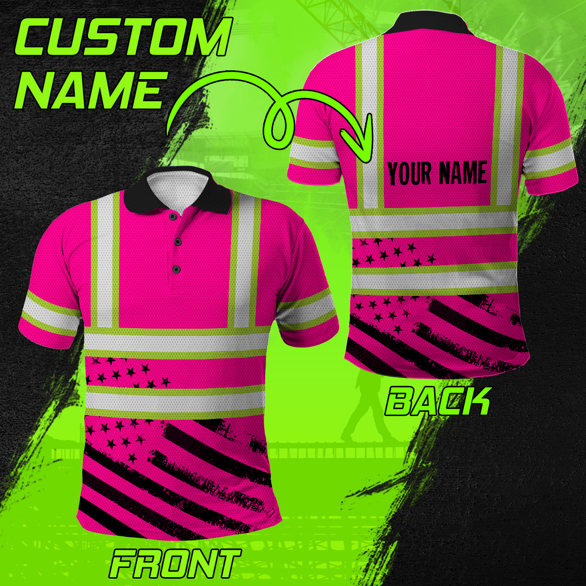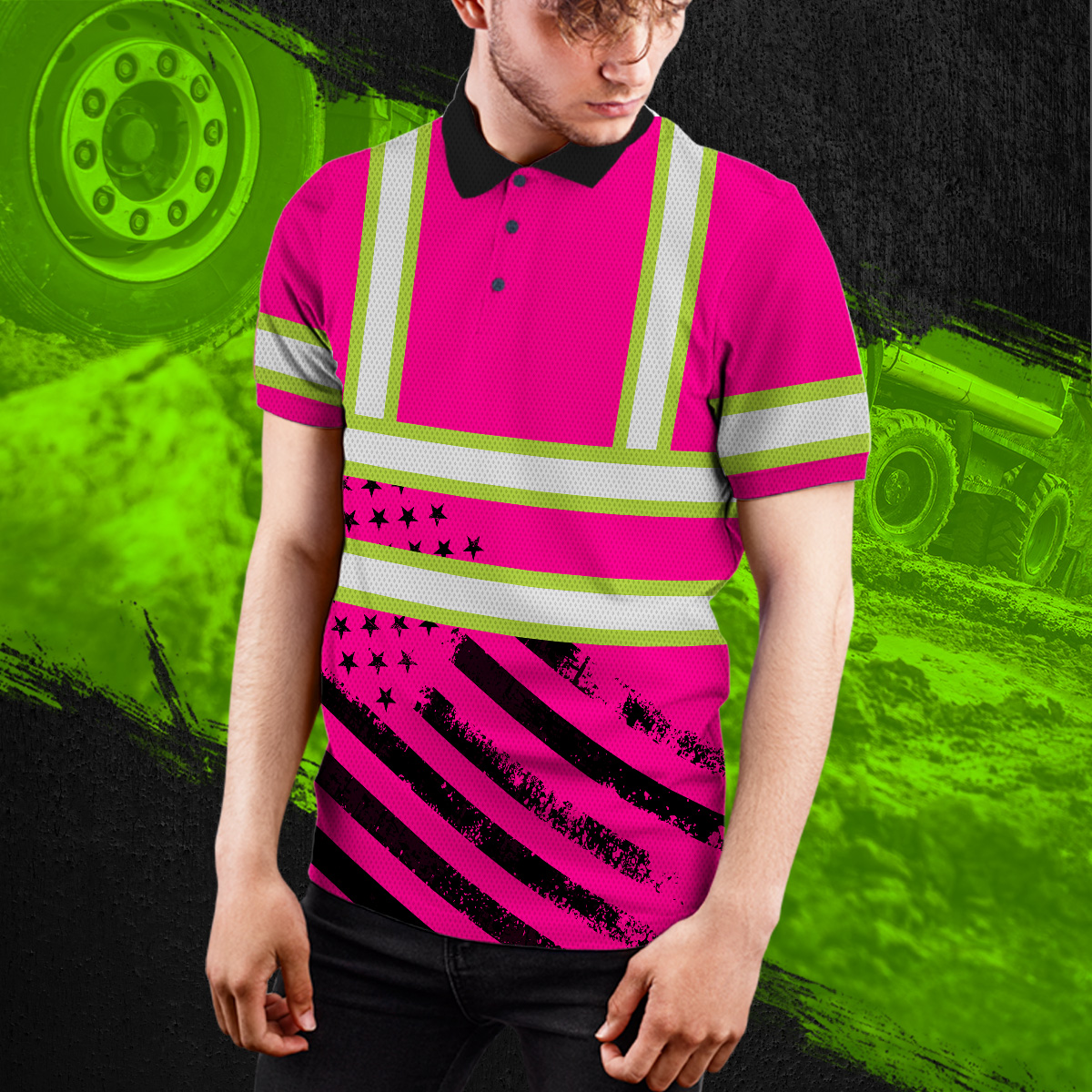 Hi Vis Polo Reflective Tapes Pink USA Flag Safety Workwear For Workers