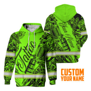 Hi Vis Hoodie Reflective Tapes Green Neon Tattoo Custom Name Safety