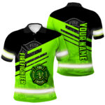 Hi Vis Polo Shirt Reflective Tapes Green Neon Firefighter Custom Name Safety Workwear For Firefighter, Fireman, Runners, Cyclists