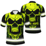 Hi Vis Polo Shirts Reflective Lime Neon Skull Custom Name Safety Workwear For Workers, Runners, Cyclists, Patriotic