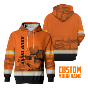 Hi Vis Hoodie Reflective Tapes Orange Plumber Custom Name Safety Workwear