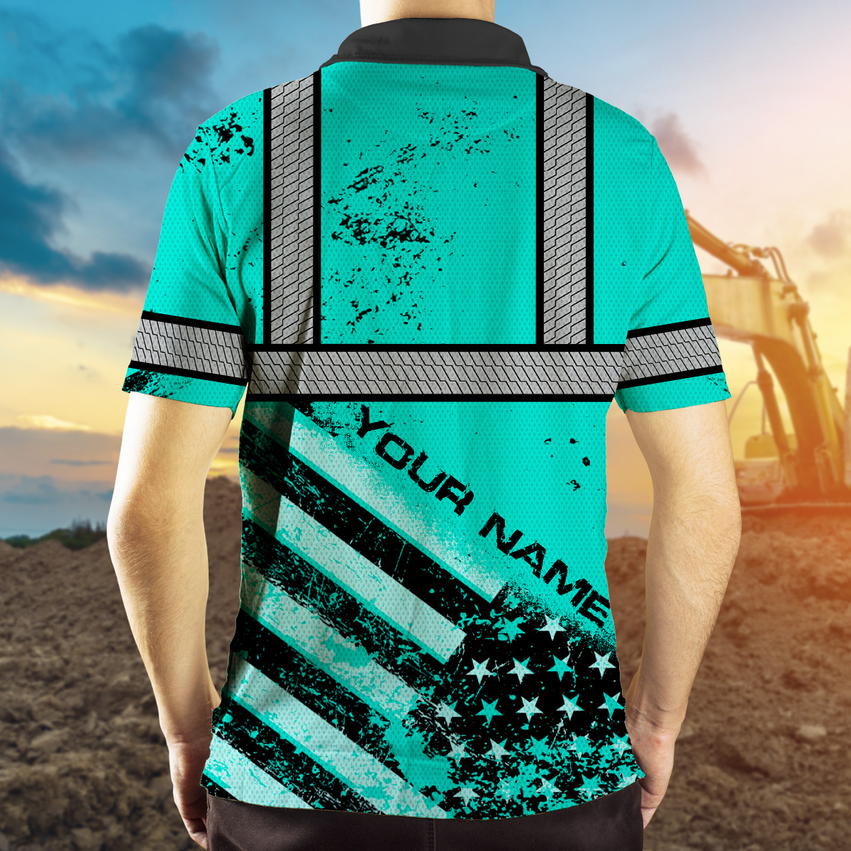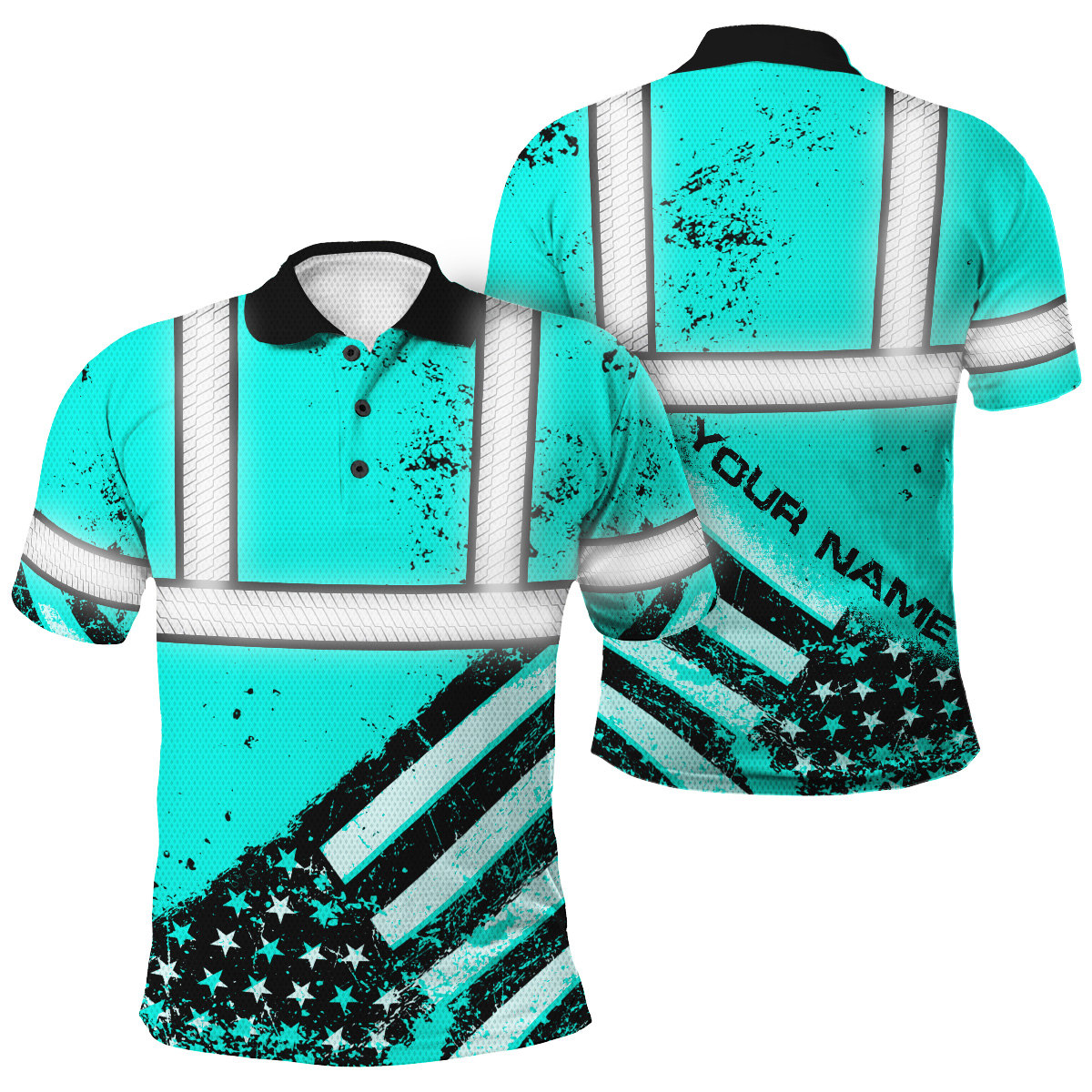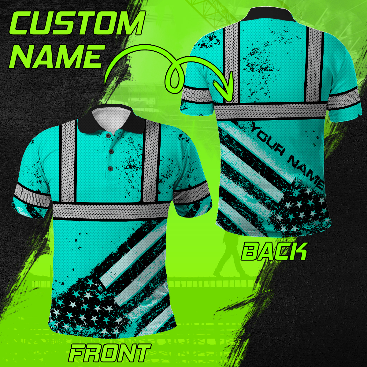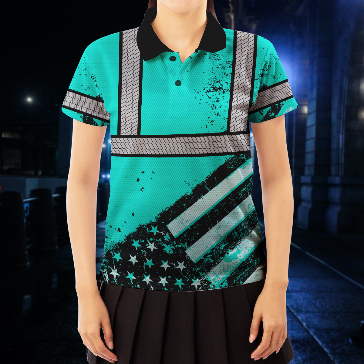 Hi Vis Polo Shirt Reflective Mint US Flag Paint Safety Workwear For Worker, Motorcycle Bicycle, Runner