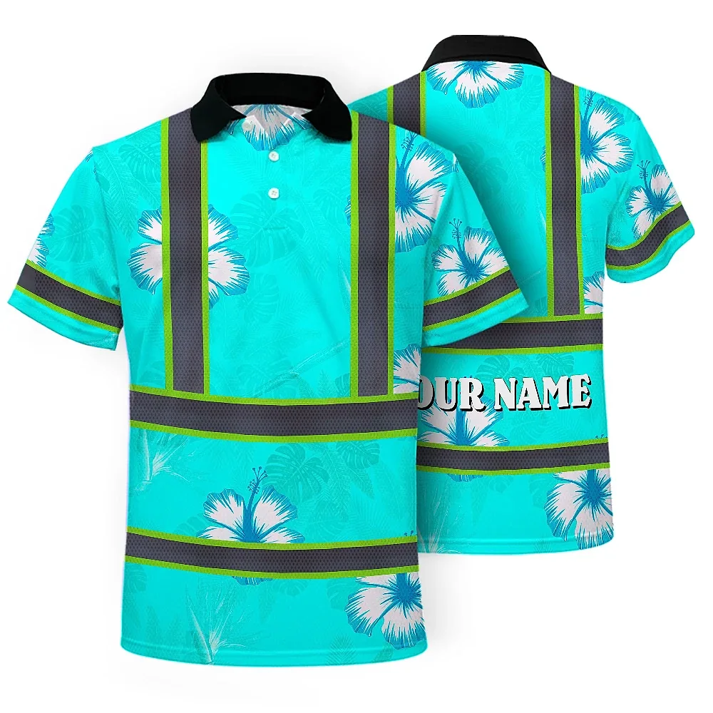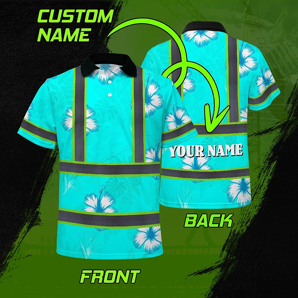 Select options This product has multiple variants. The options may be chosen on the product pageHi Vis Polo Shirt Reflective Tapes Blue Neon Flowers 4 Custom Name