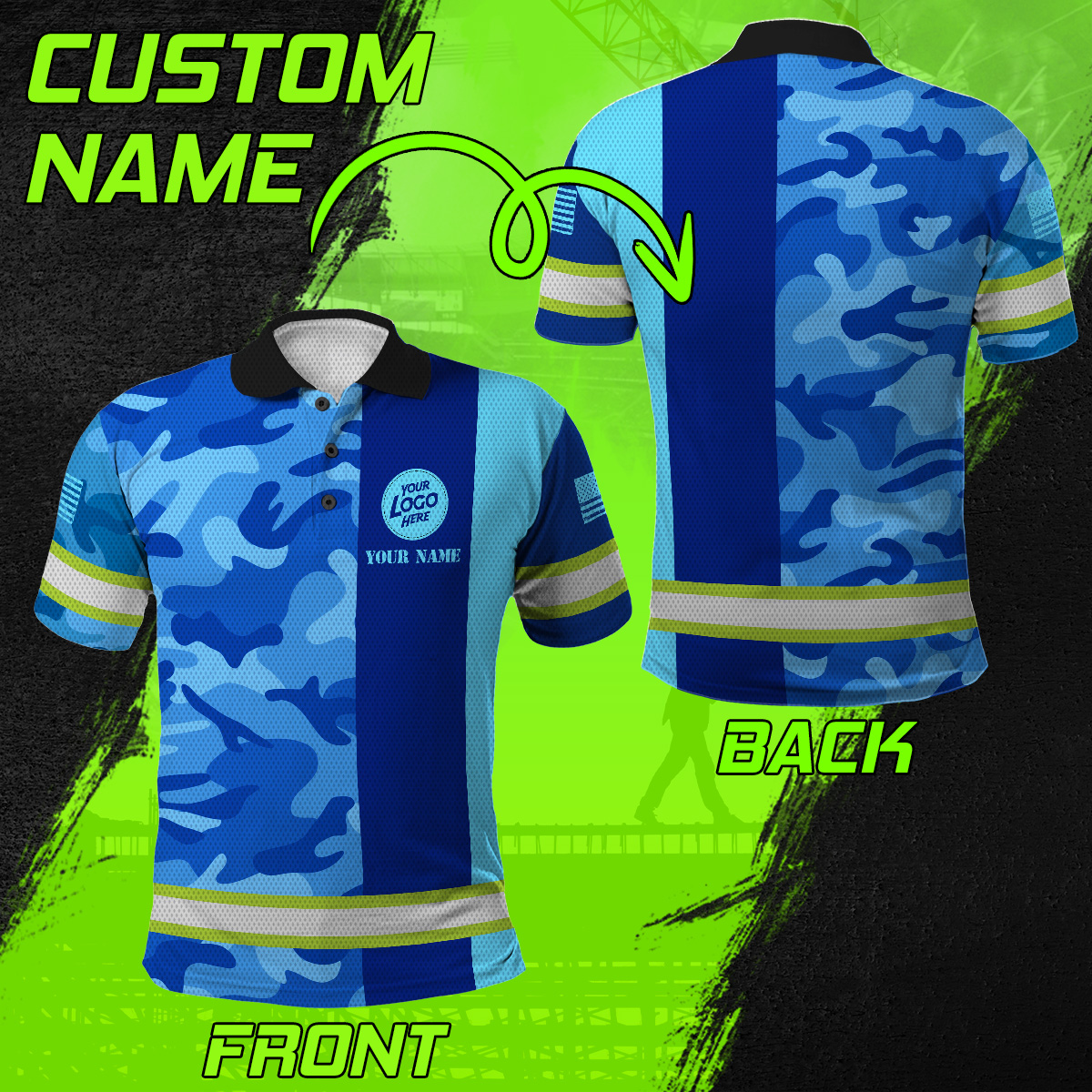 Hi Vis Polo Shirt Reflective Tapes Blue Neon Veteran
