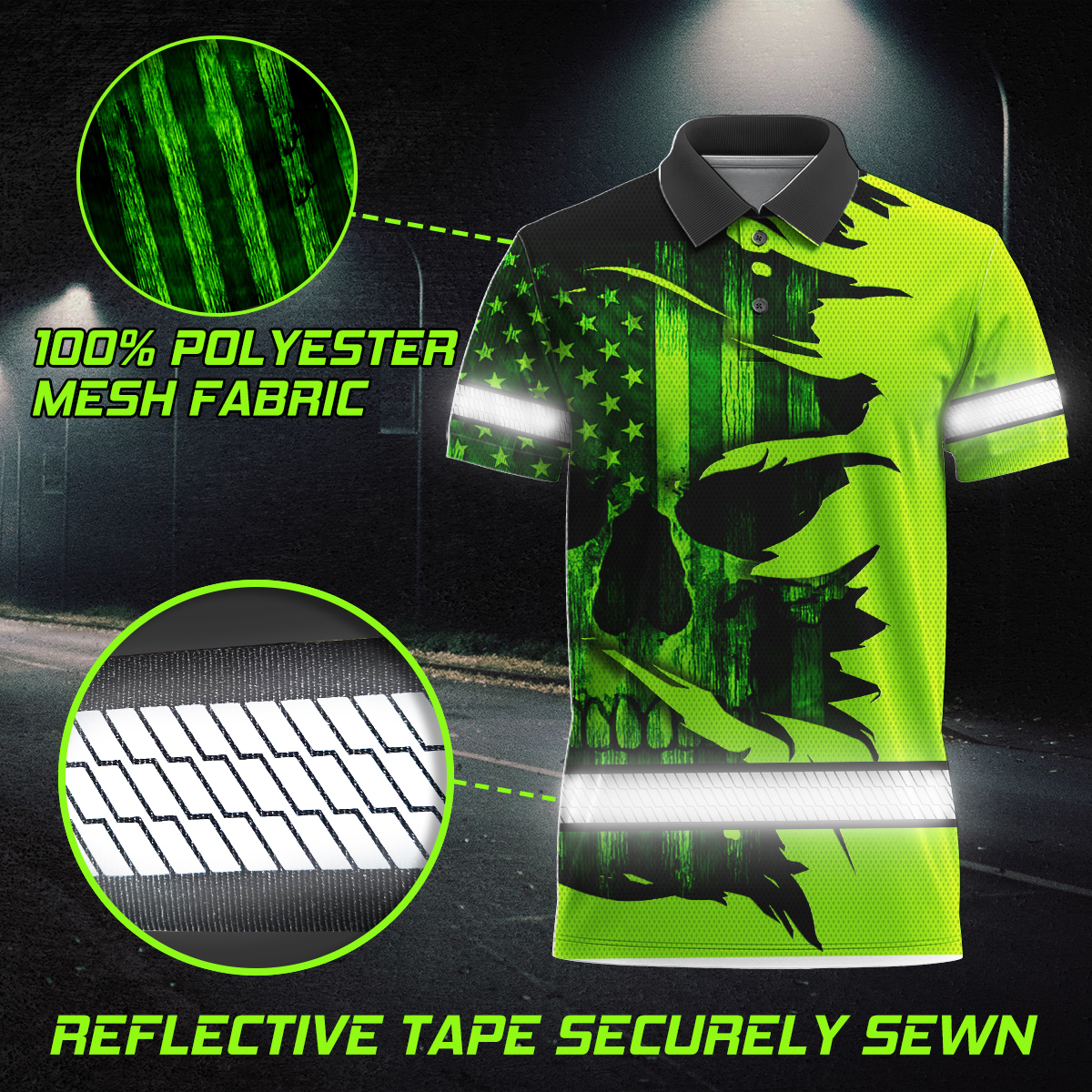 Hi Vis Polo Shirt Reflective Tapes Green Neon Xclusive Polo