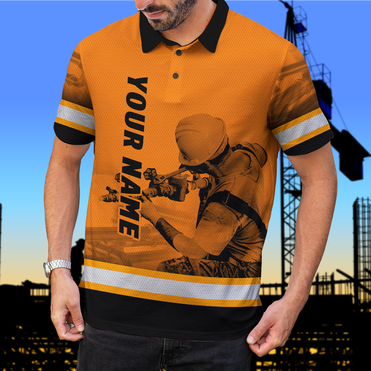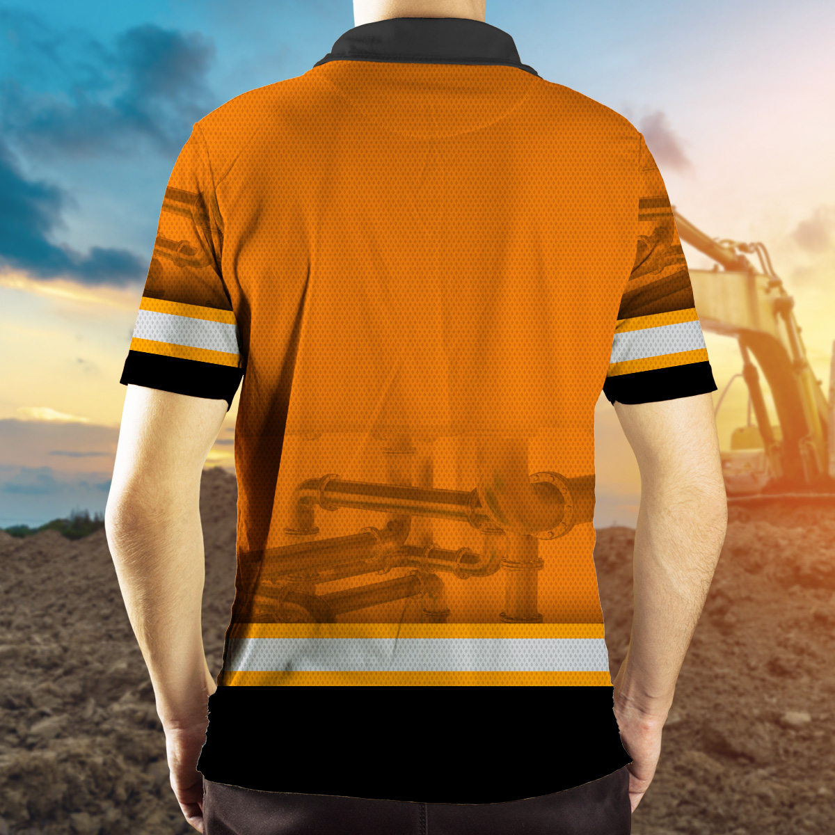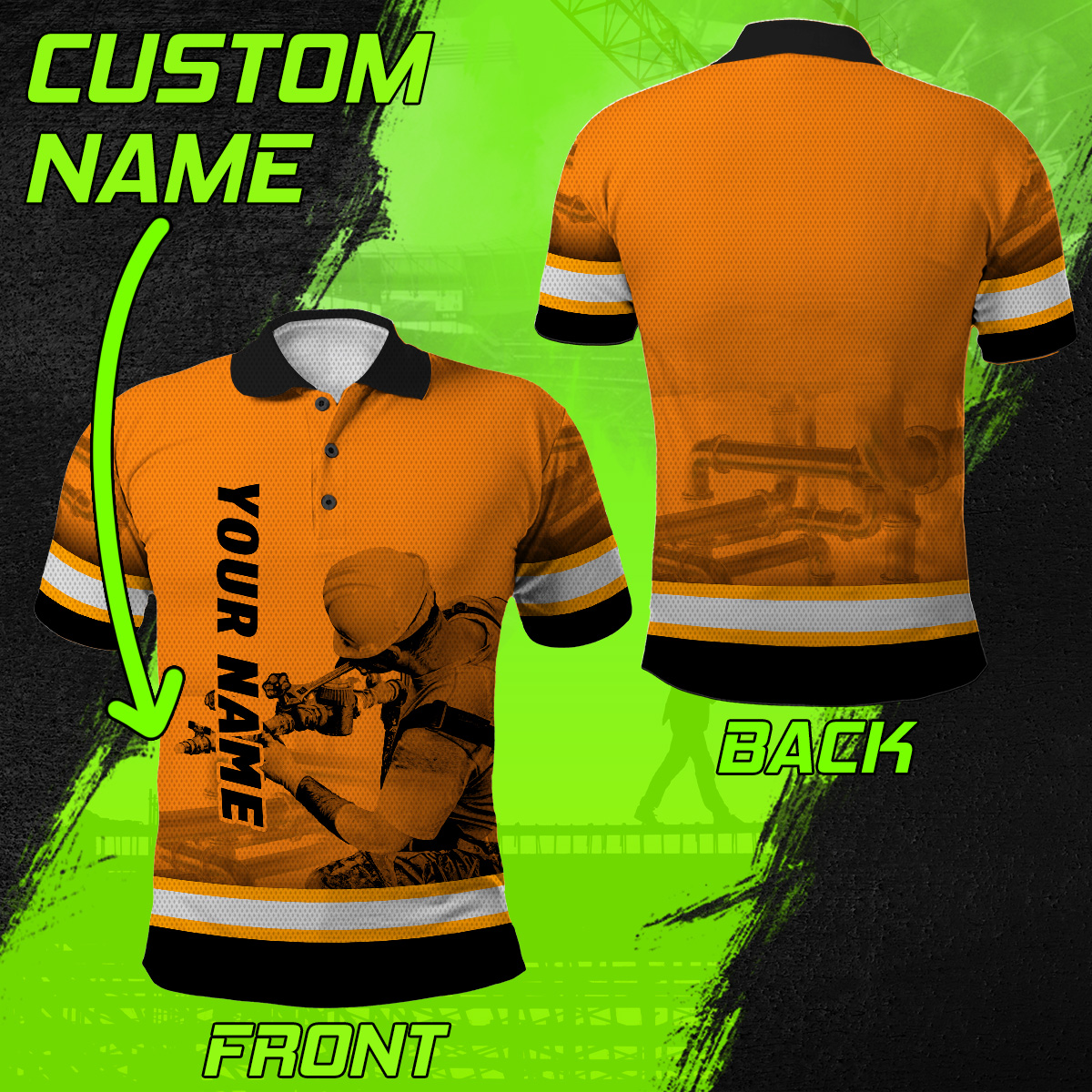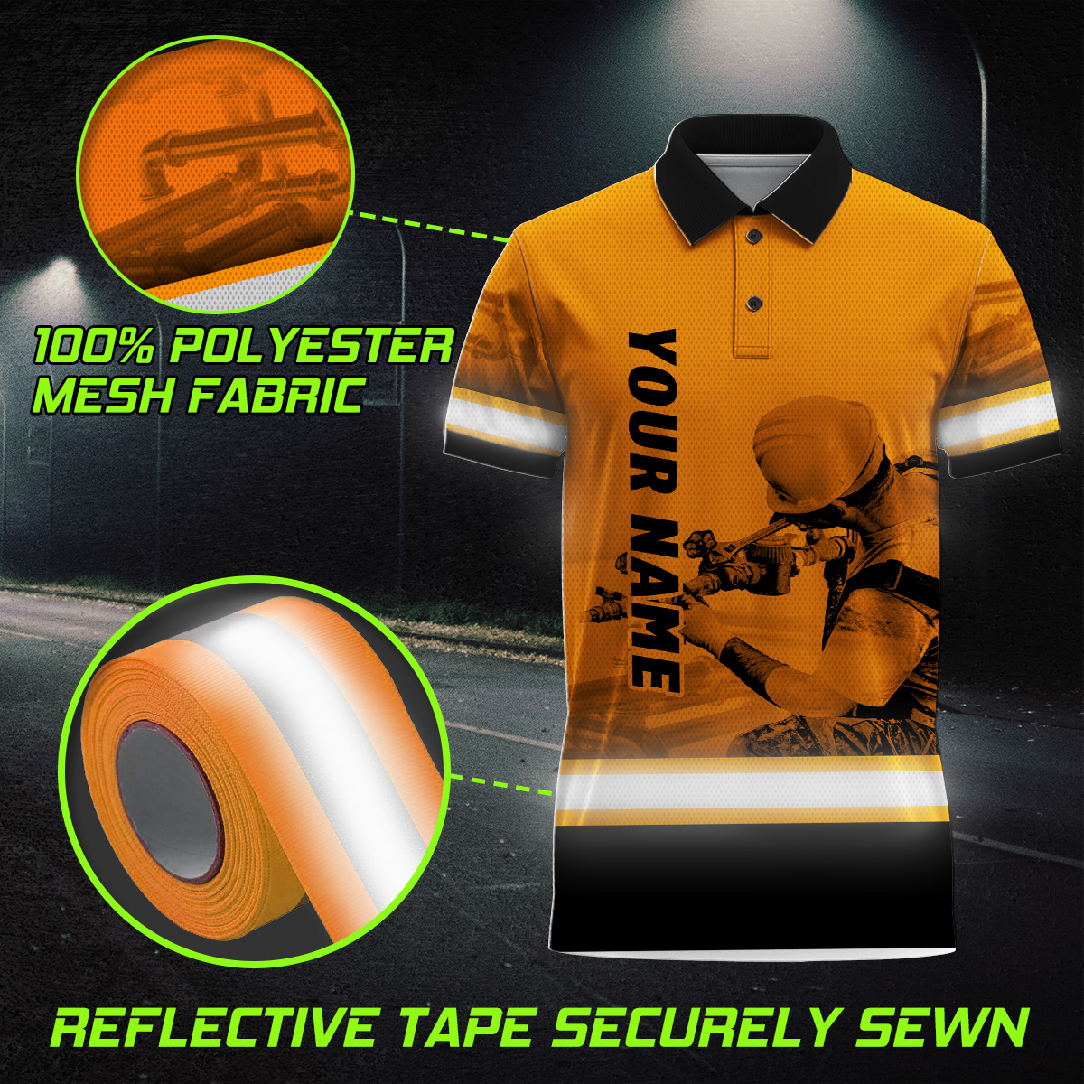Hi Vis Polo Shirt Reflective Tapes Orange Plumber Custom Name Safety Workwear For Plumber, Workers, Runners, Cyclists