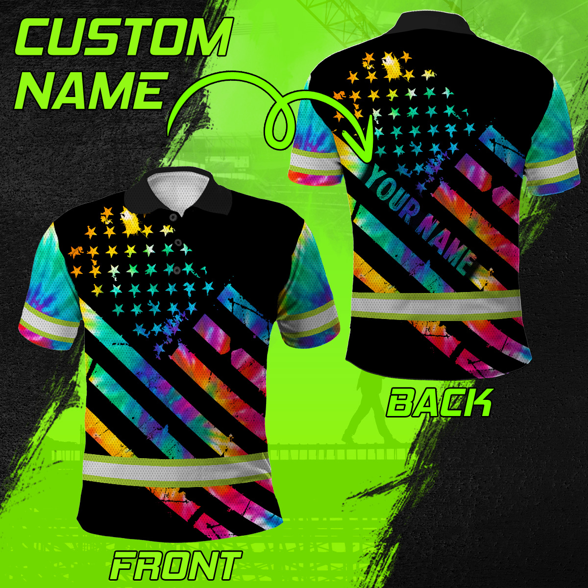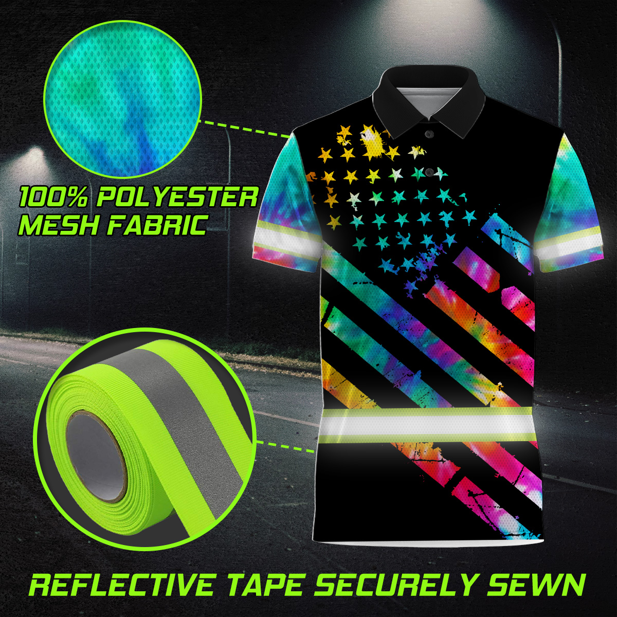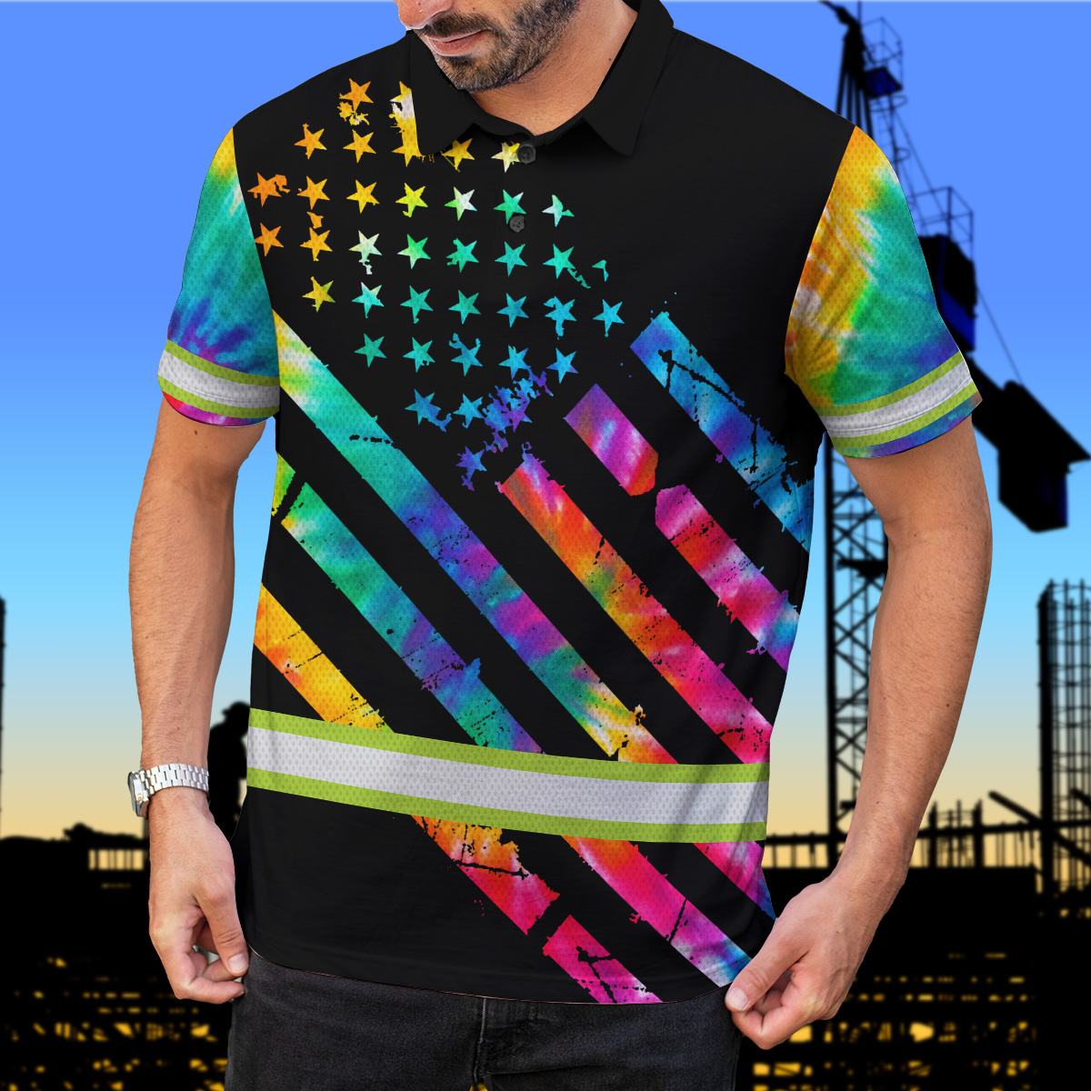 Hi Vis Polo Shirt Reflective Tapes Rainbow Tie Dye Safety Workwear