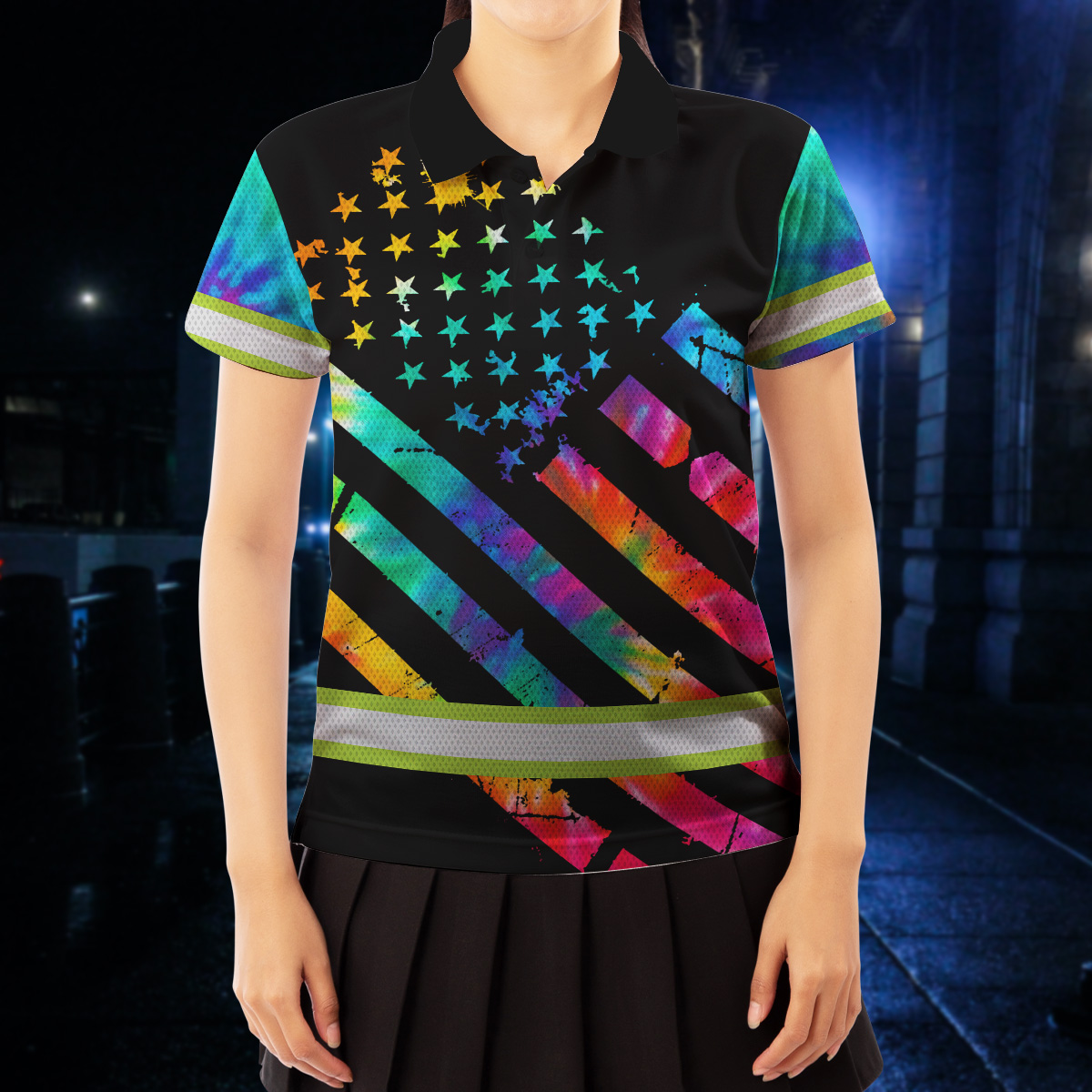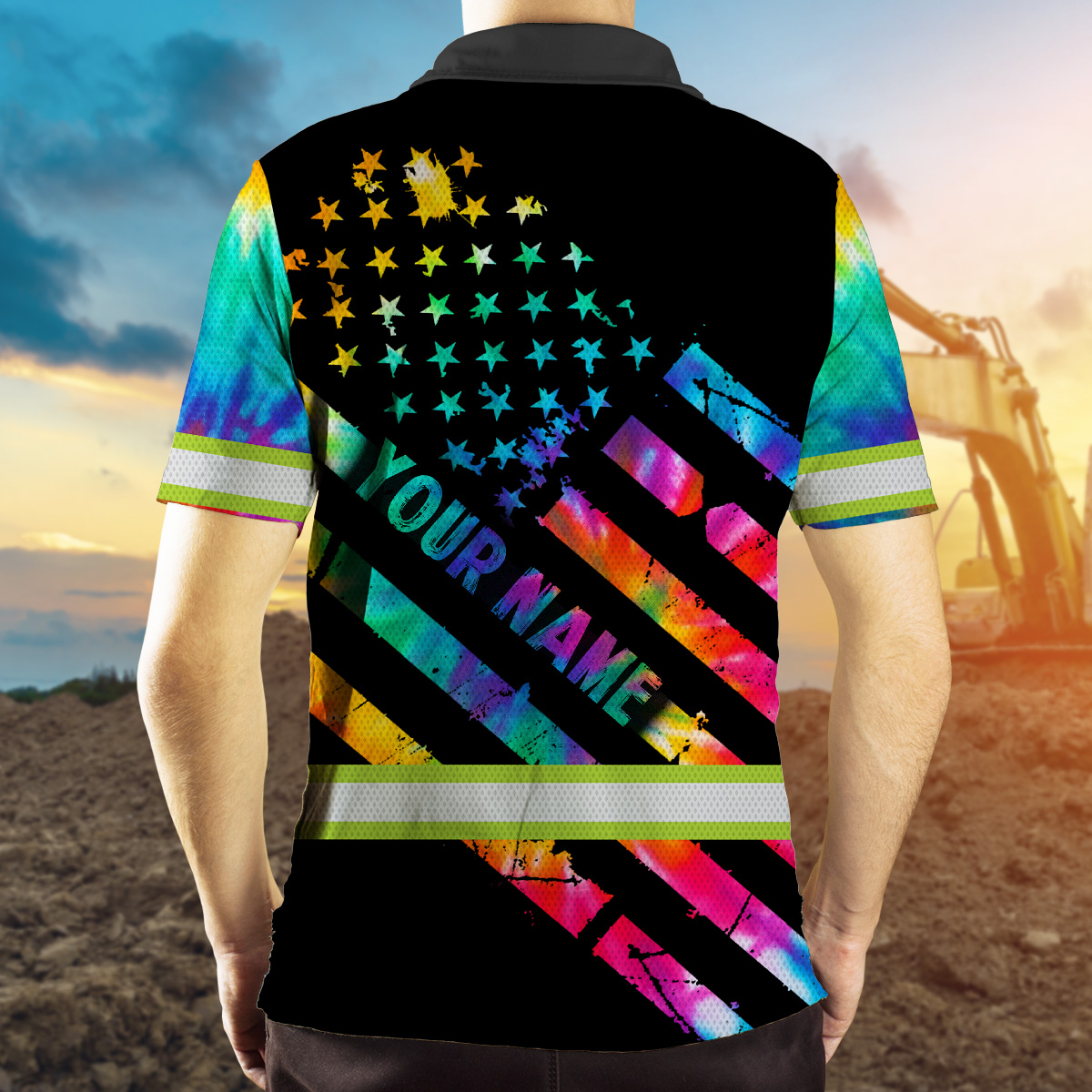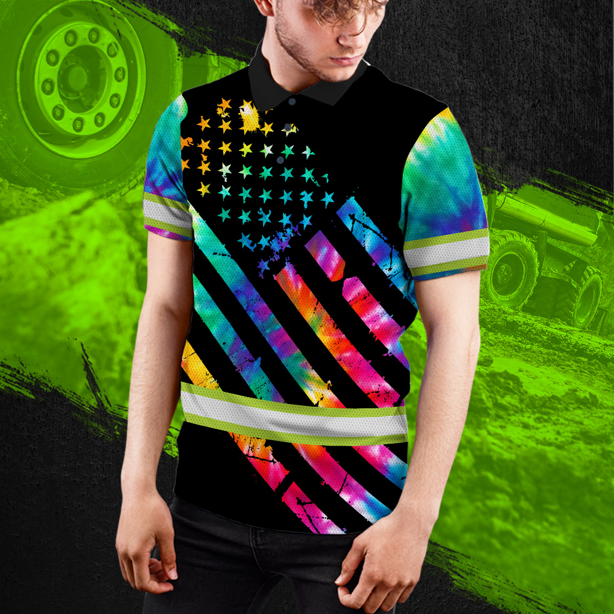 Hi Vis Polo Shirt Reflective Tapes Rainbow Tie Dye Safety Workwear