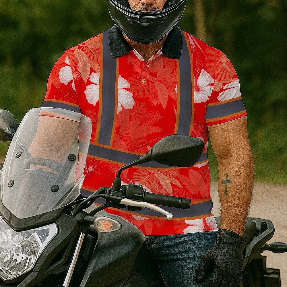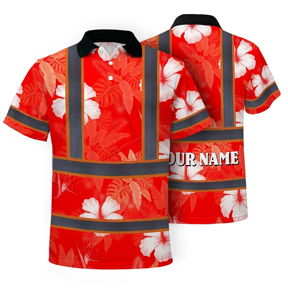 Hi Vis Polo Shirt Reflective Tapes Red Neon Custom Name Safety Workwear For Workers, Truckers, Operators